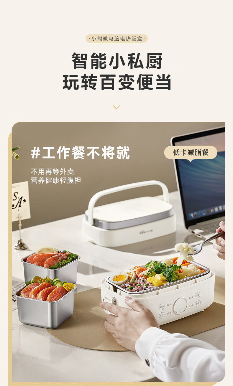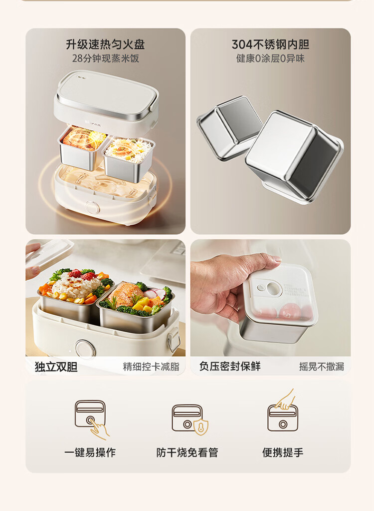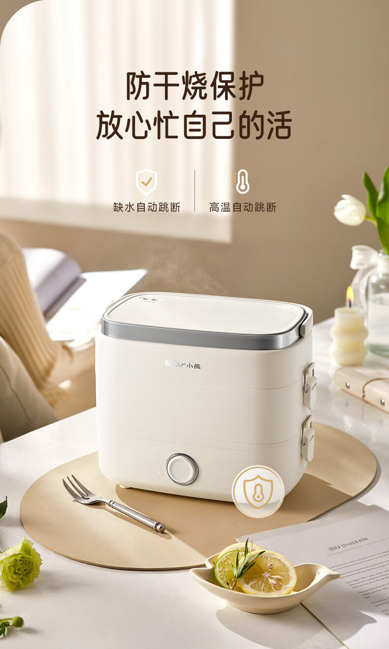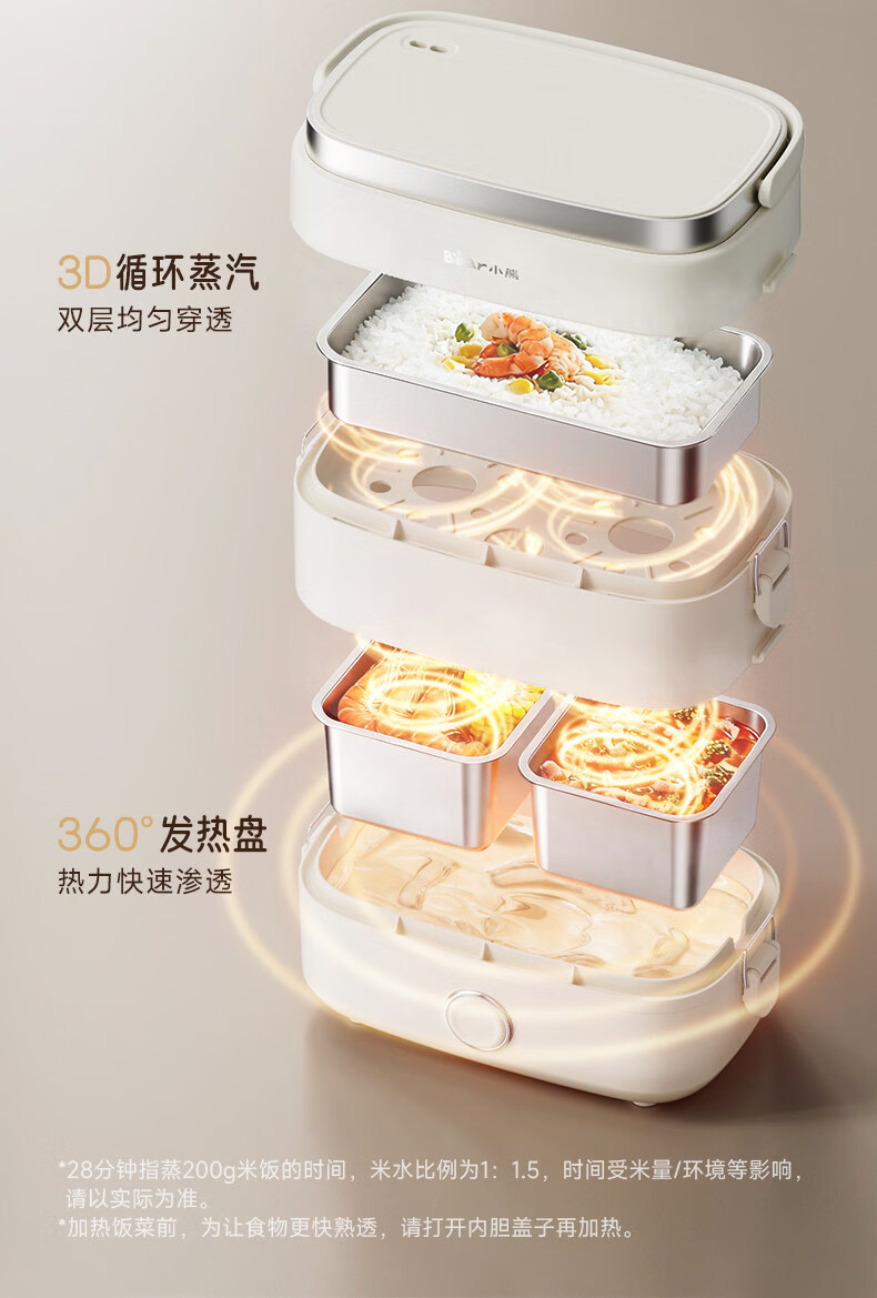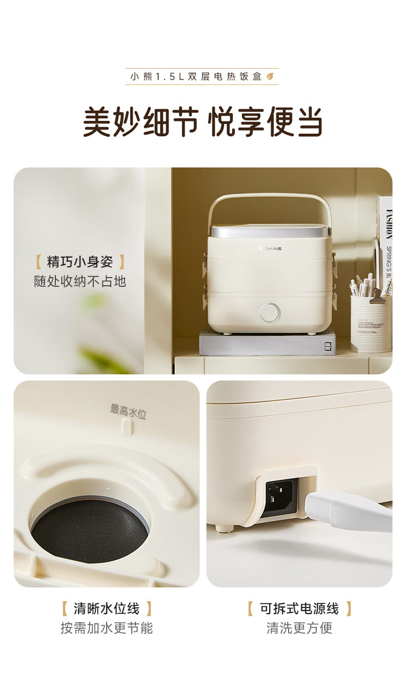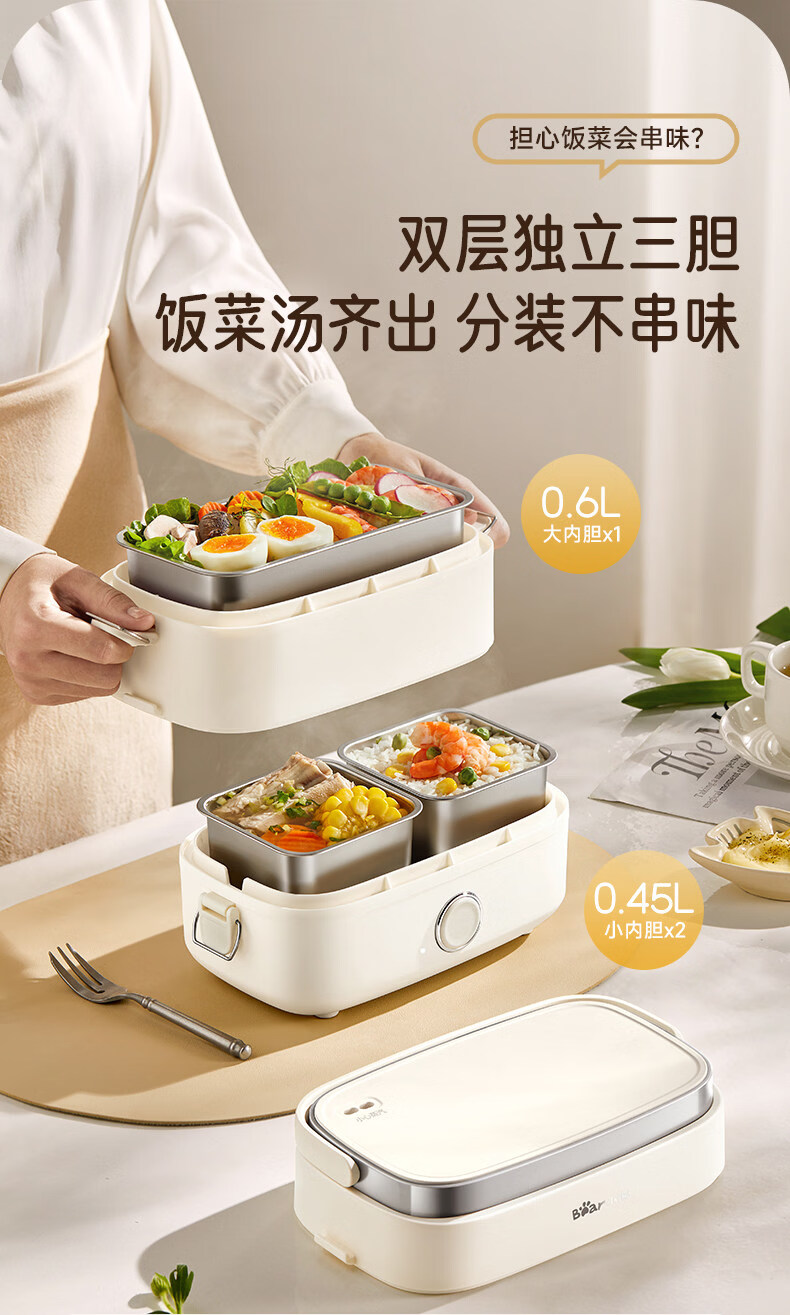 小熊(Bear)加热饭盒电热饭盒可插电上班族带饭神器热饭神器智能可预约0涂层不锈钢防干烧免看管保温饭盒 1.5L 升级微电脑【可预约&保温】