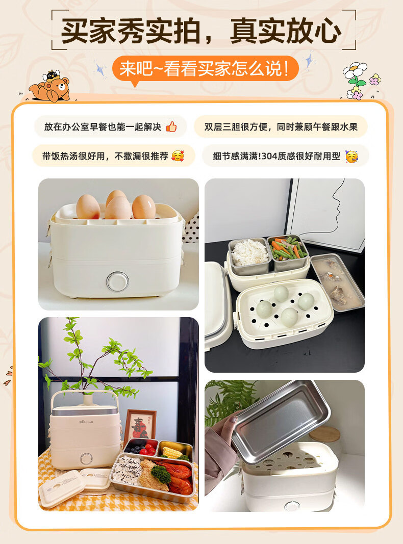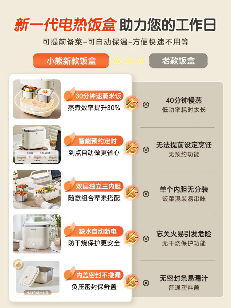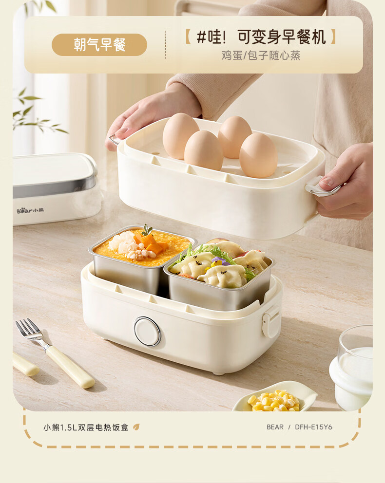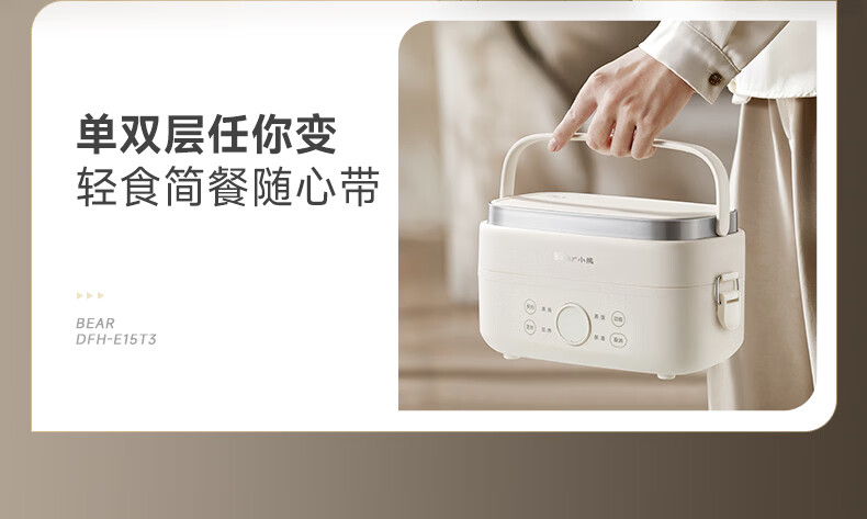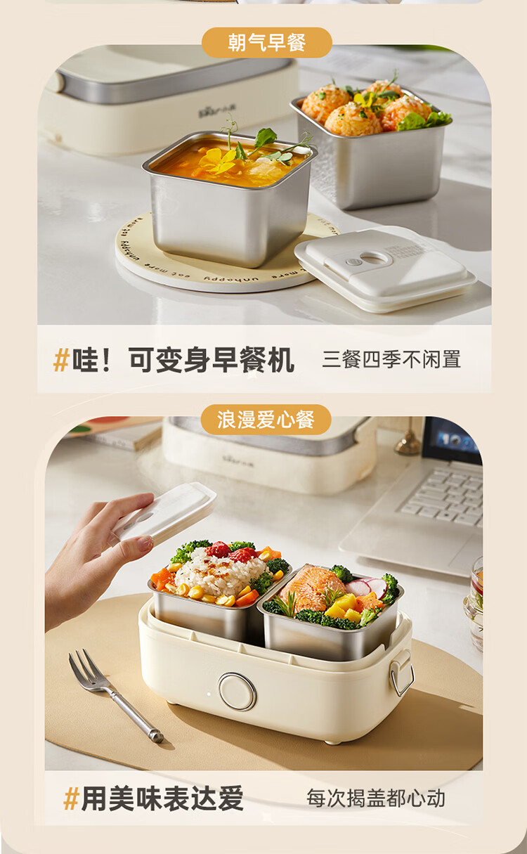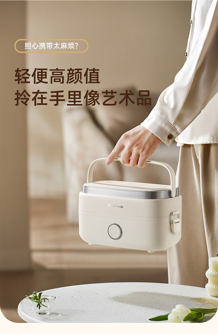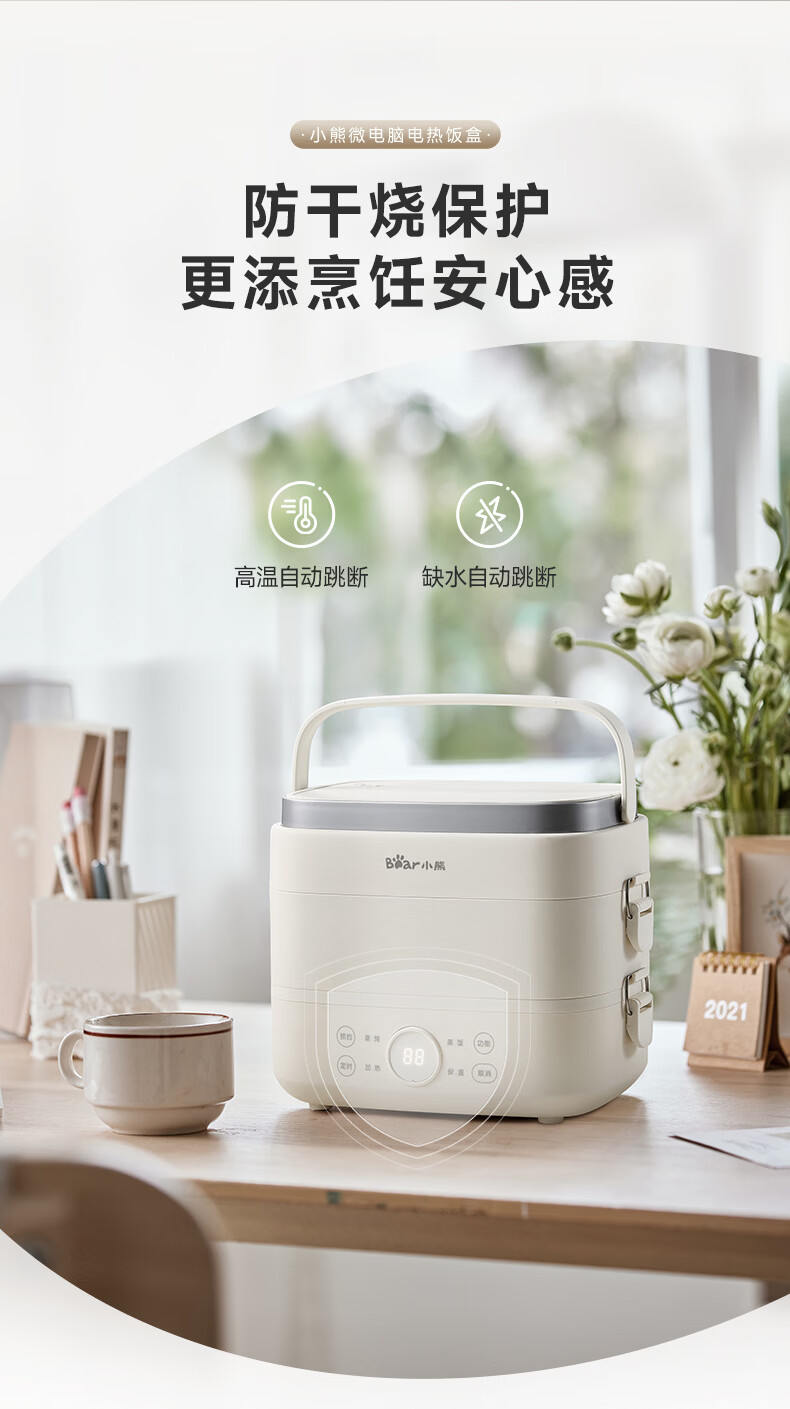 小熊(Bear)加热饭盒电热饭盒可插电上班族带饭神器热饭神器智能可预约0涂层不锈钢防干烧免看管保温饭盒 1.5L 升级微电脑【可预约&保温】