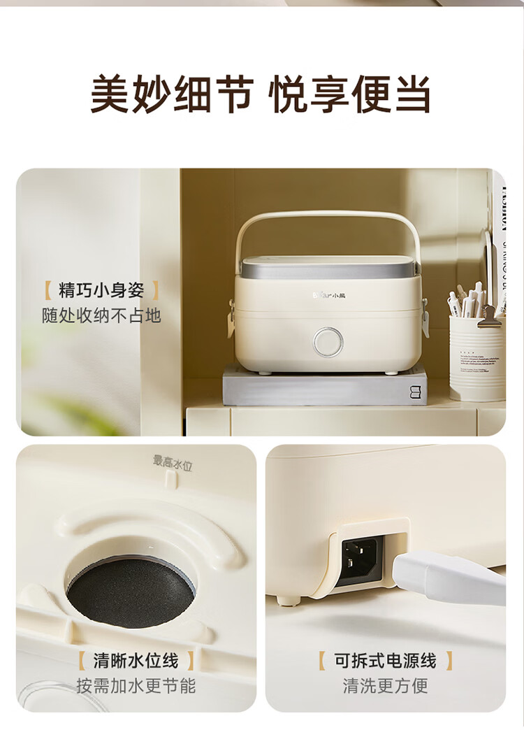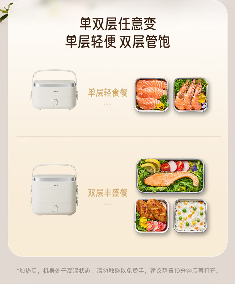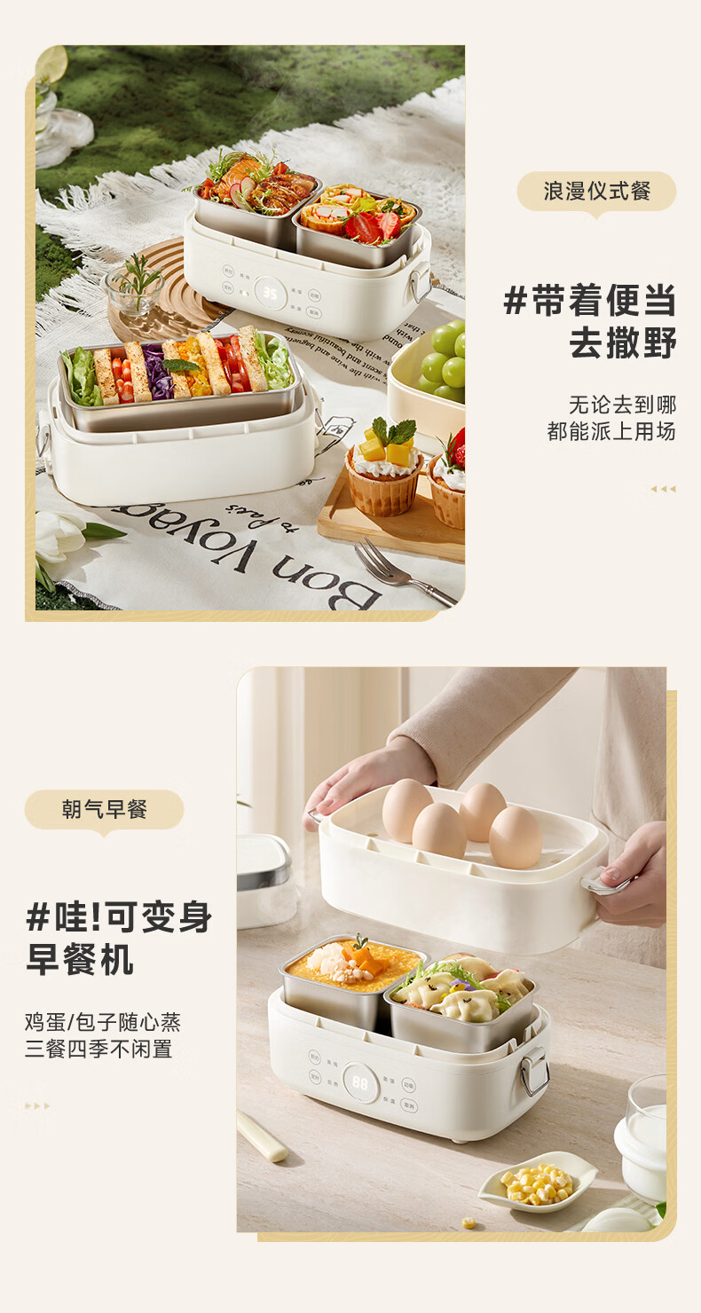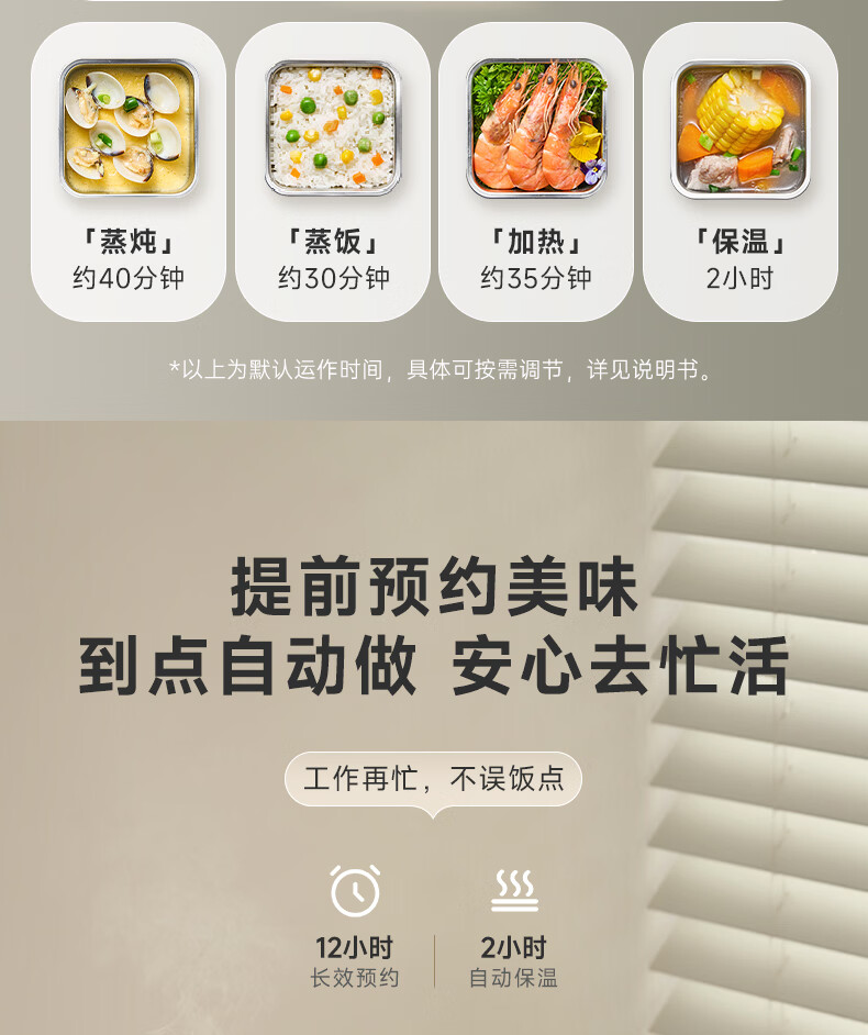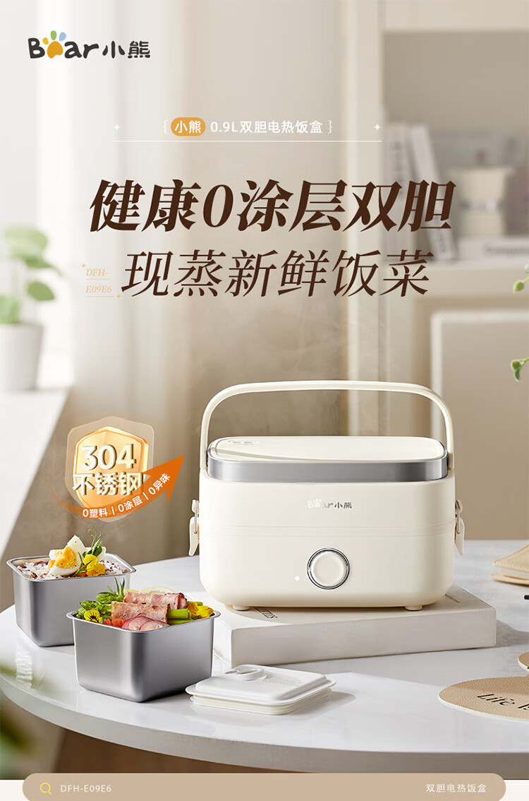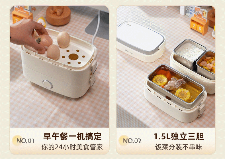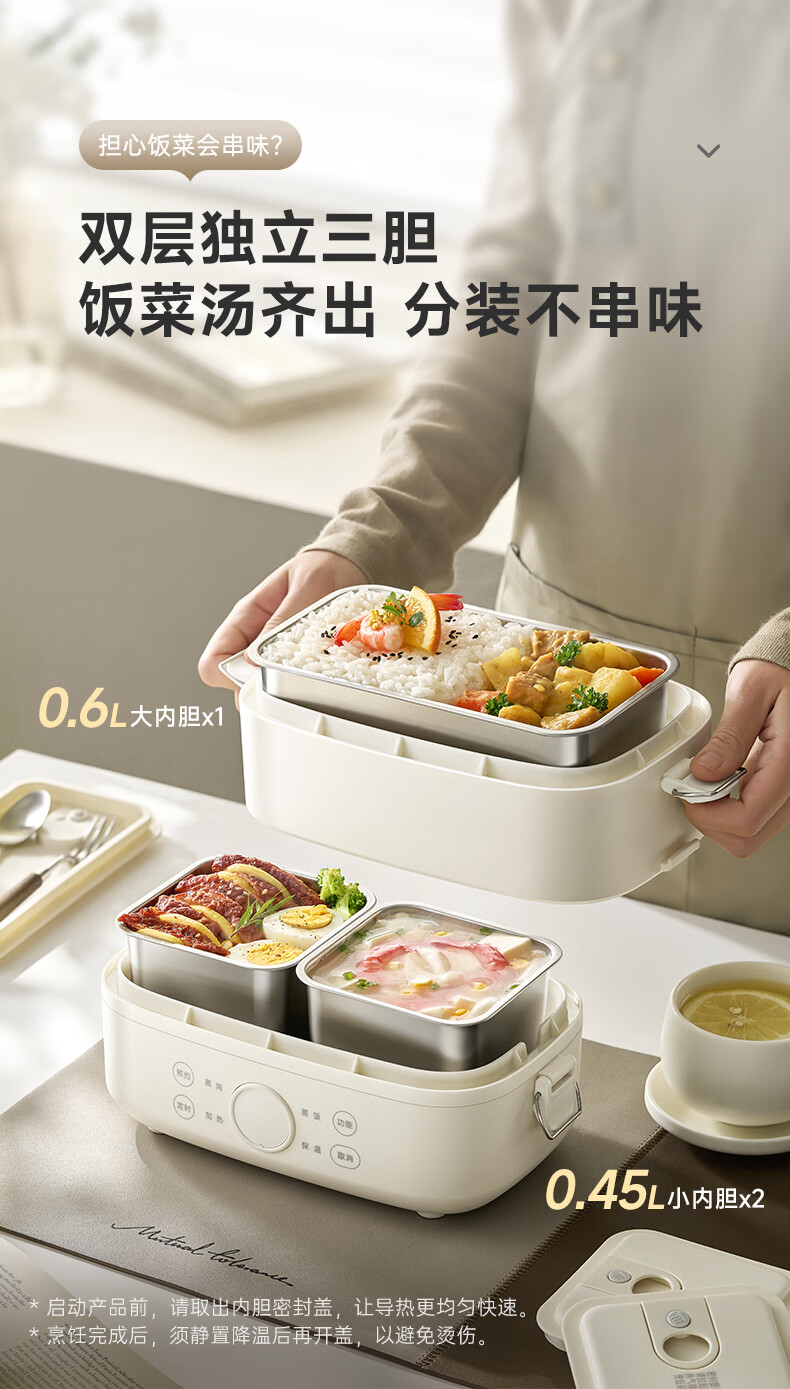 小熊(Bear)加热饭盒电热饭盒可插电上班族带饭神器热饭神器智能可预约0涂层不锈钢防干烧免看管保温饭盒 1.5L 升级微电脑【可预约&保温】
