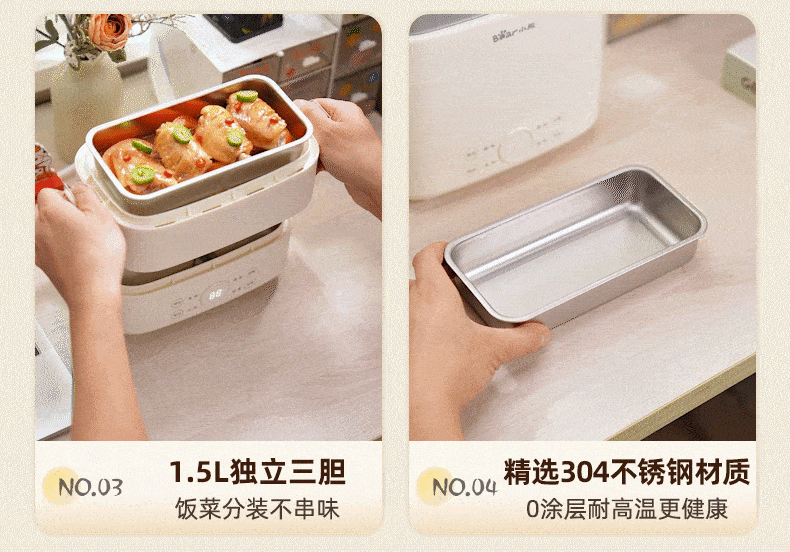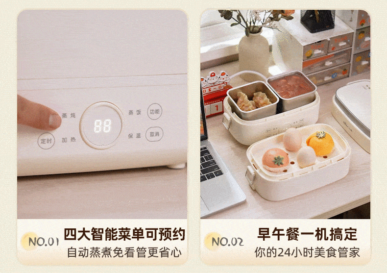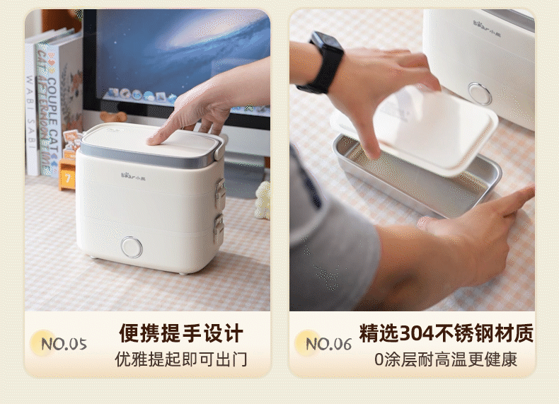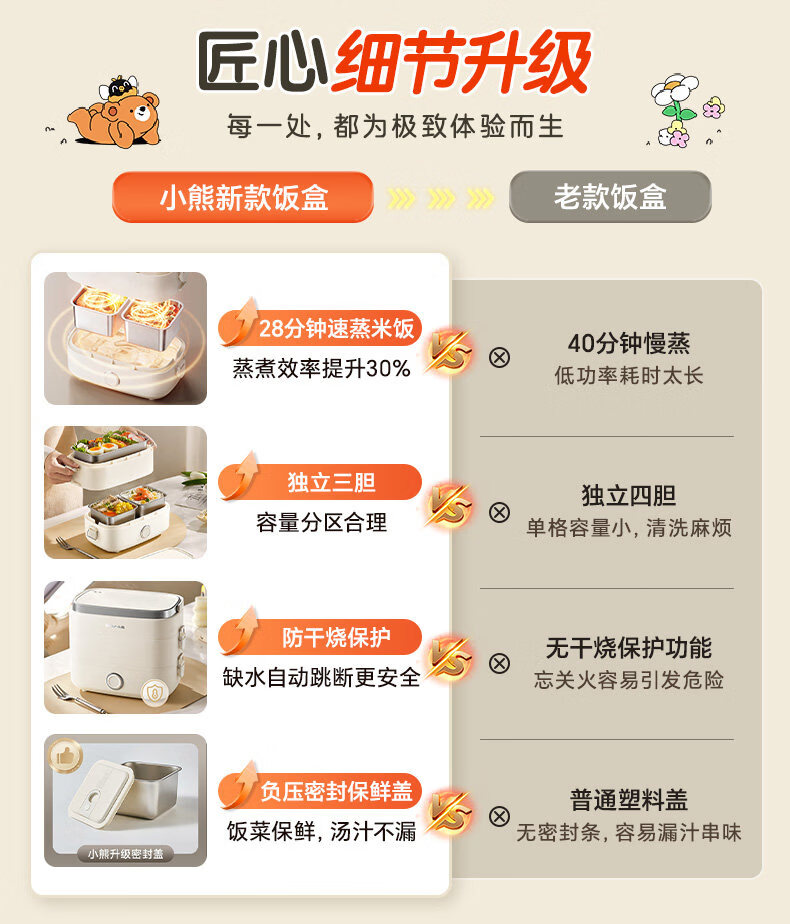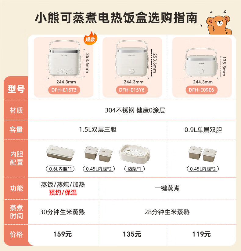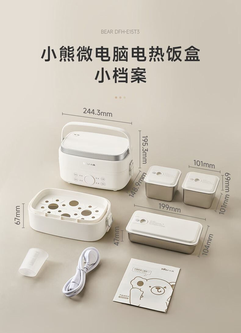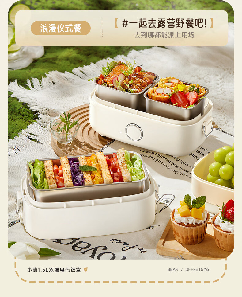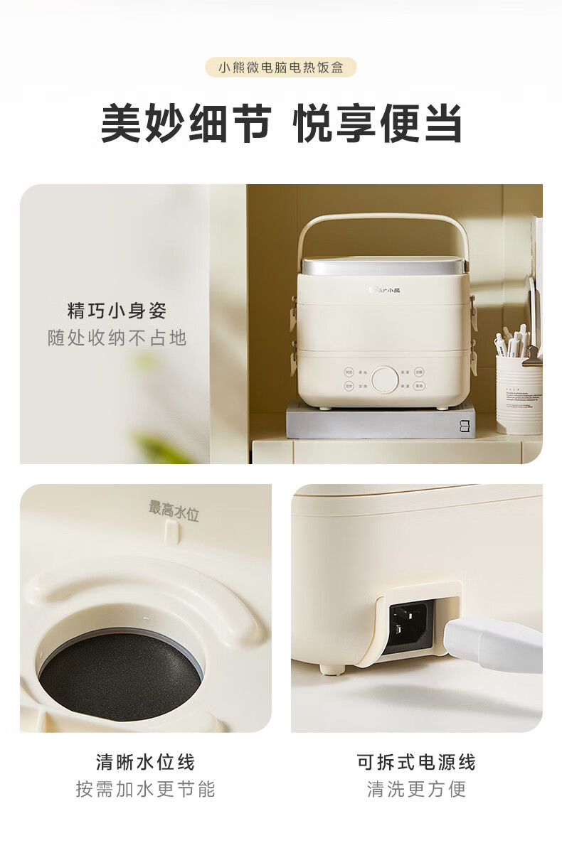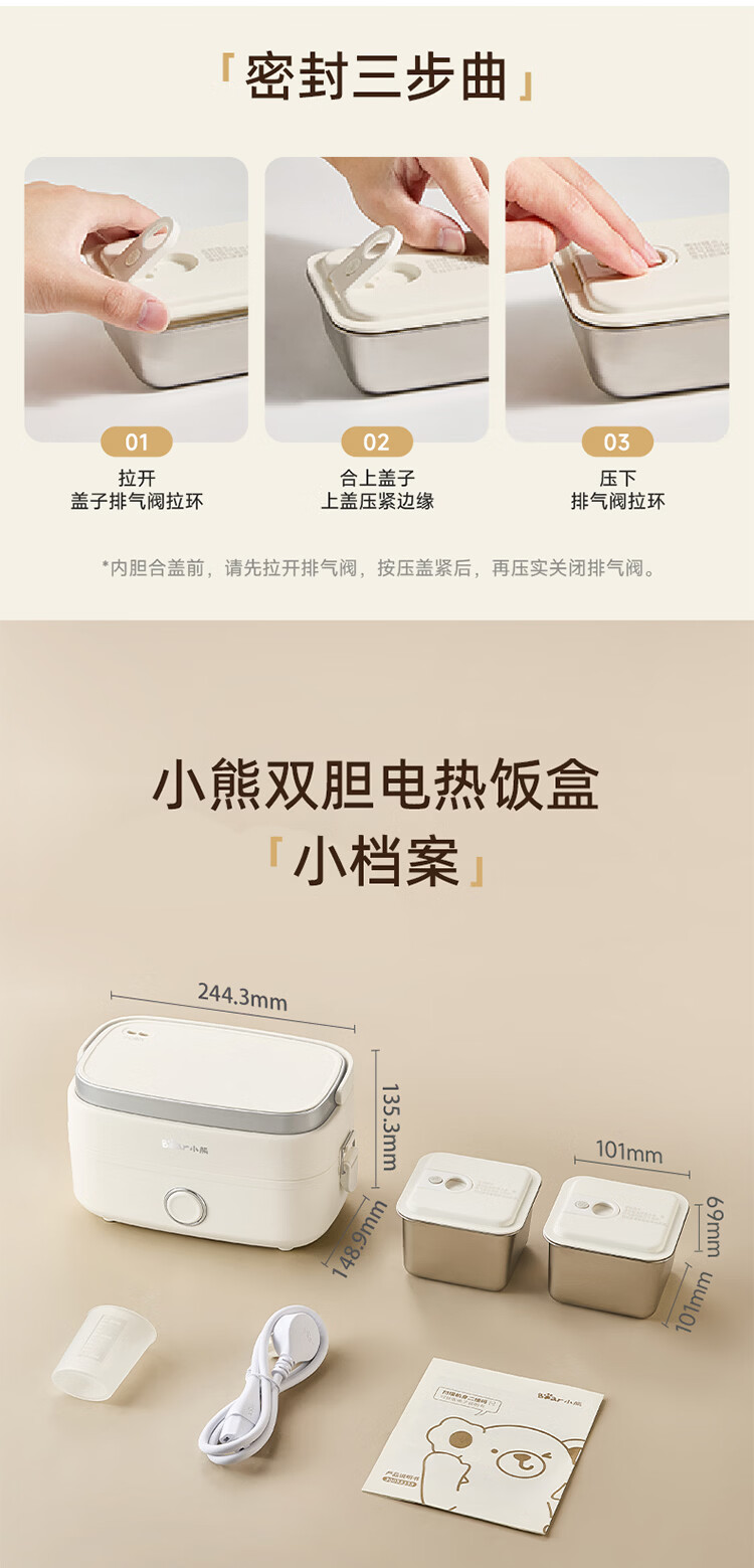 小熊(Bear)加热饭盒电热饭盒可插电上班族带饭神器热饭神器智能可预约0涂层不锈钢防干烧免看管保温饭盒 1.5L 升级微电脑【可预约&保温】