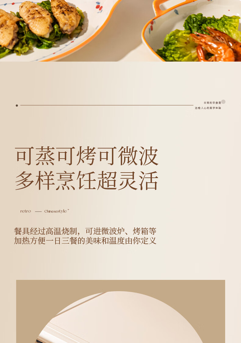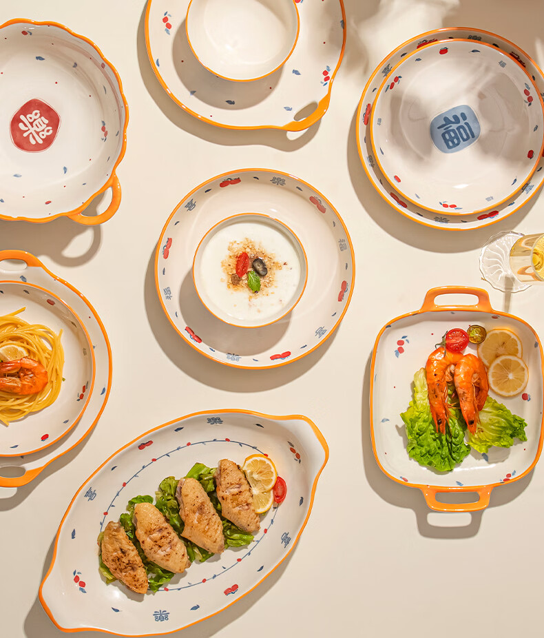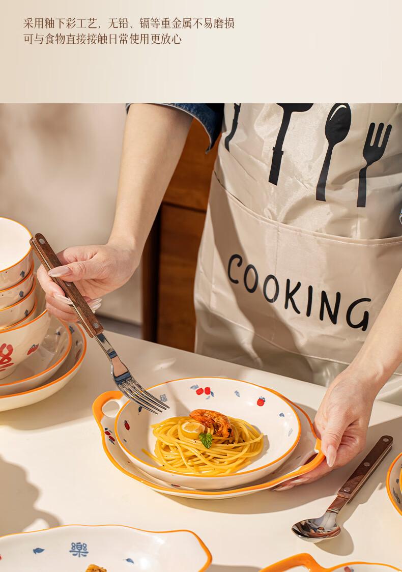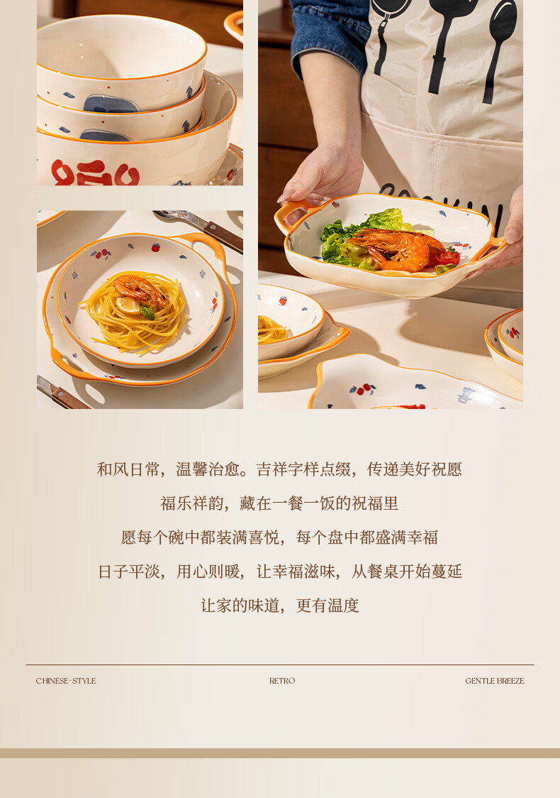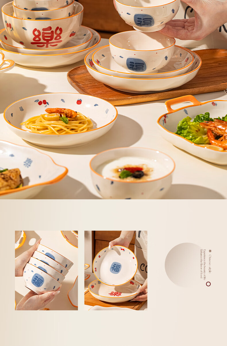 精缔陶瓷JINGDI釉下彩法式碗碟套装家用高颜值简约碗具套装乔迁陶瓷餐具套装以辰 烟雨遥8寸正方盘