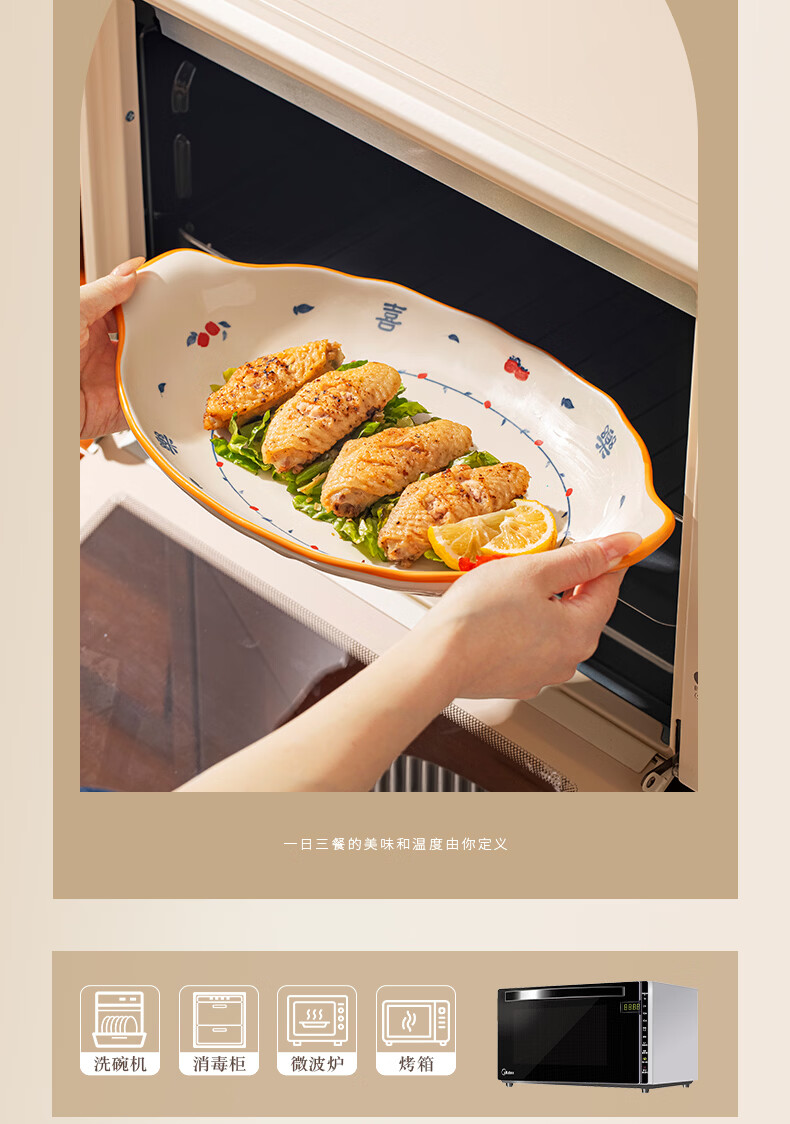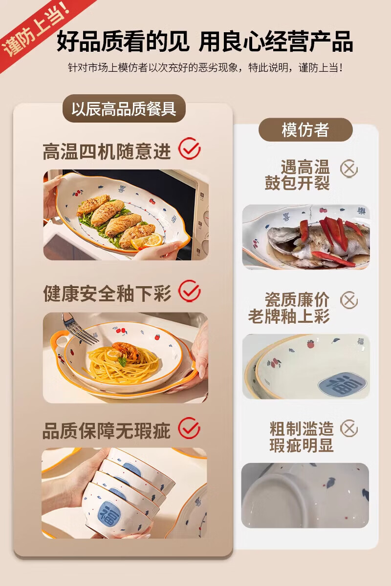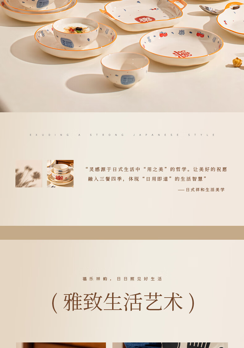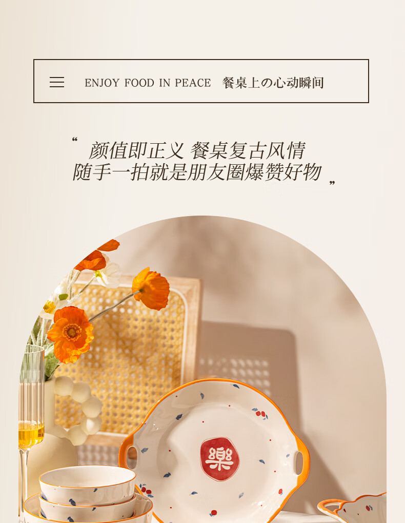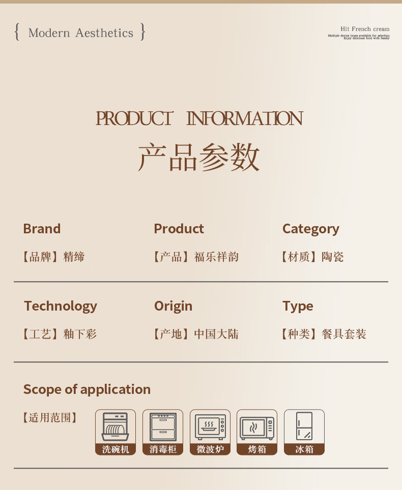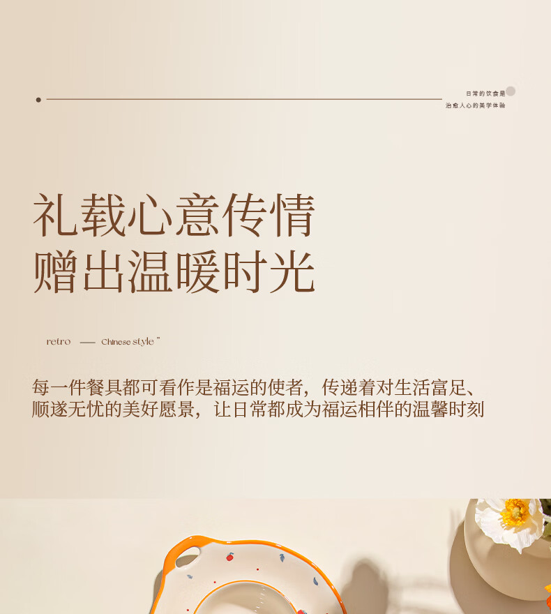精缔陶瓷JINGDI釉下彩法式碗碟套装家用高颜值简约碗具套装乔迁陶瓷餐具套装以辰 烟雨遥8寸正方盘
