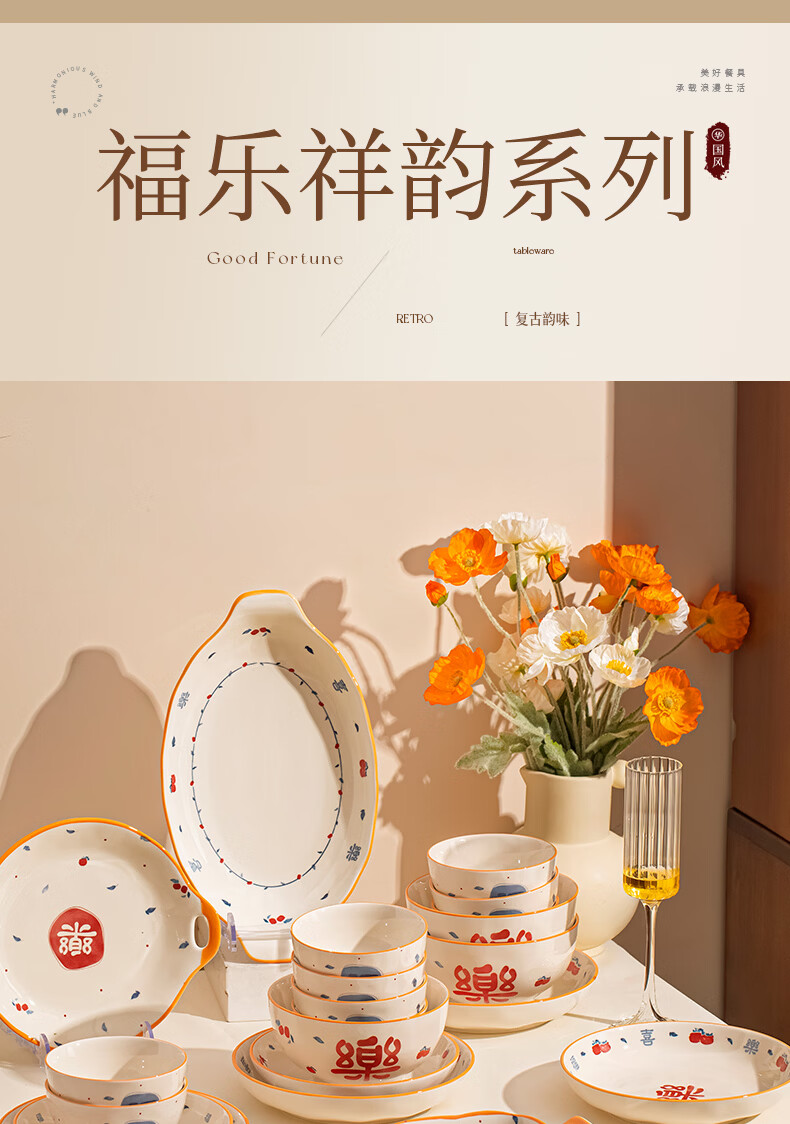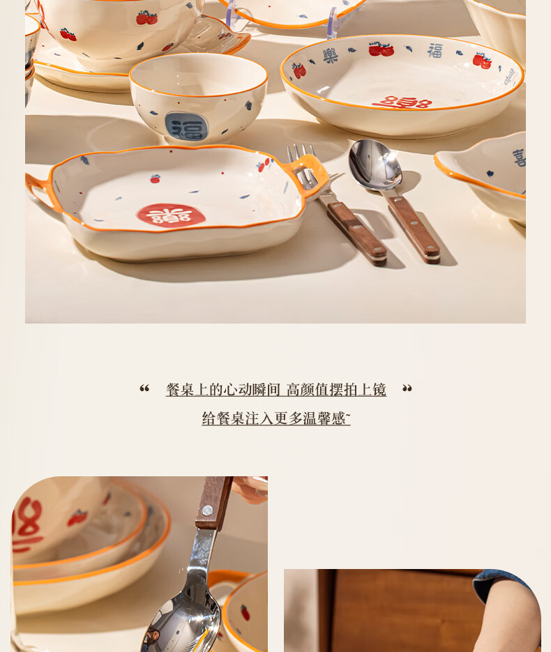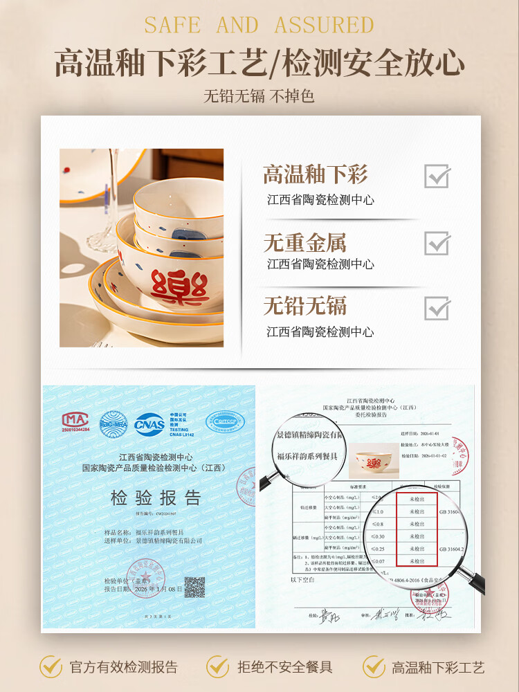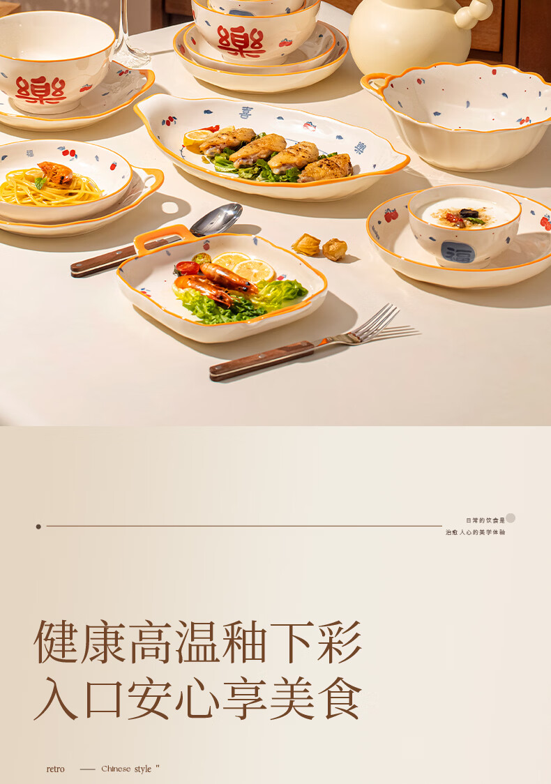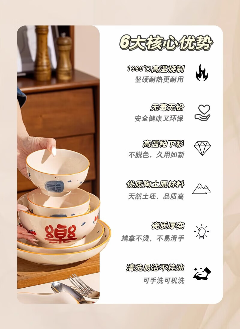 精缔陶瓷JINGDI釉下彩2026碗碟套装家用景德镇高颜值陶瓷餐具套装碗盘新婚送礼 【高温釉下彩】6人食30件套