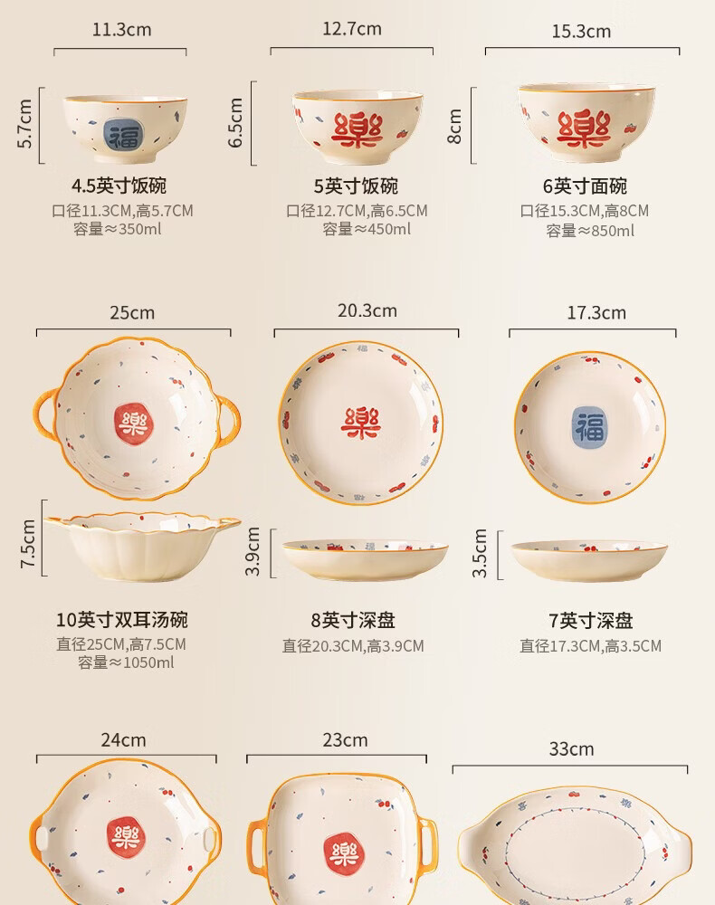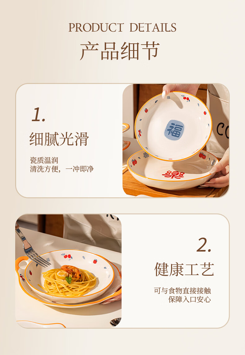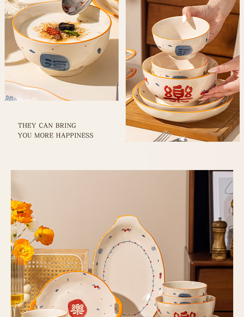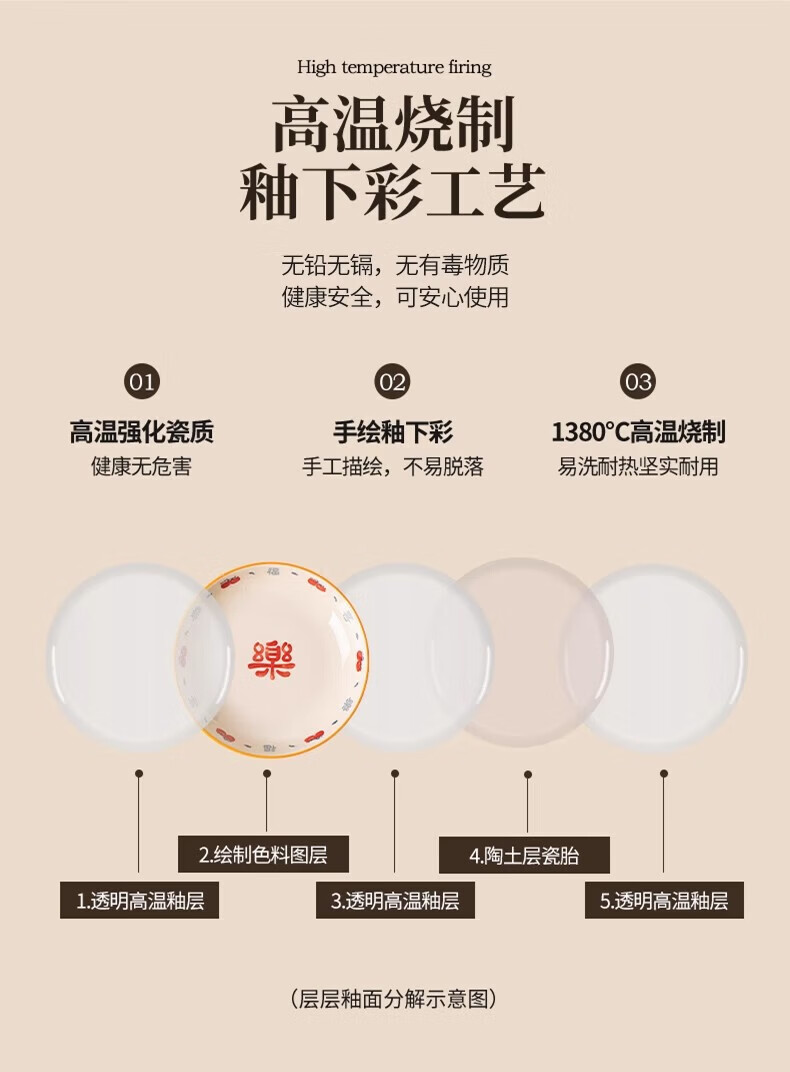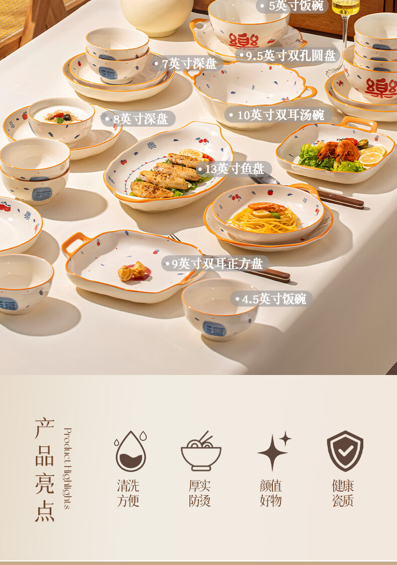 精缔陶瓷JINGDI釉下彩2026碗碟套装家用景德镇高颜值陶瓷餐具套装碗盘新婚送礼 【高温釉下彩】6人食30件套