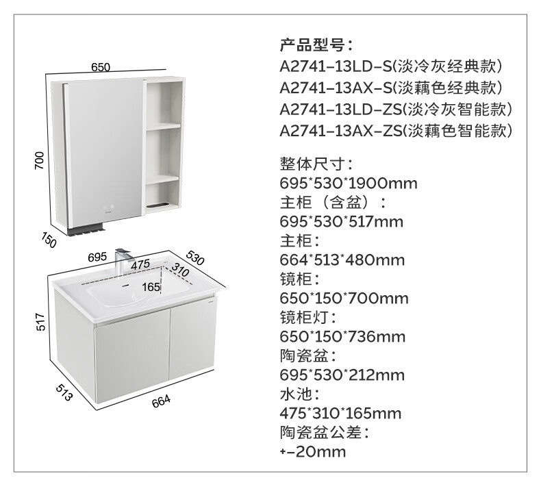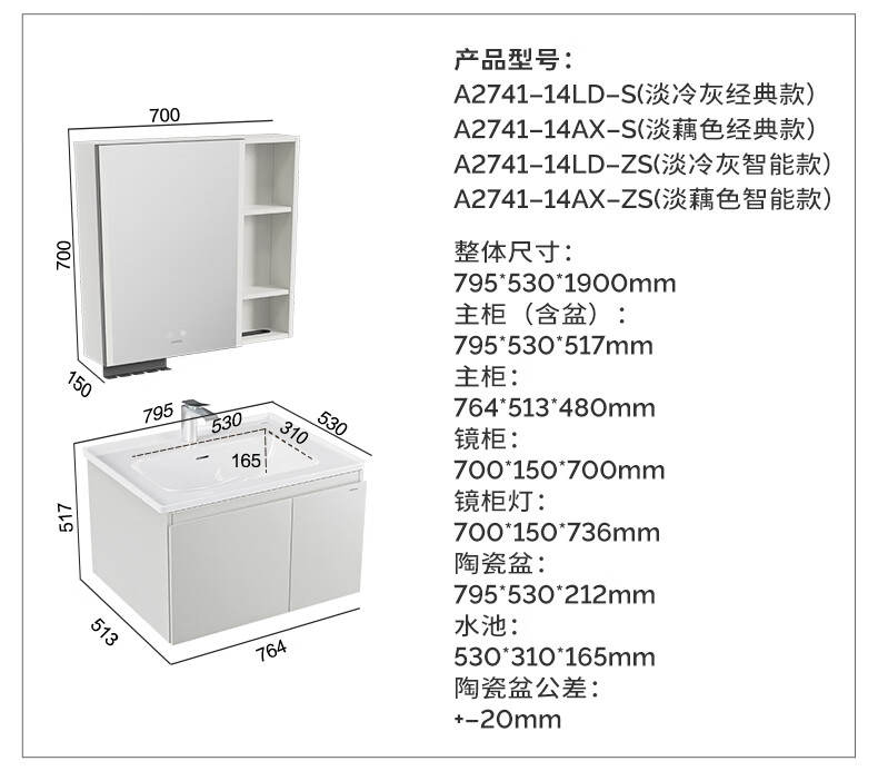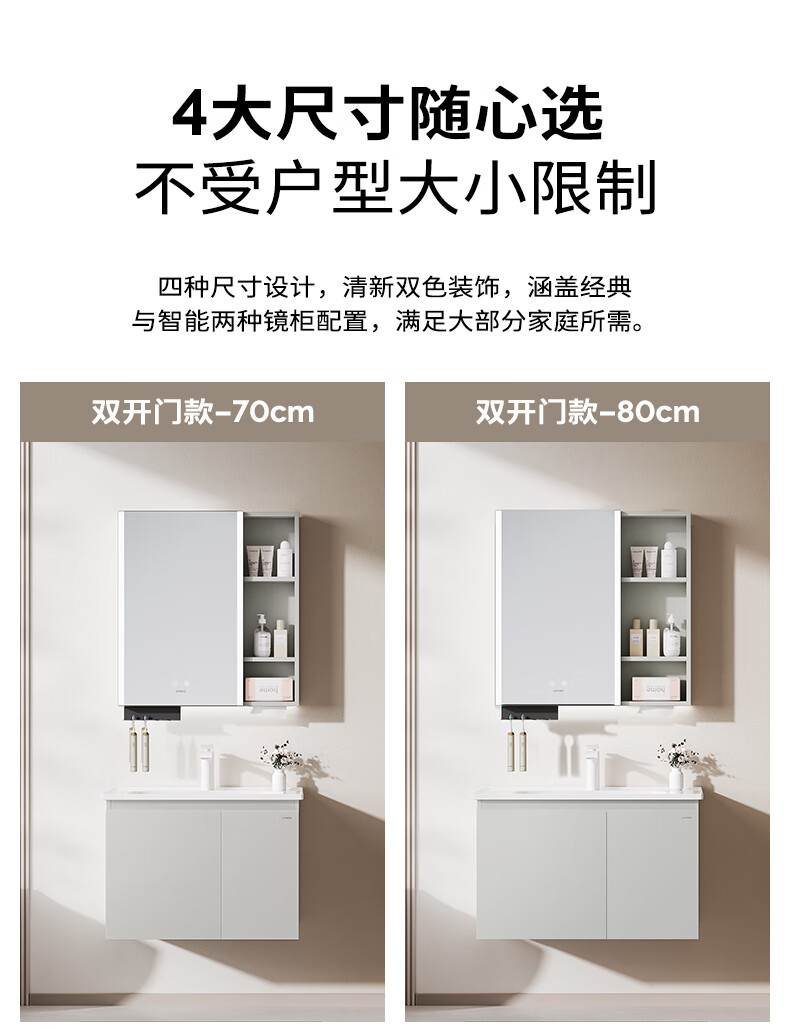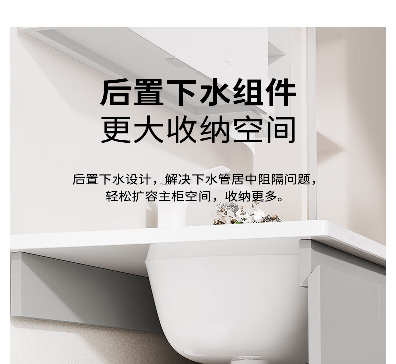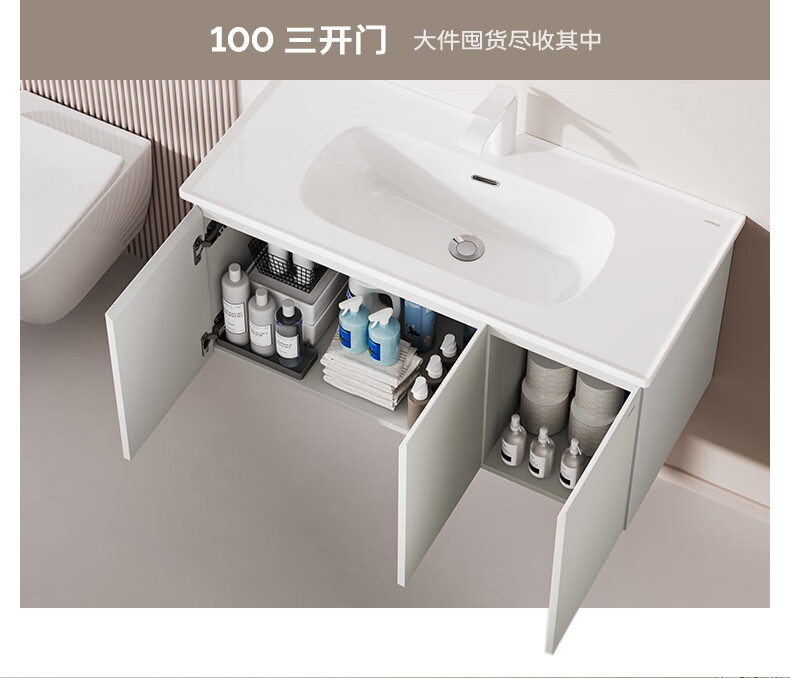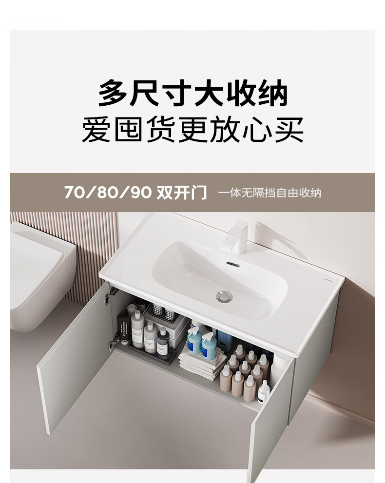 九牧(JOMOO)【超大收纳】浴室柜陶瓷一体盆洗脸盆柜冷灰色80cmA2741-14LD-S