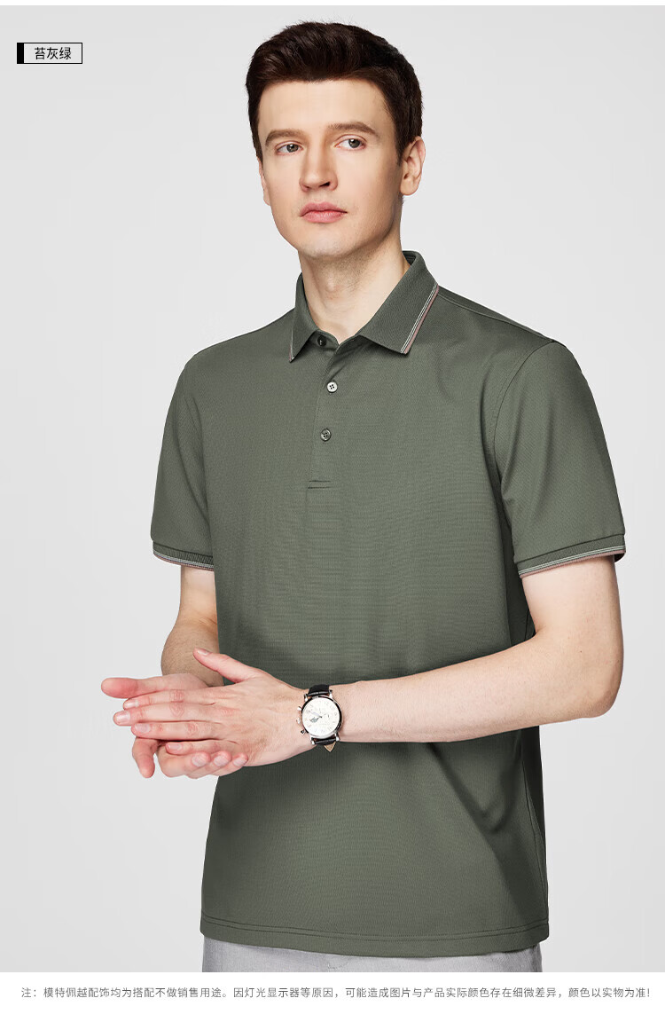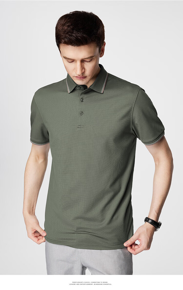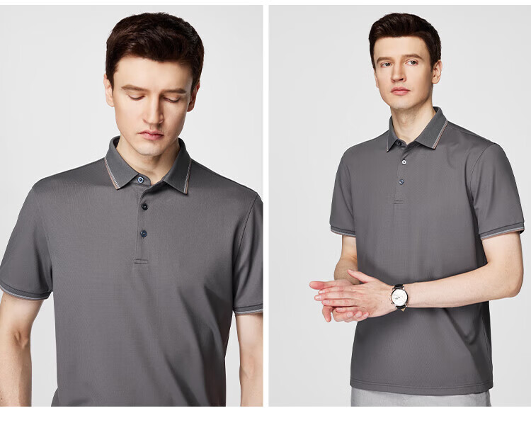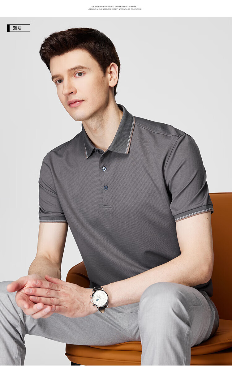 杉杉(FIRS)【华夫格肌理】短袖T恤男夏蚕丝柔顺POLO领轻薄透气弹力休闲上衣 灰色 M 170/88A