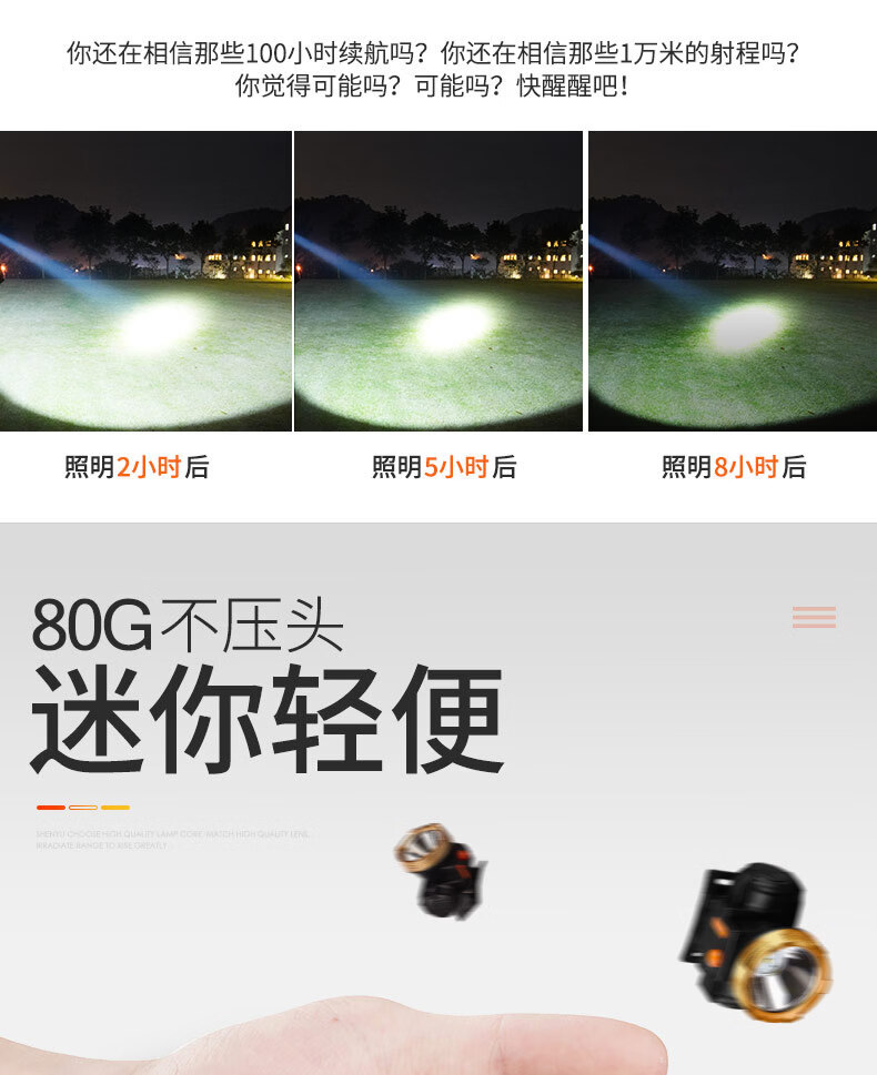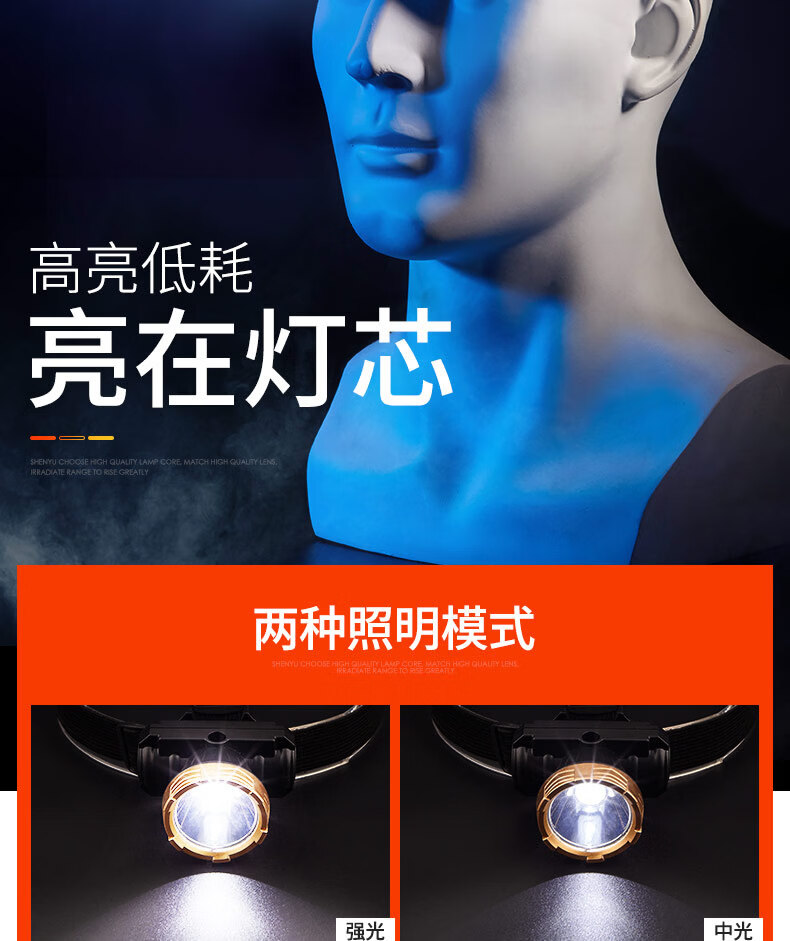 SHENYU头灯LED强光可充电超亮头戴式巡逻户外钓鱼大泛光大功率照明灯 超亮-持久续航-大容量