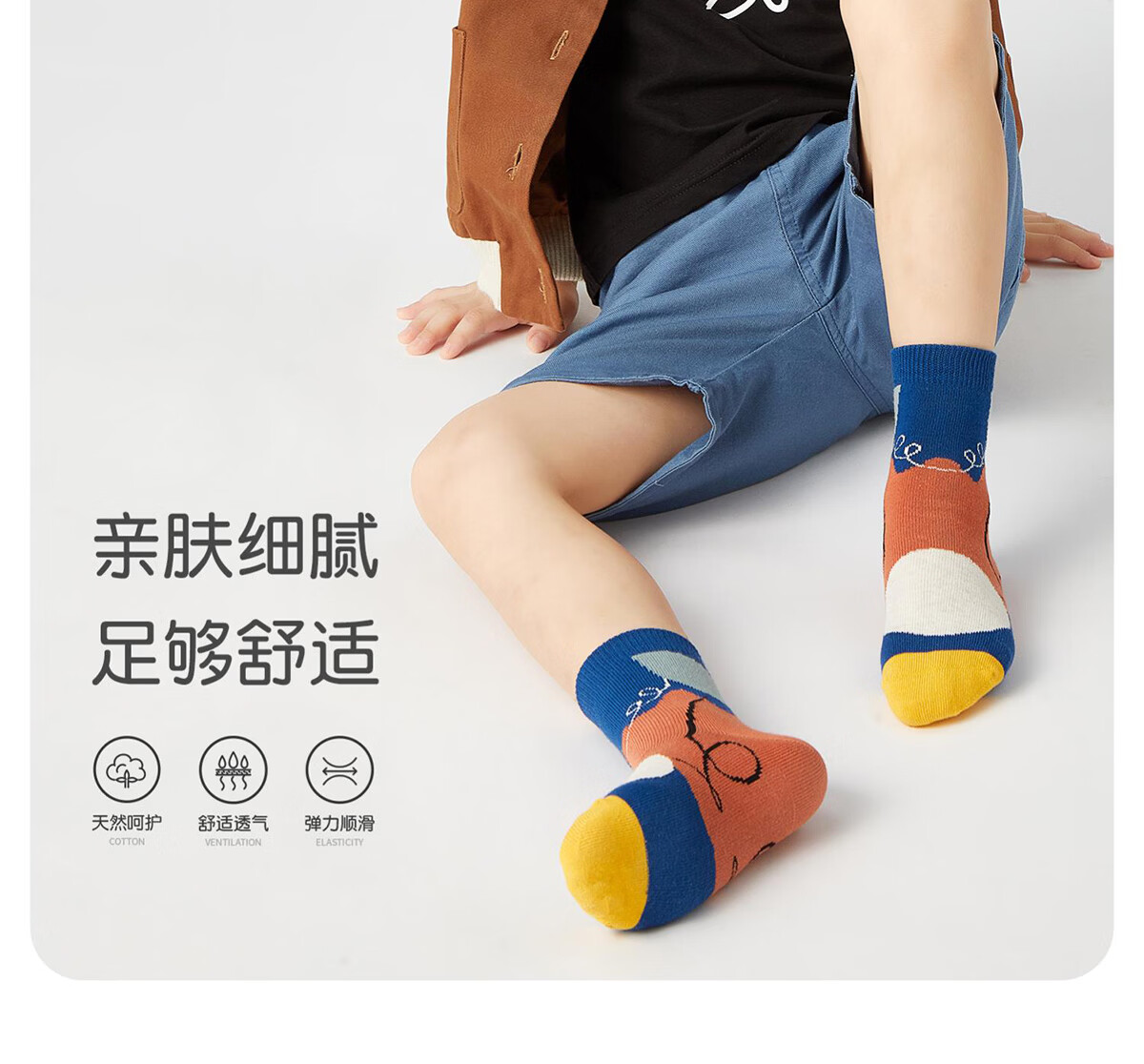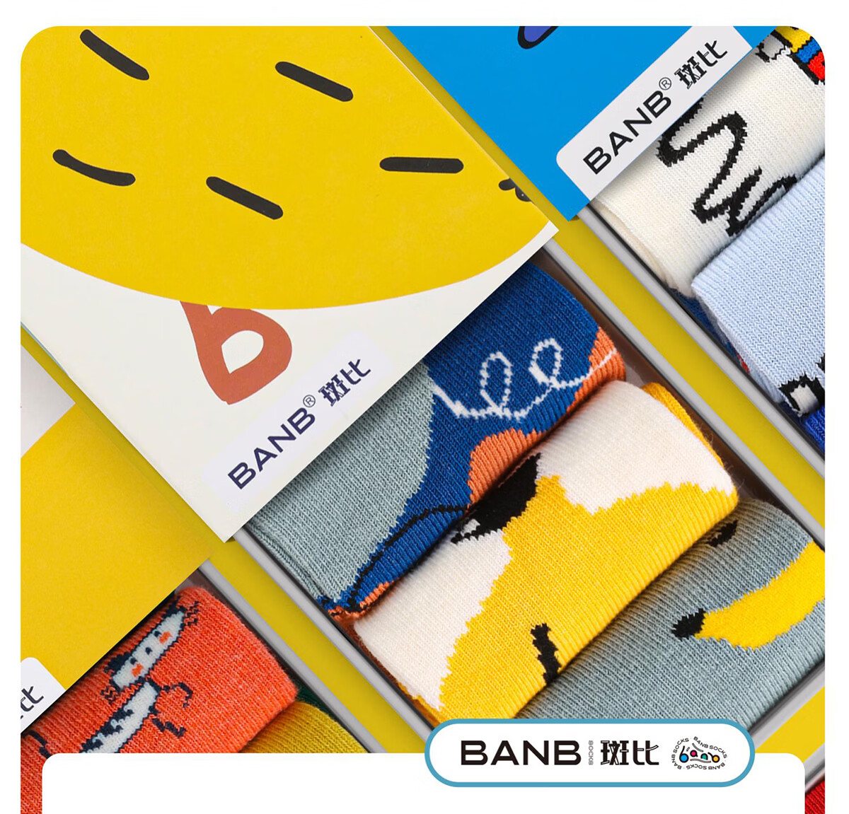 斑比儿童袜子潮春秋款大童宝宝秋冬季男女童袜无骨中筒棉袜 BB2254 春秋儿童趣味个性袜 5双 0-1岁 建议脚码16码以内【12-14】