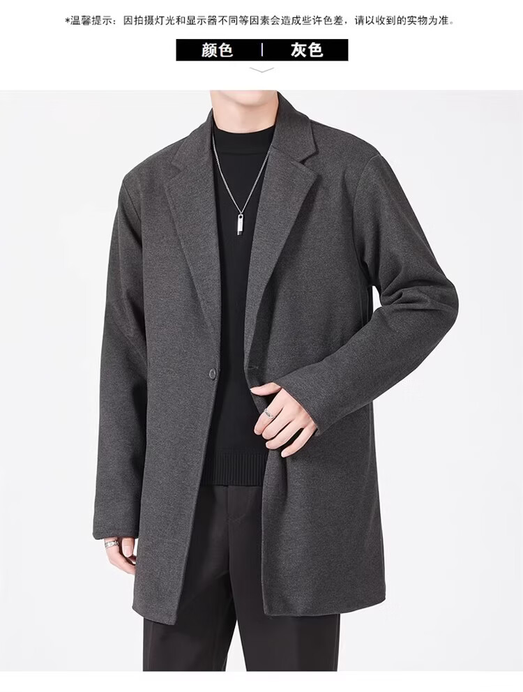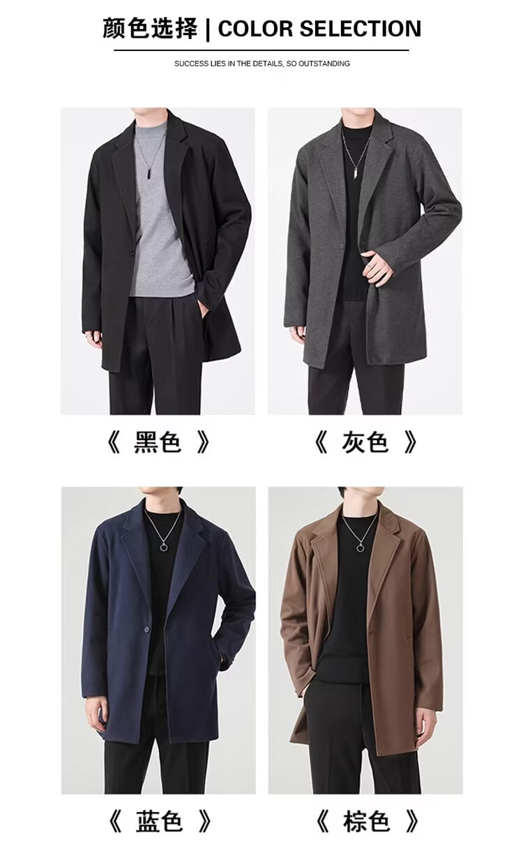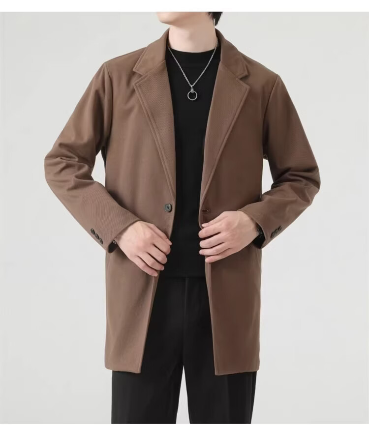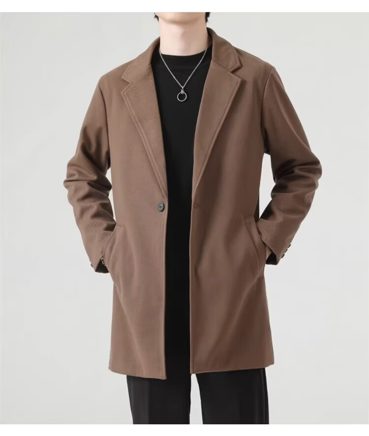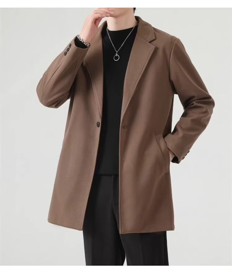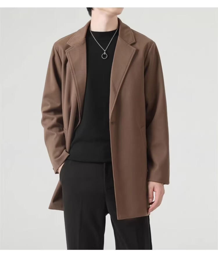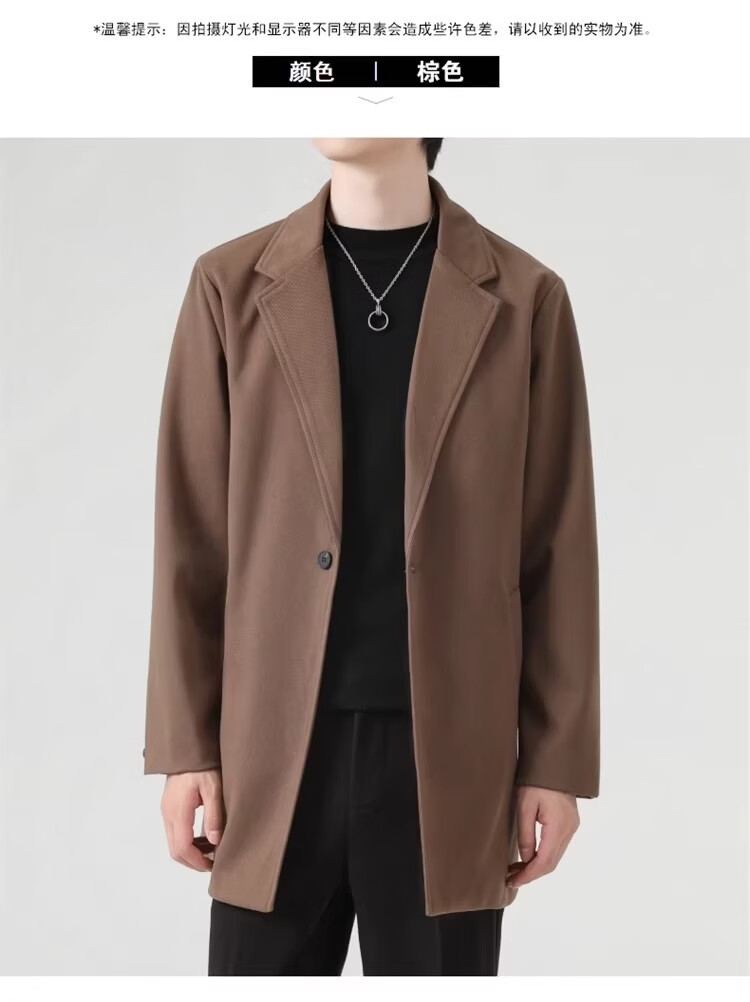 真维斯(Jeanswest)春秋季中长款男生毛呢外套韩版休闲大衣英伦风高级感呢子男装 【高品质款】HYKY-K12棕色 S