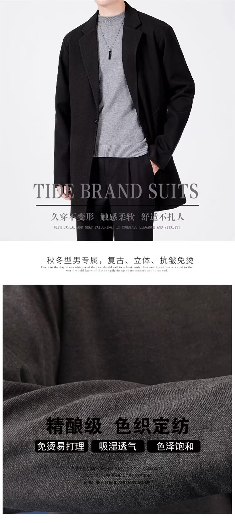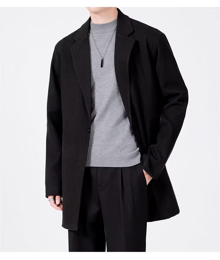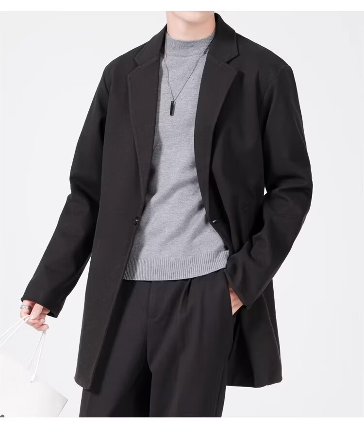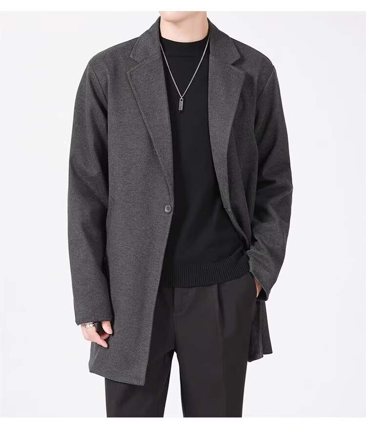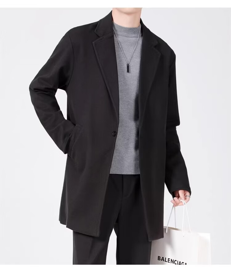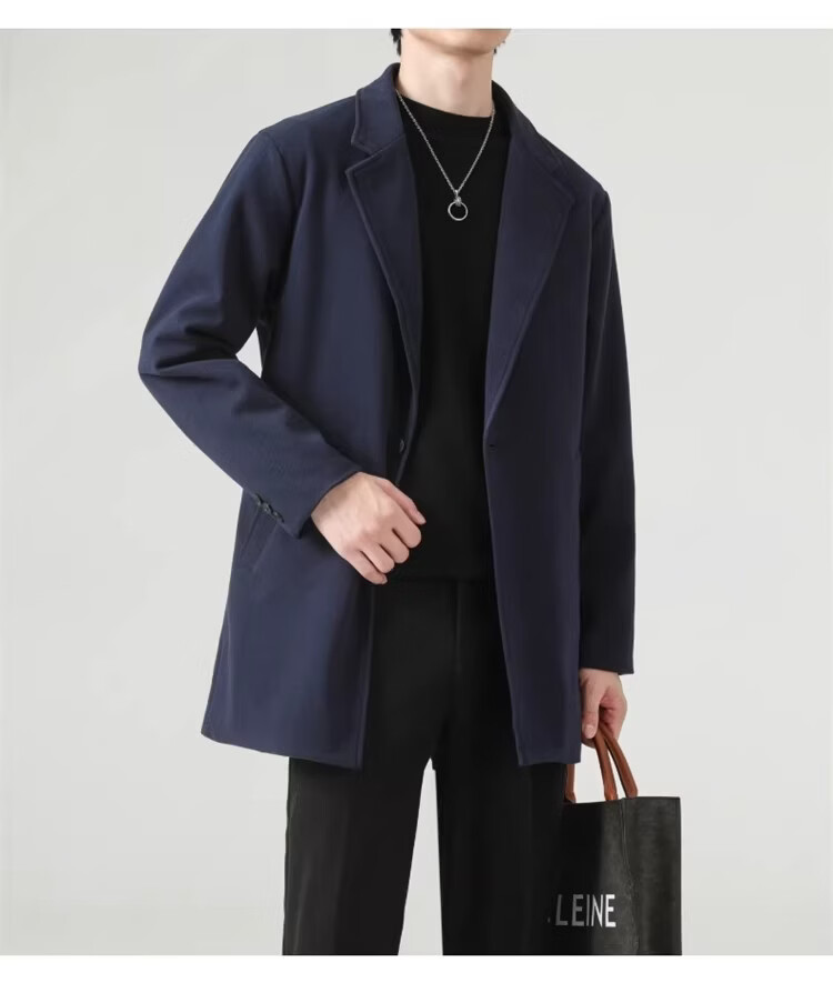 真维斯(Jeanswest)春秋季中长款男生毛呢外套韩版休闲大衣英伦风高级感呢子男装 【高品质款】HYKY-K12棕色 S