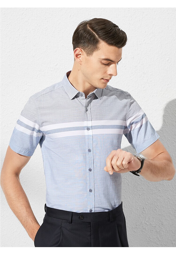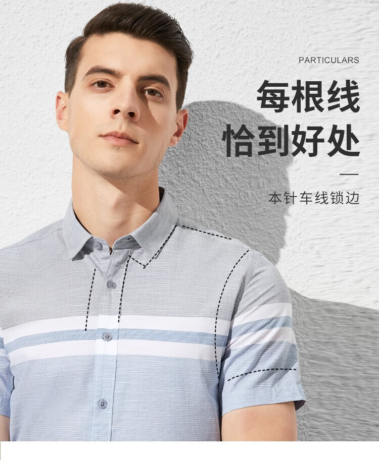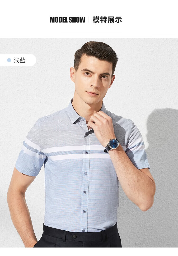 杉杉(FIRS)【纯棉亲肤】短袖衬衫男夏季新款商务休闲上衣亲肤舒适衬衣男装 浅蓝 M (170/88A)