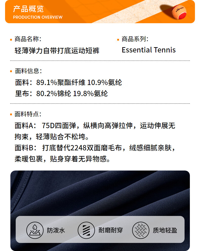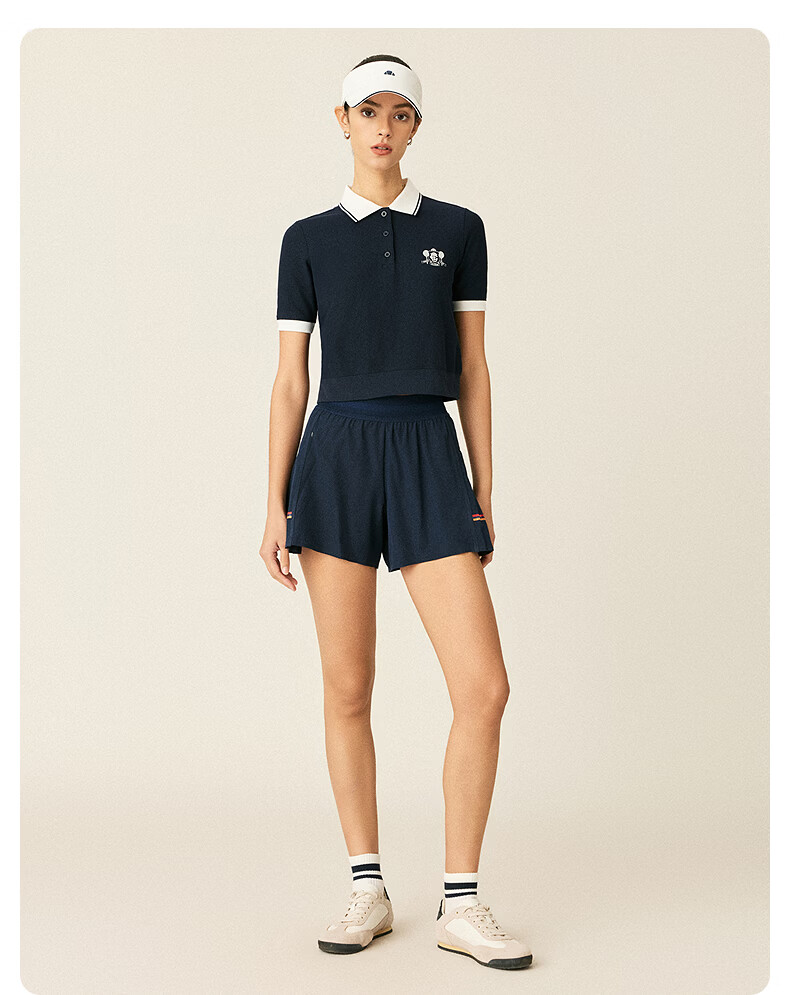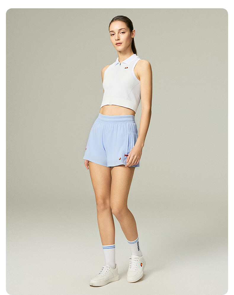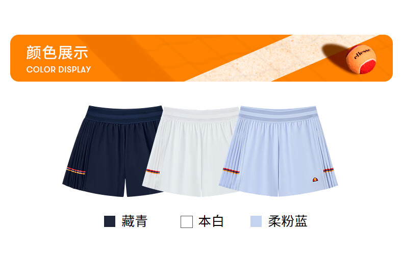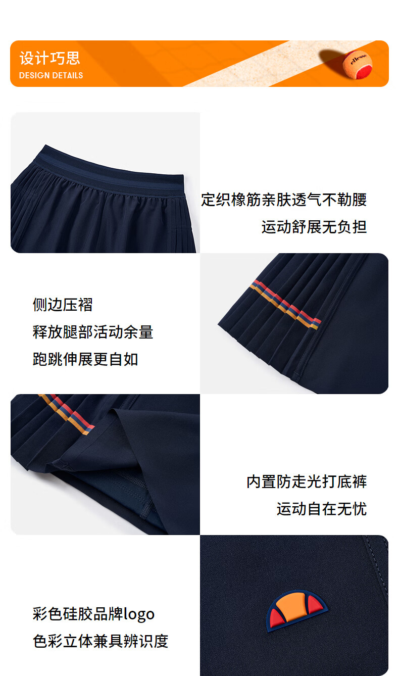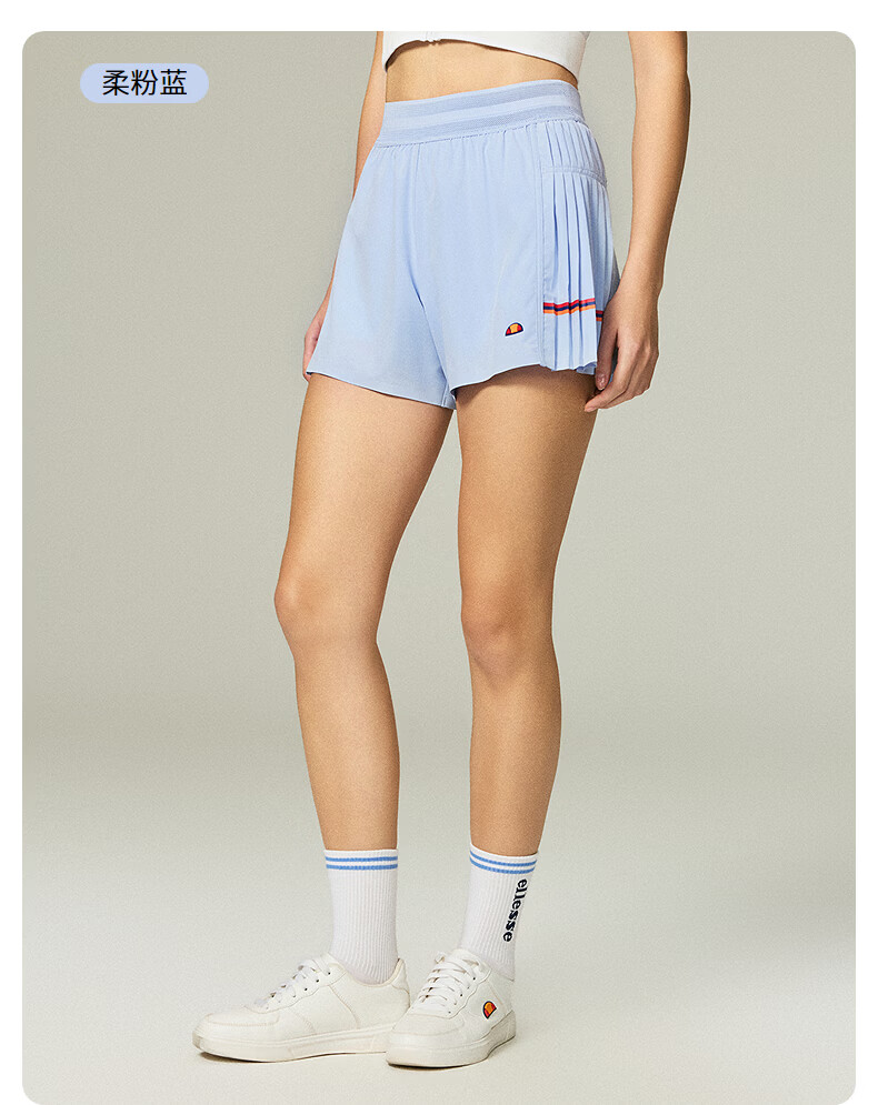 ellesse小贝壳26春夏新品网球裤轻薄透气打底裤防泼水百褶短裤女 藏青 S