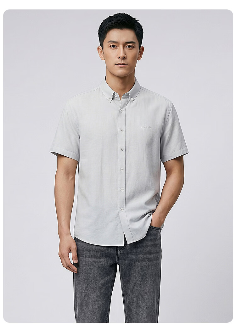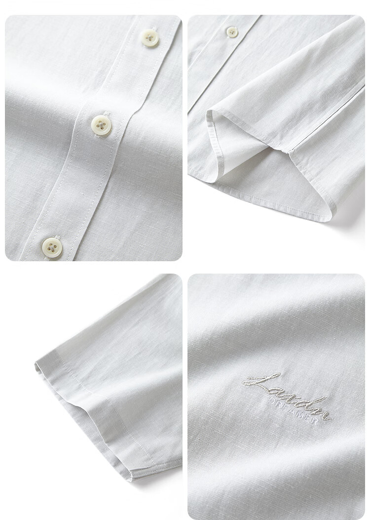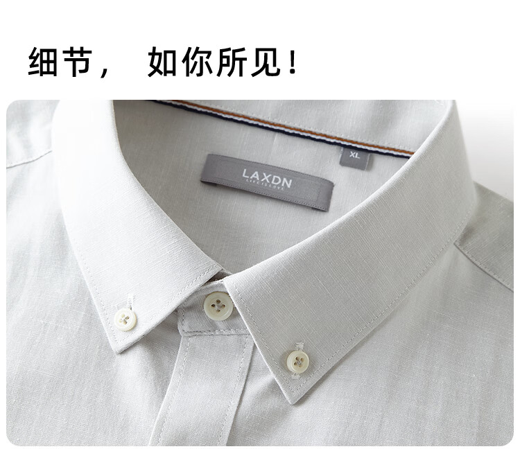 莱克斯顿(laxdn)短袖衬衫男夏季棉亚麻混纺柔软吸湿透气刺绣印花商务休闲上衣男 浅杏 XL