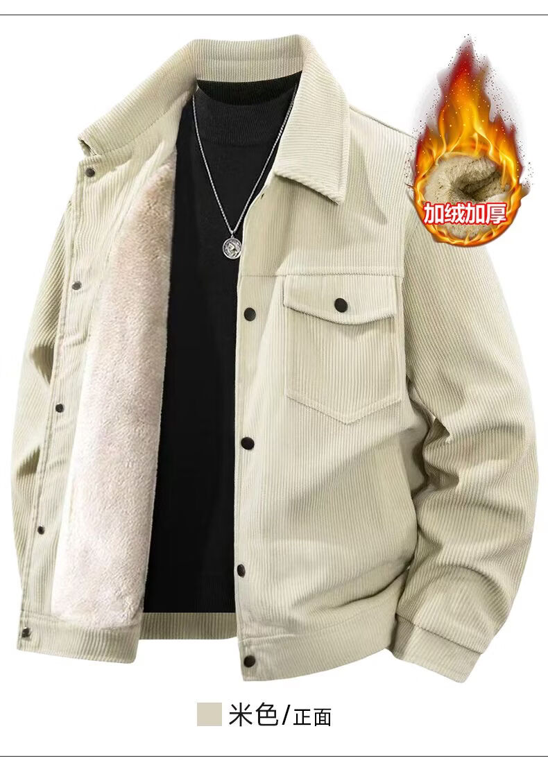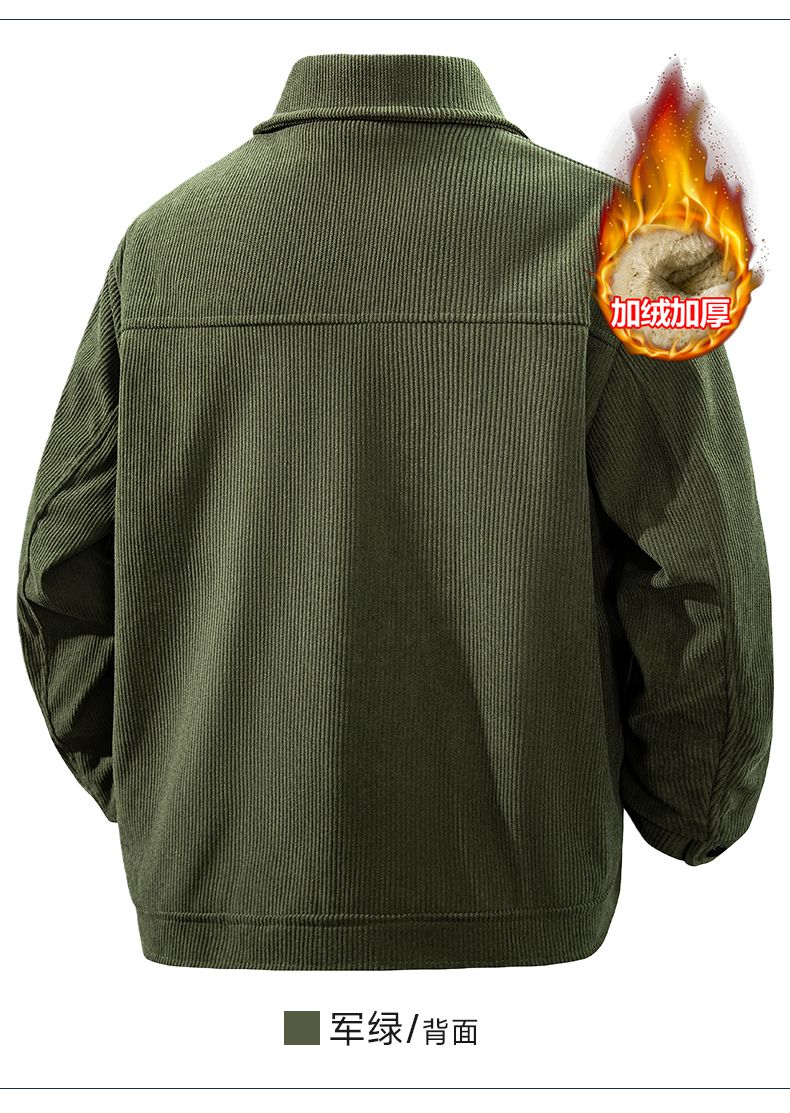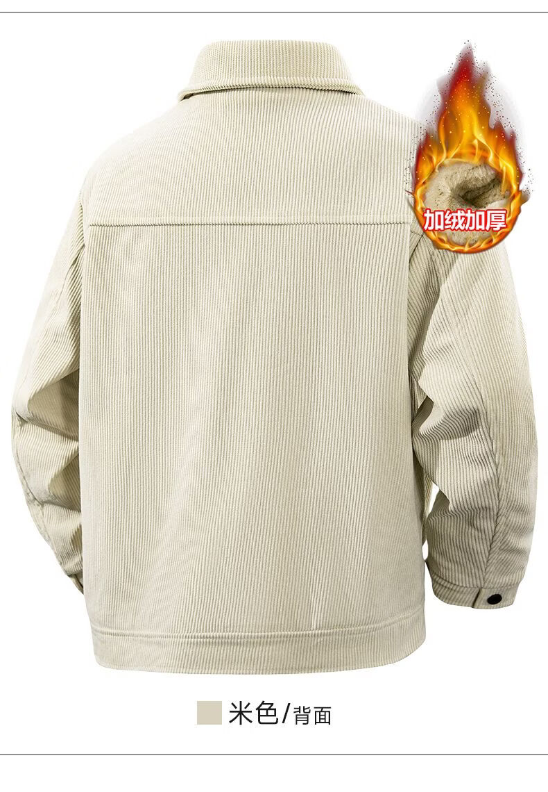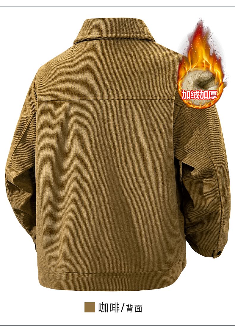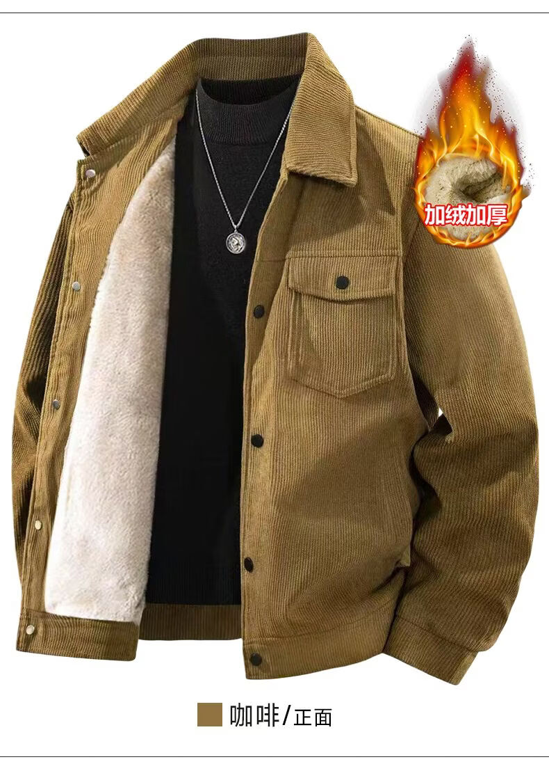 真维斯灯芯绒夹克男款2026年秋冬季新款美式复古休闲翻领工装外套加绒 加绒咖啡 2XL