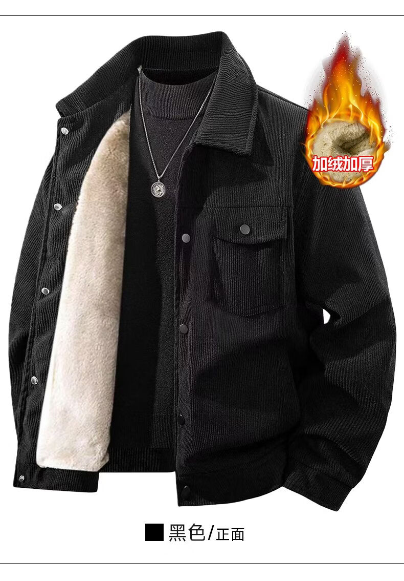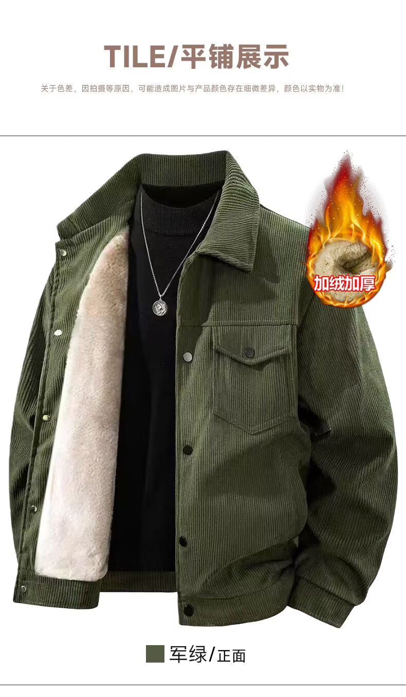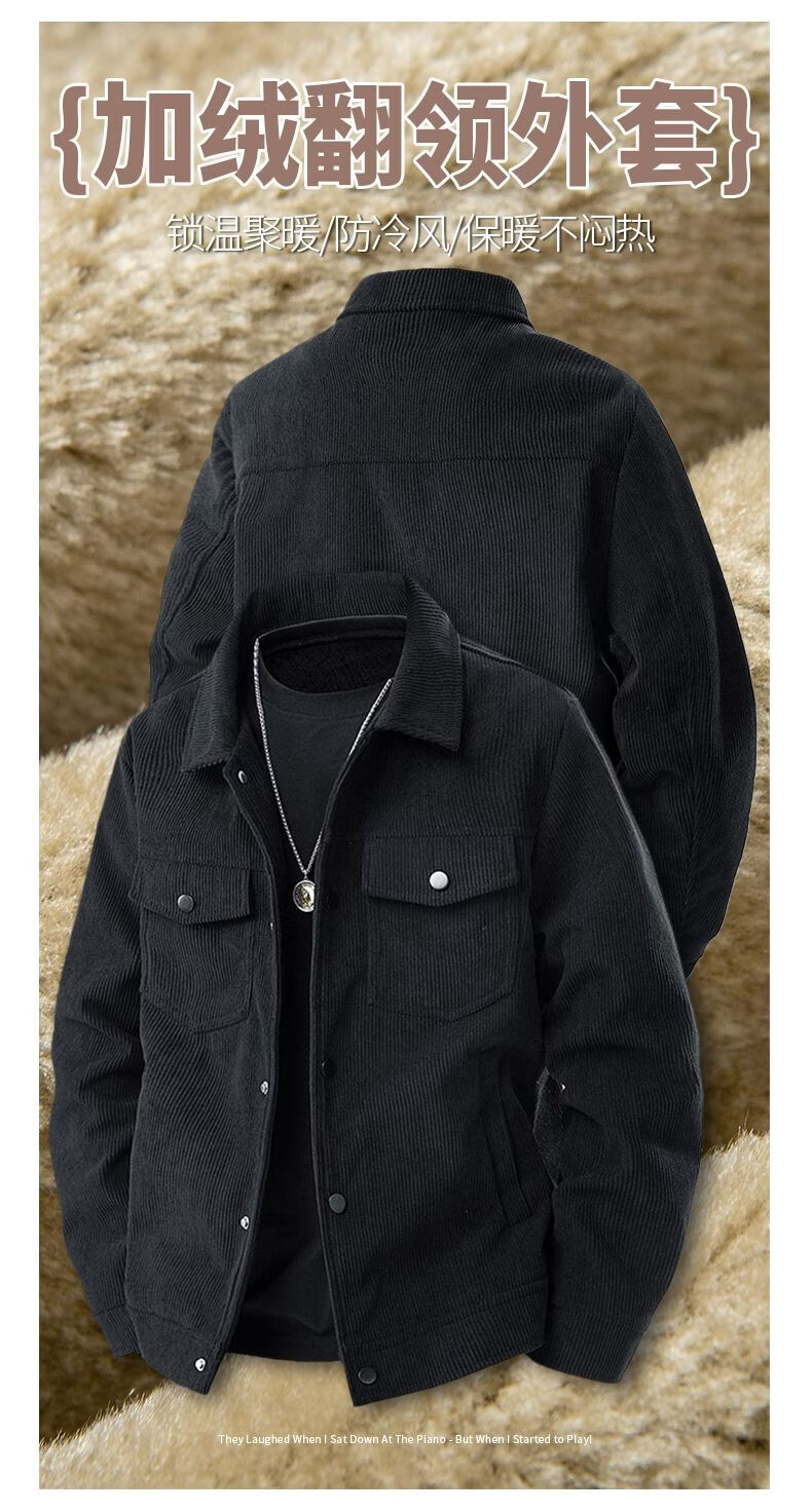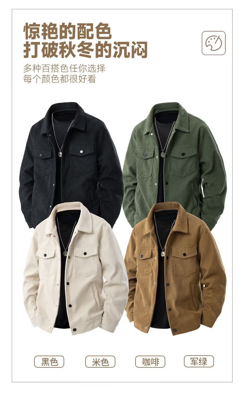 真维斯灯芯绒夹克男款2026年秋冬季新款美式复古休闲翻领工装外套加绒 加绒咖啡 2XL