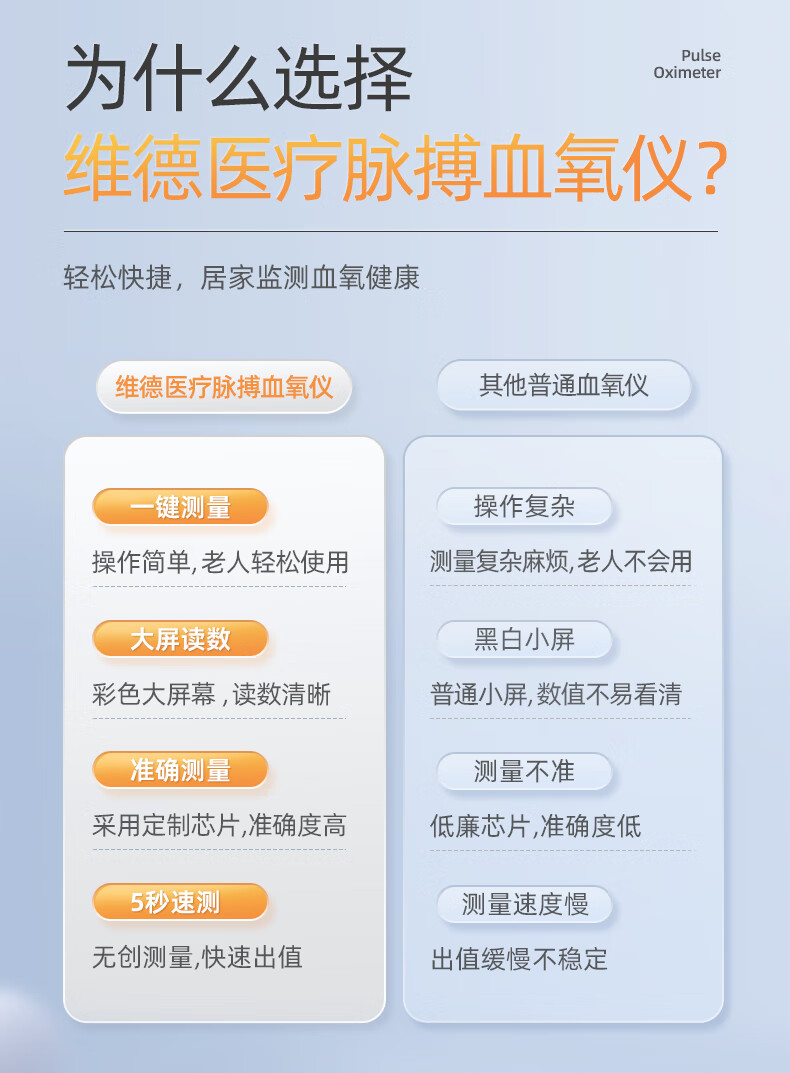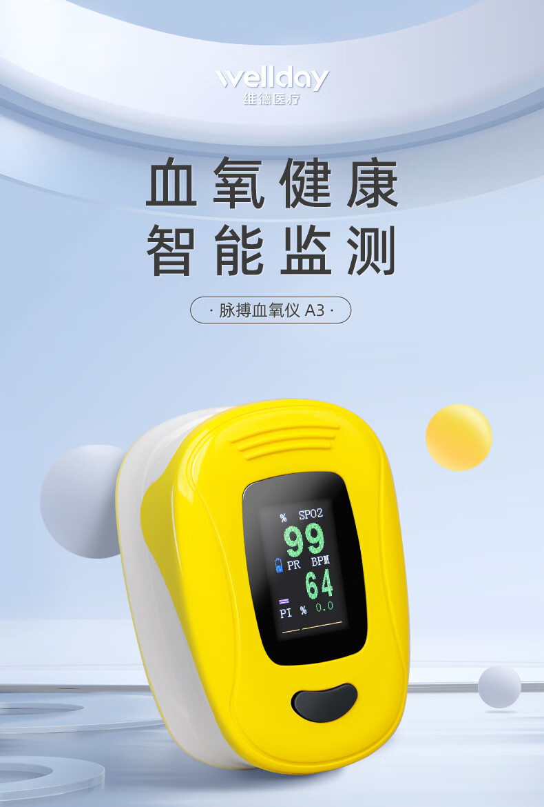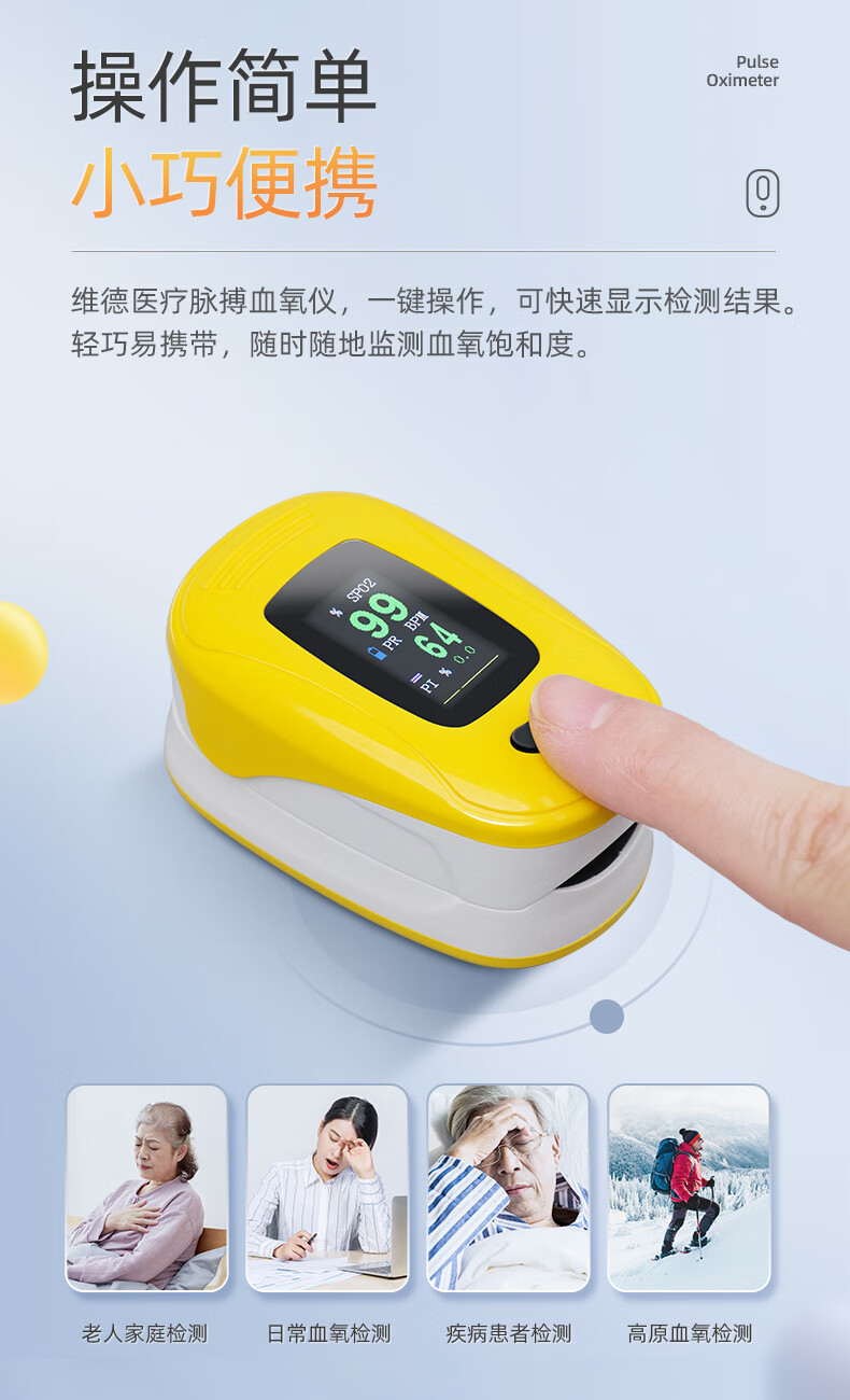 维德(WELLDAY)医用血氧仪指夹式医用测氧仪指脉氧仪手指夹式脉搏血氧饱和监测仪 【指夹式血氧仪】A5型硅胶指模