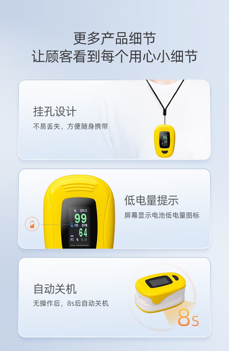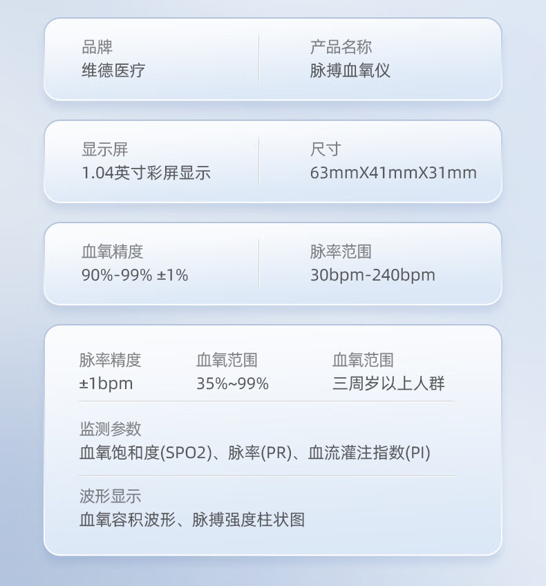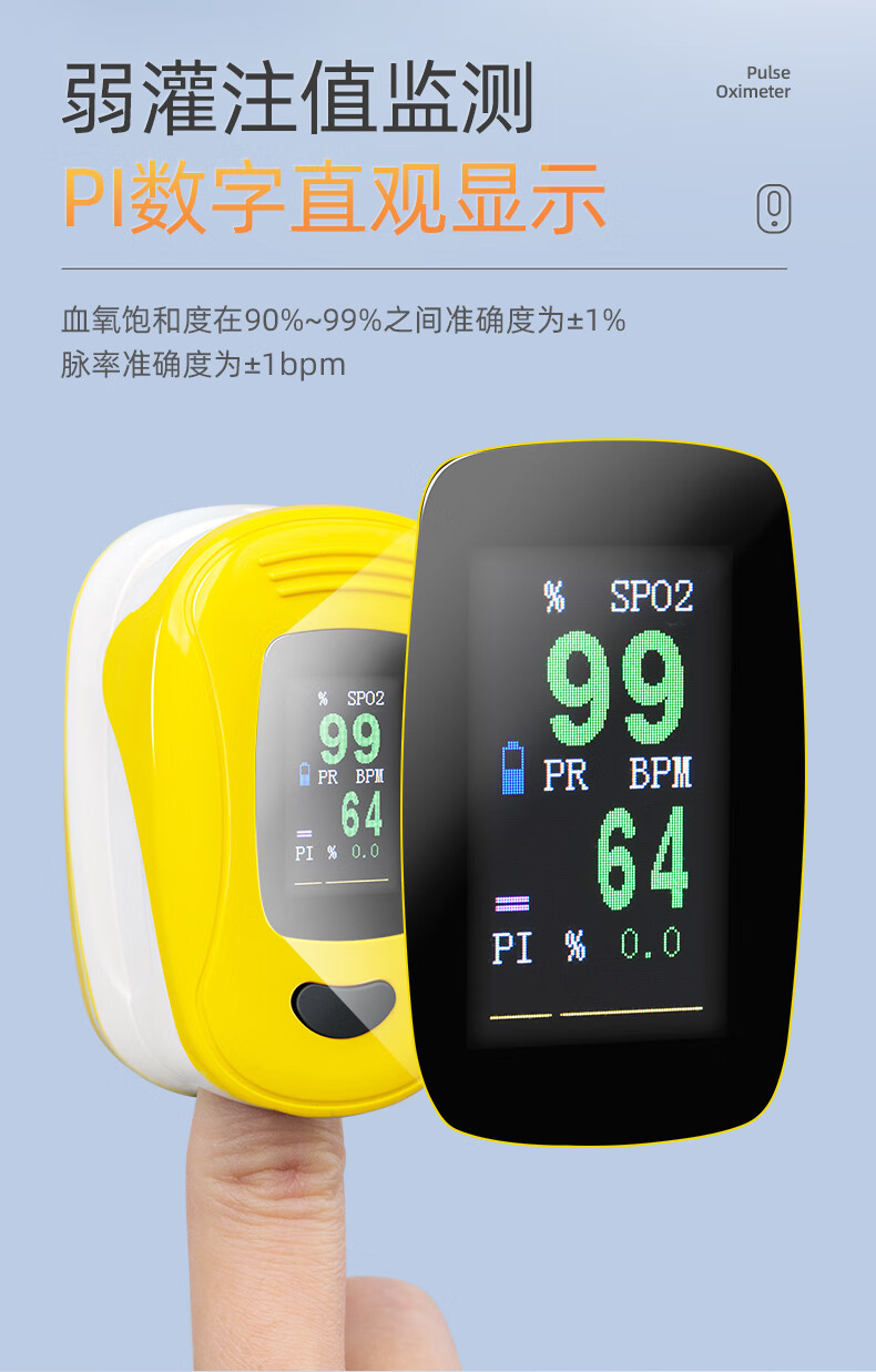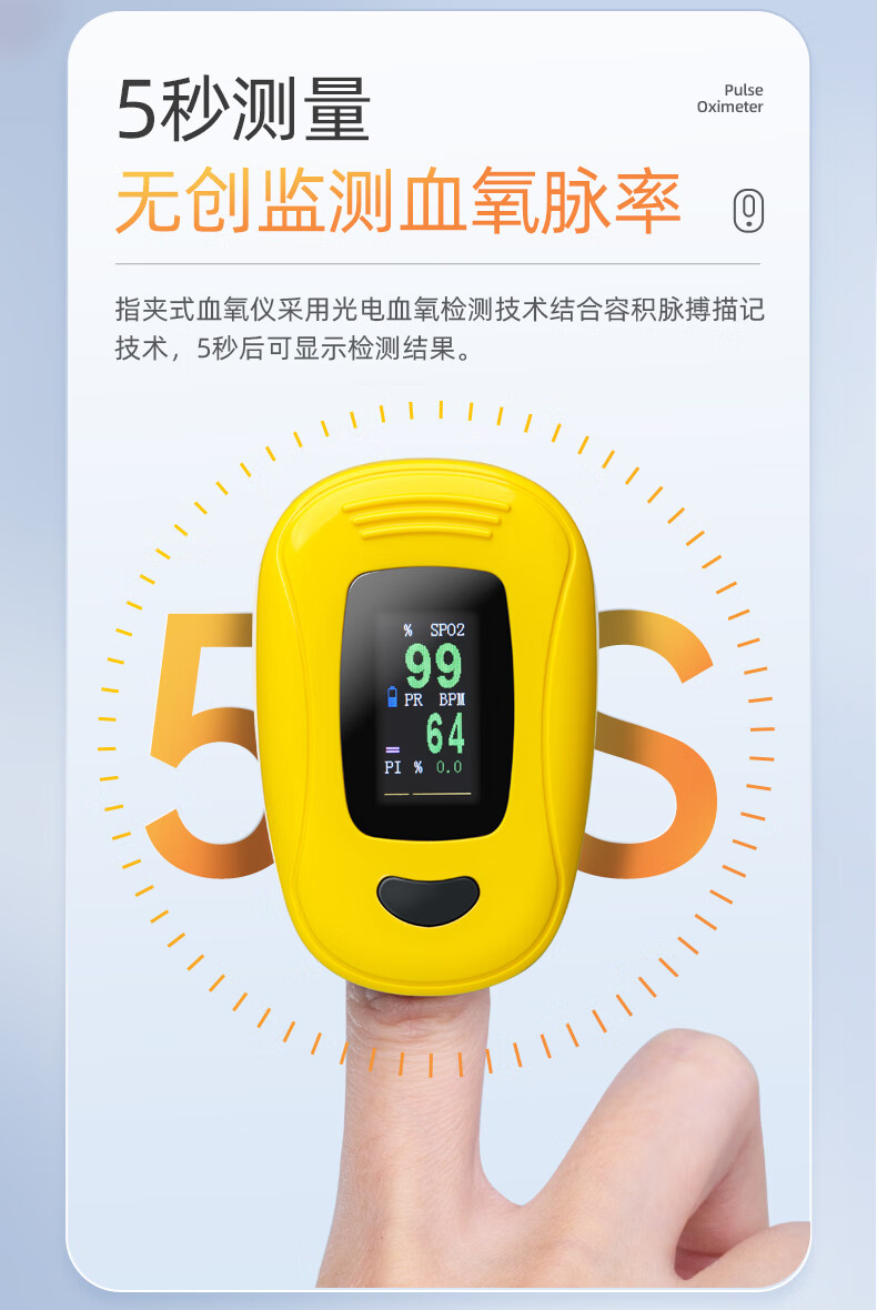 维德(WELLDAY)医用血氧仪指夹式医用测氧仪指脉氧仪手指夹式脉搏血氧饱和监测仪 【指夹式血氧仪】A5型硅胶指模