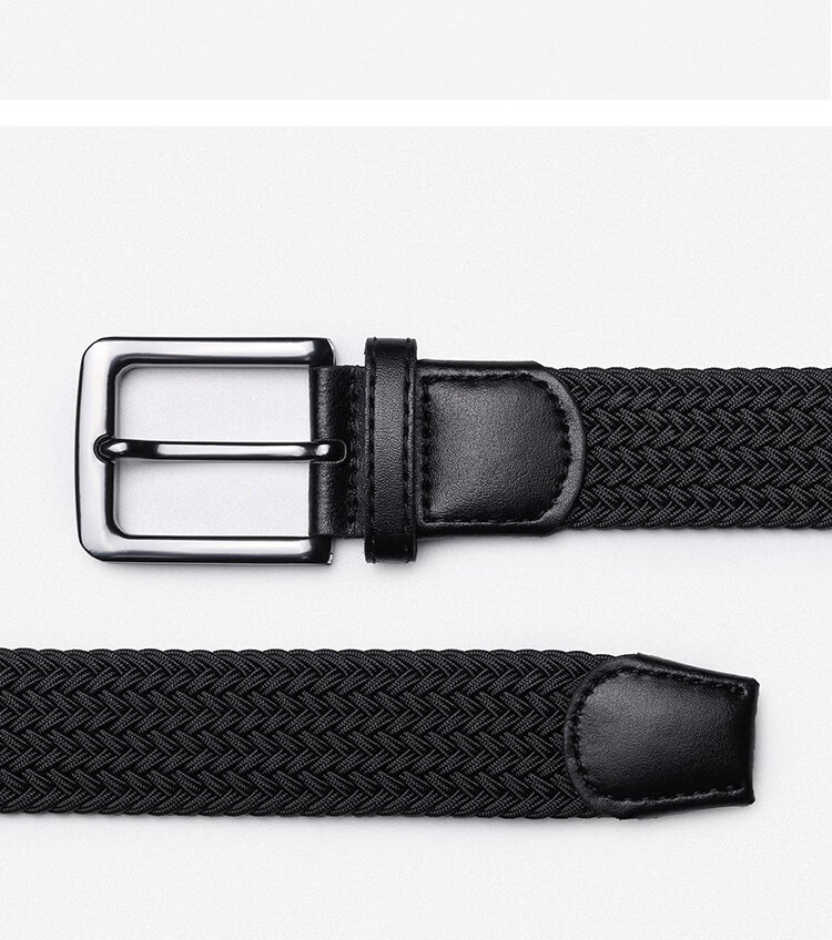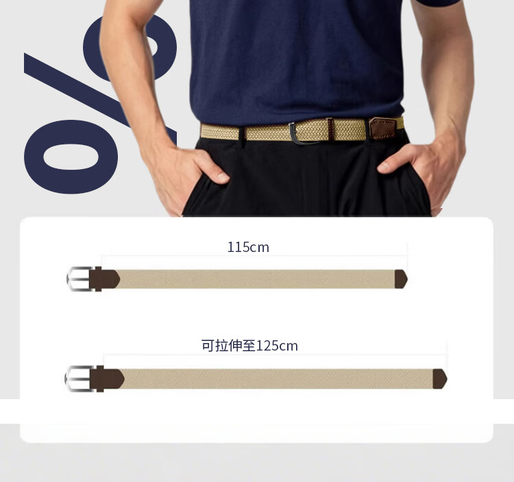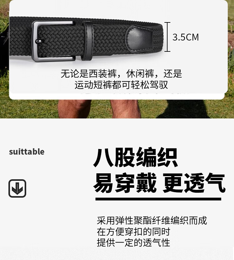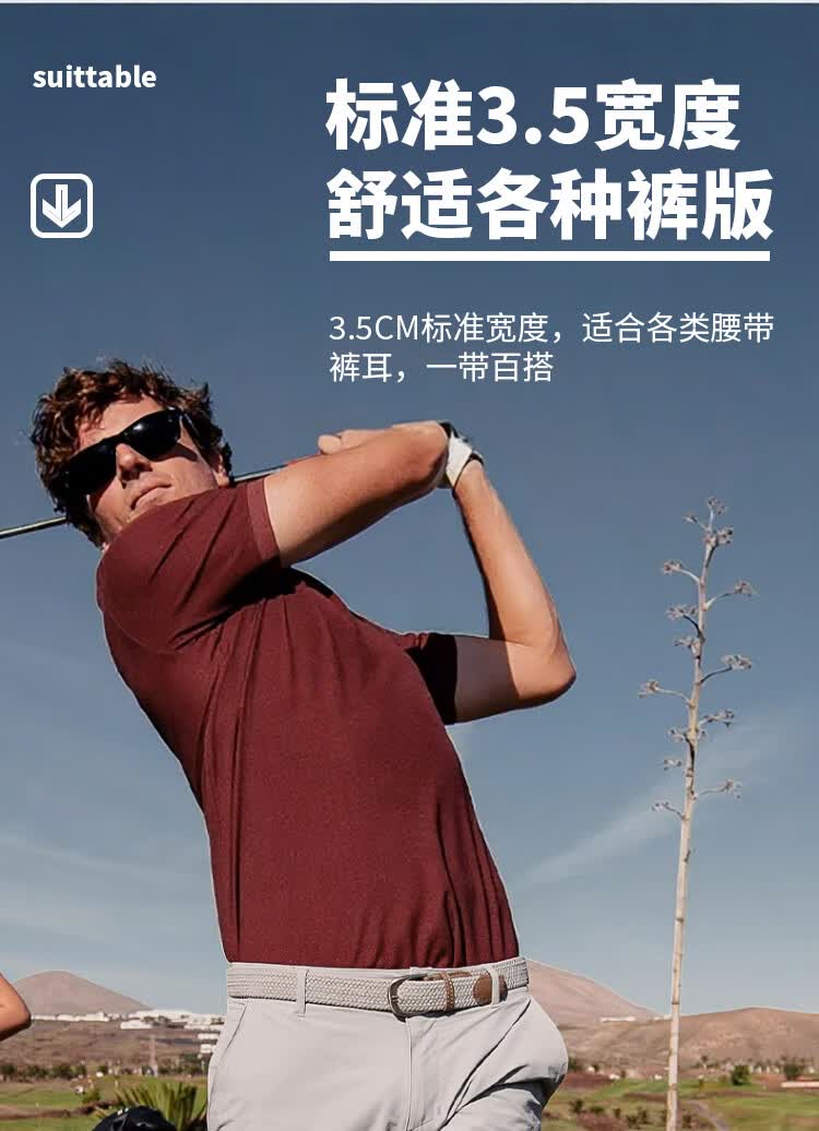 CHALKIN高尔夫帆布腰带男弹力编织布皮带针扣休闲简约户外运动透气免打孔 蓝白 115cm