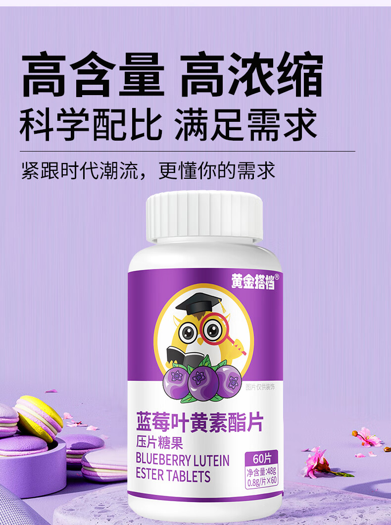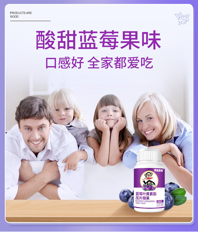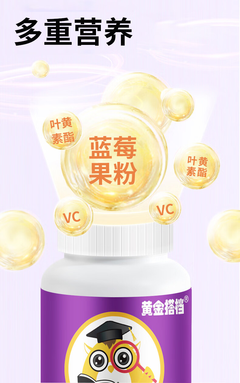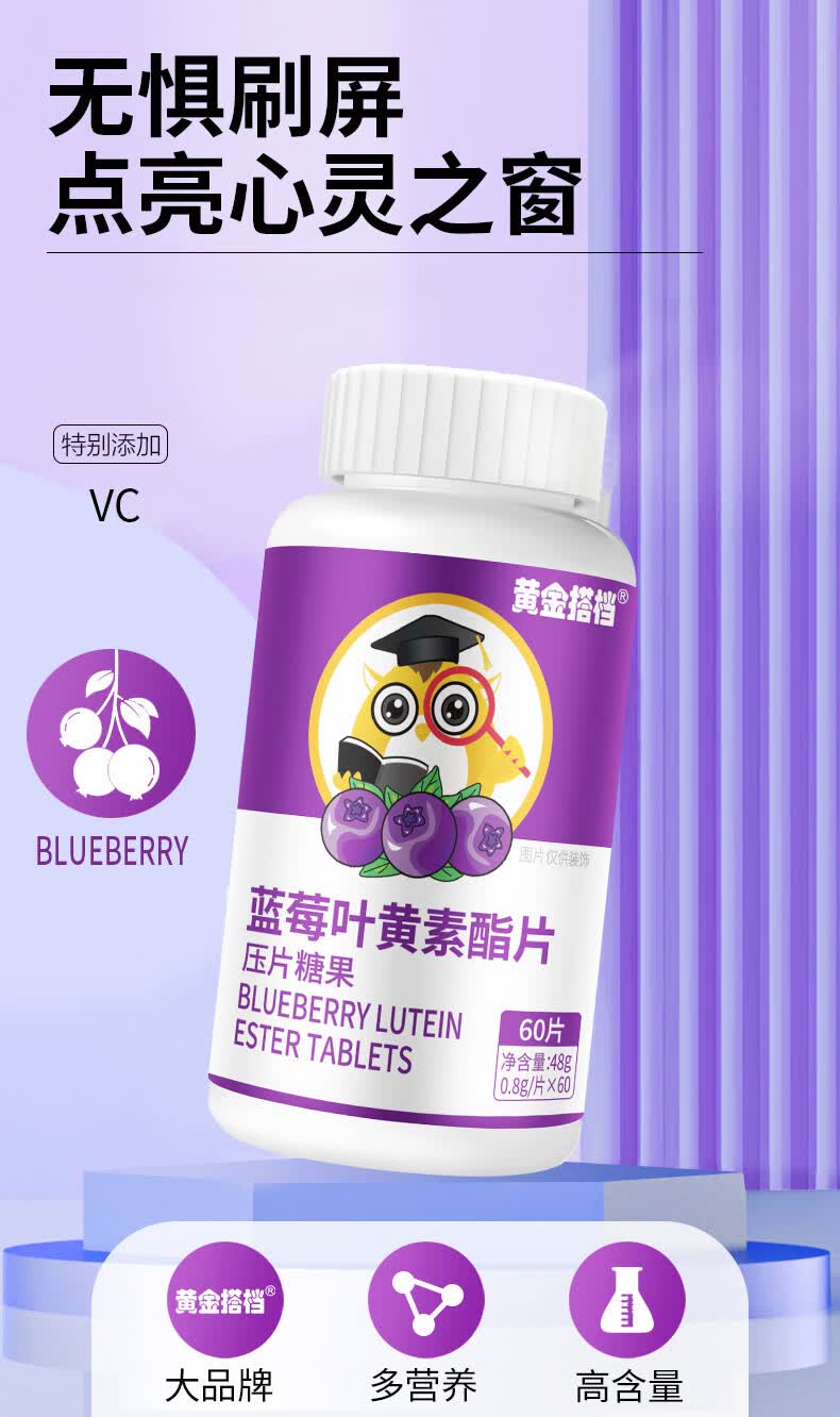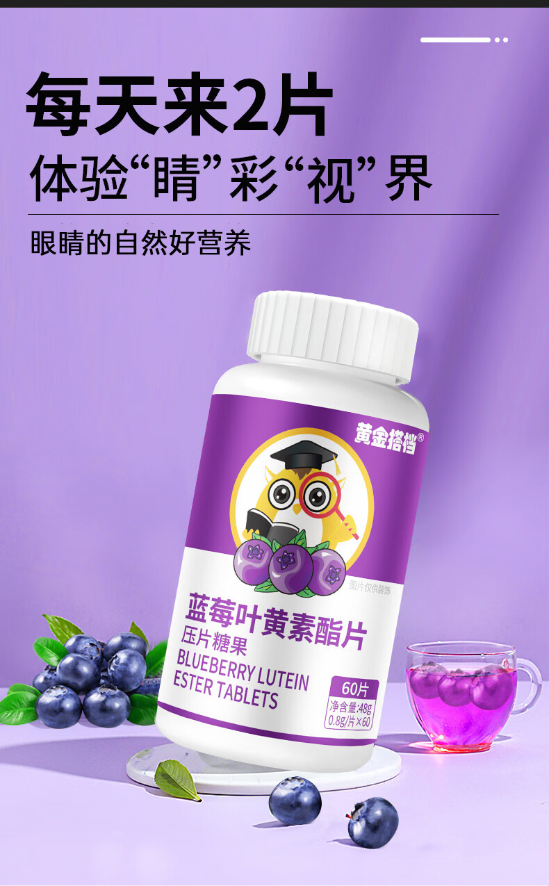黄金搭档蓝莓叶黄素儿童青少年成人酯压片 糖果眼睛好营养 叶黄素*3瓶