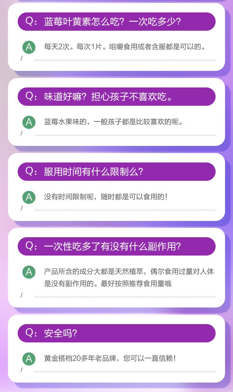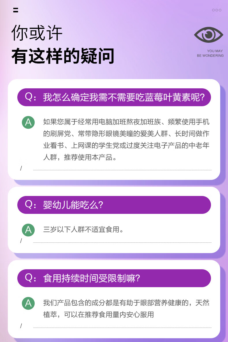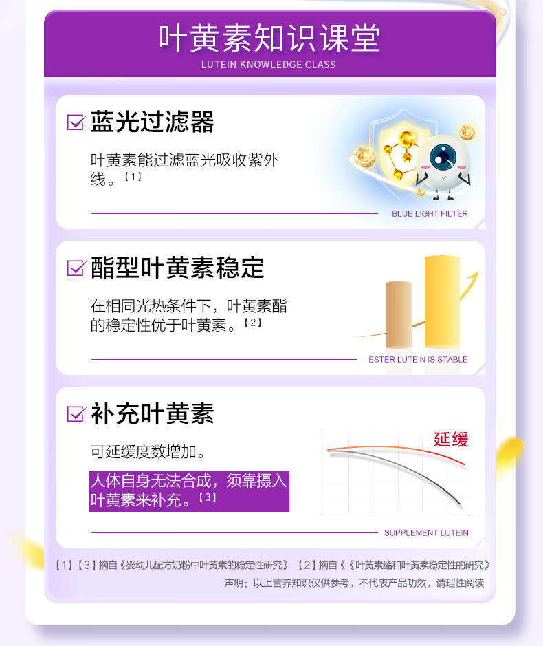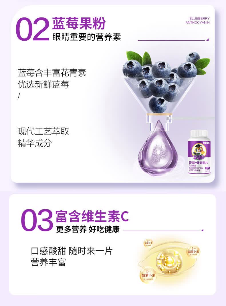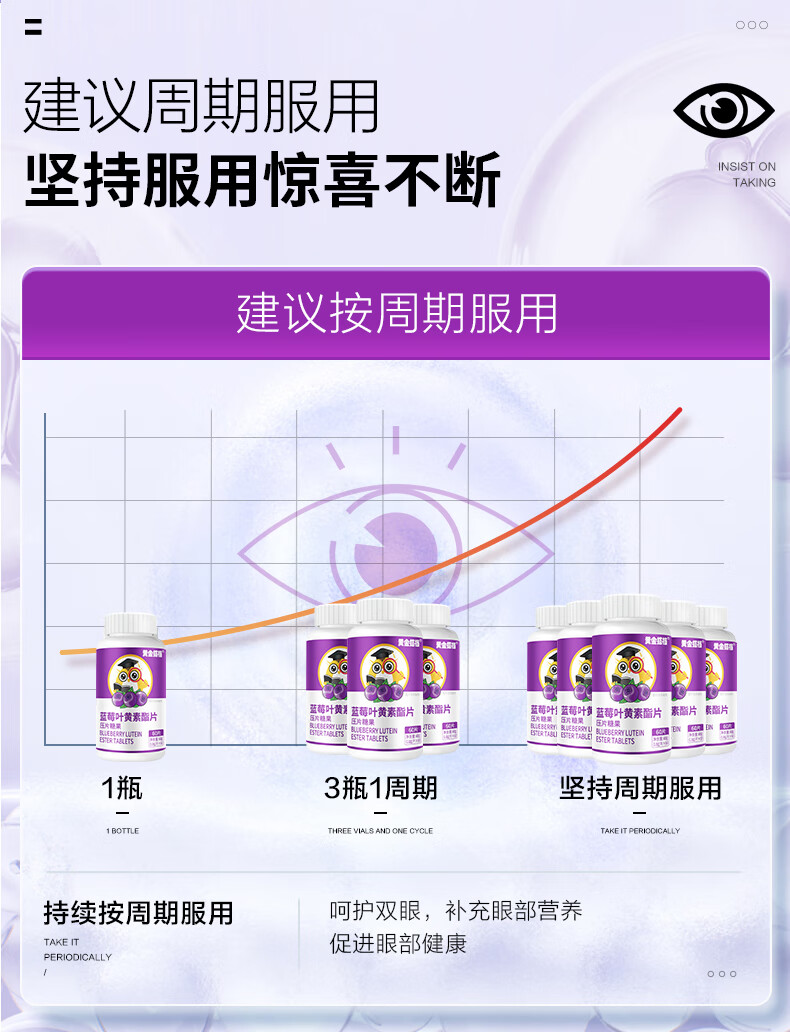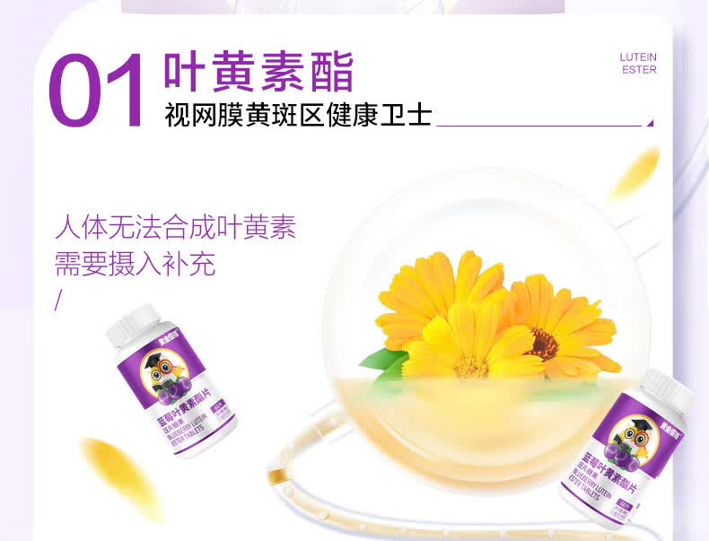 黄金搭档蓝莓叶黄素儿童青少年成人酯压片 糖果眼睛好营养 叶黄素*3瓶
