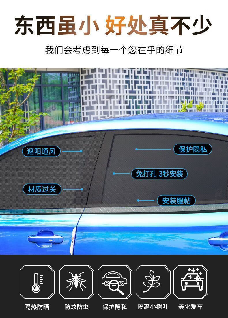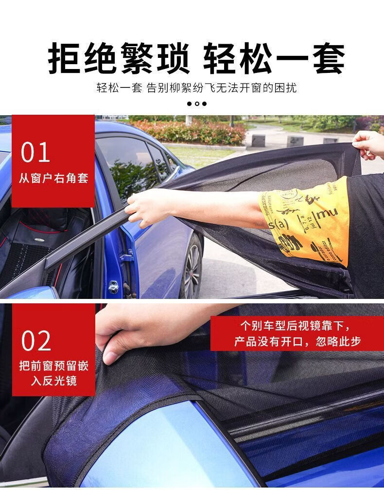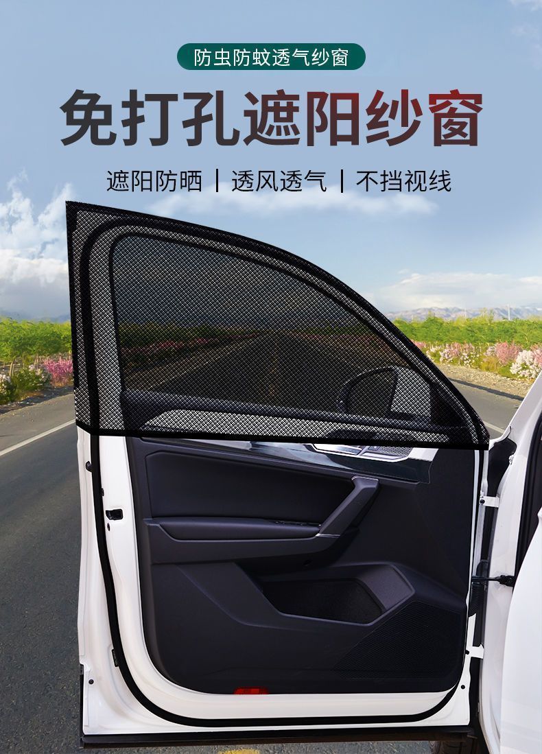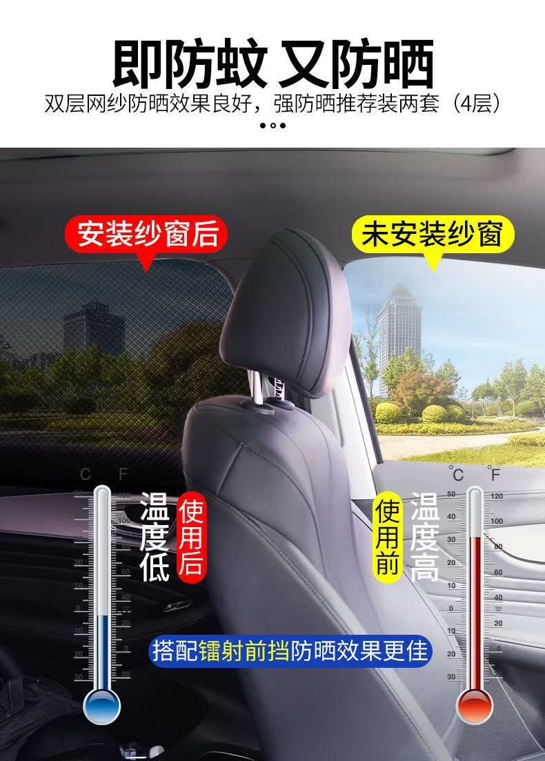 汽车防蚊虫纱窗车窗防蚊网纱网遮阳帘车载专用轿车用玻璃防虫蚊帐 升级加密:【后窗2片】#SUV专用