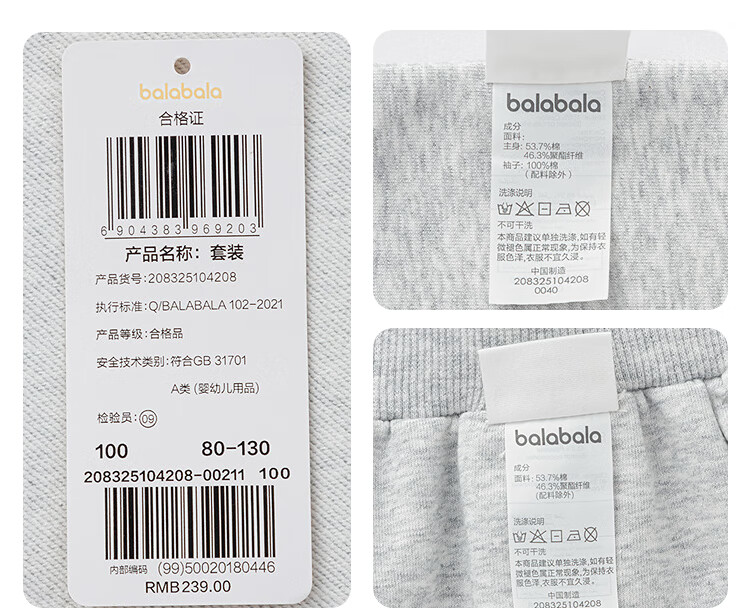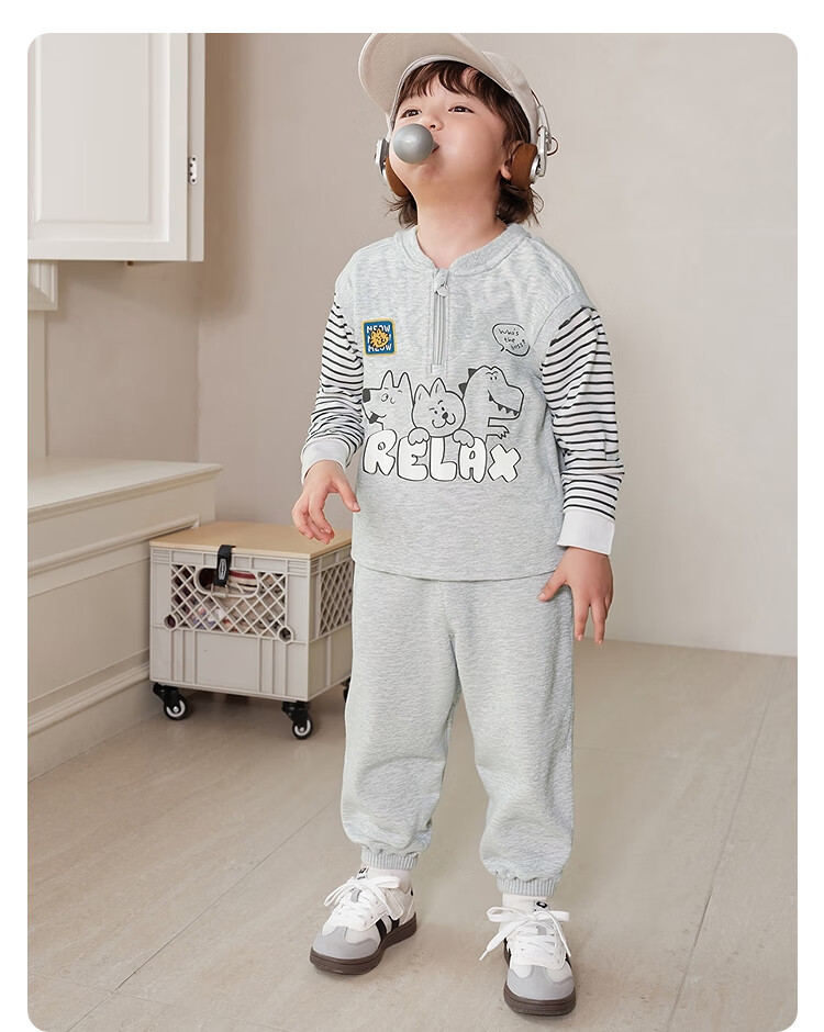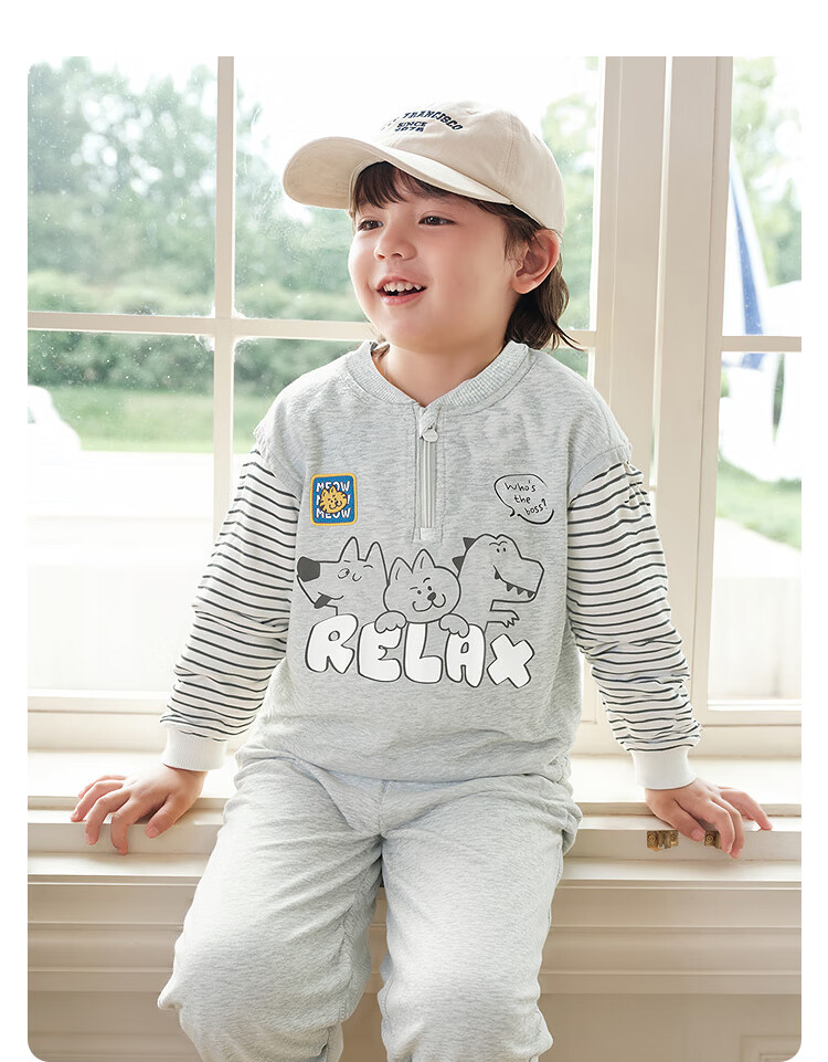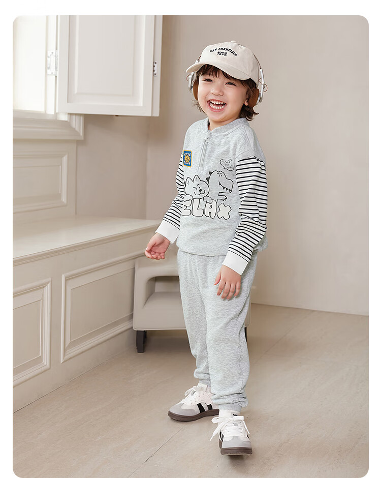 巴拉巴拉童装男女童宝宝长袖套装儿童衣服2025秋装假两件套萌208325104208
