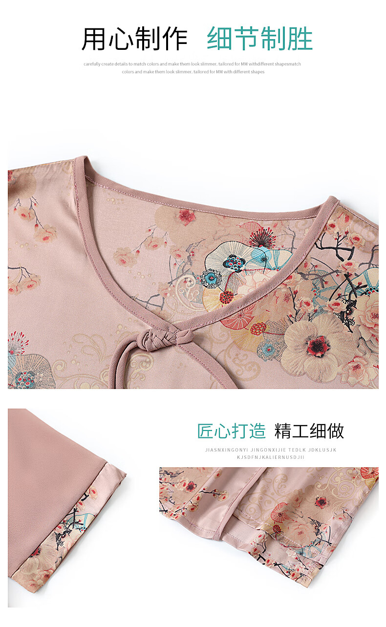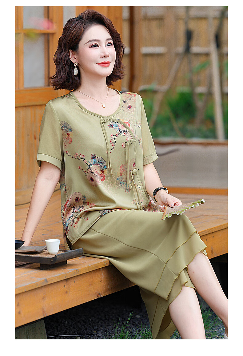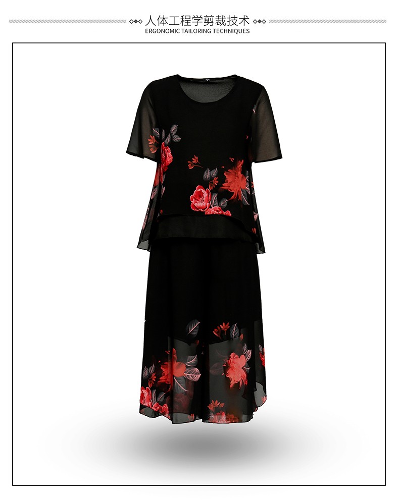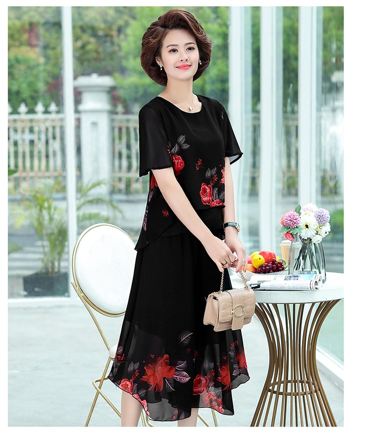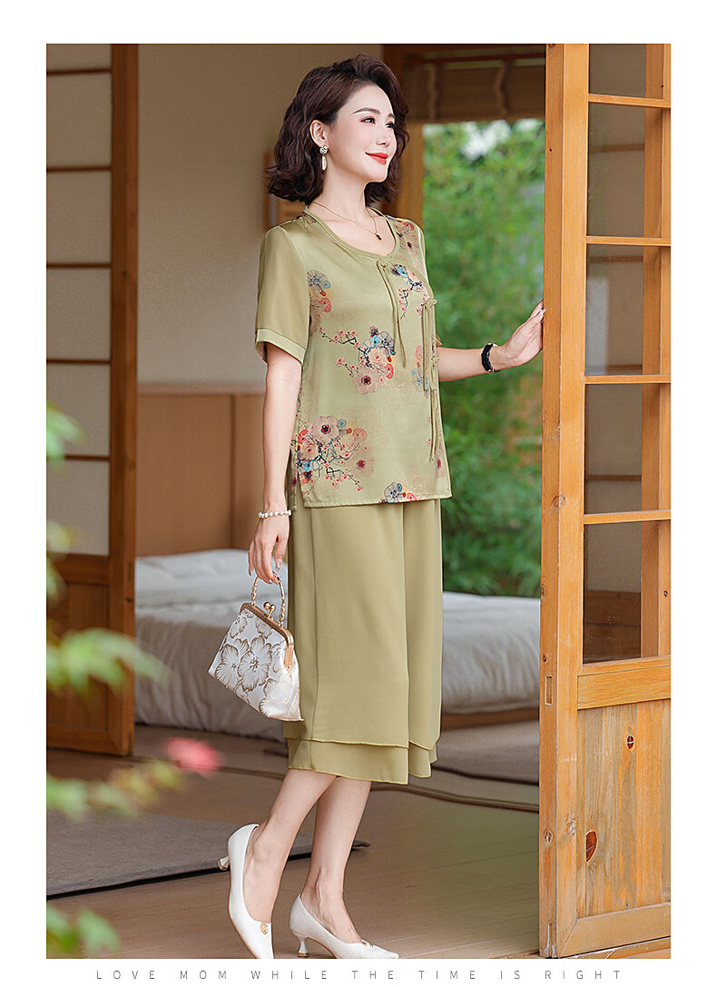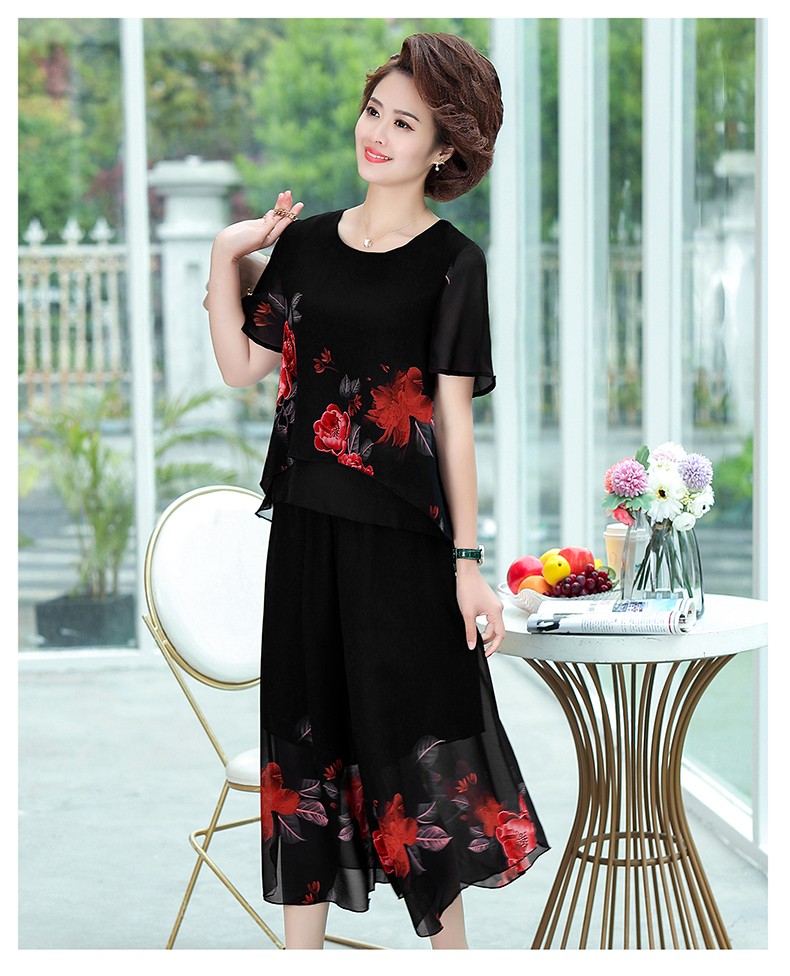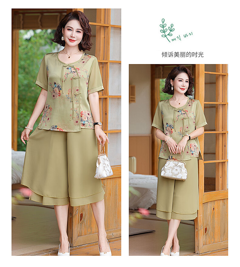 孜颜中老年女装夏装妈妈套装夏季短袖雪纺两件套50到60岁老人母亲衣服 211黄花【套装】 XL 【建议80-100斤】