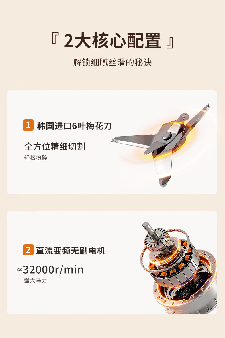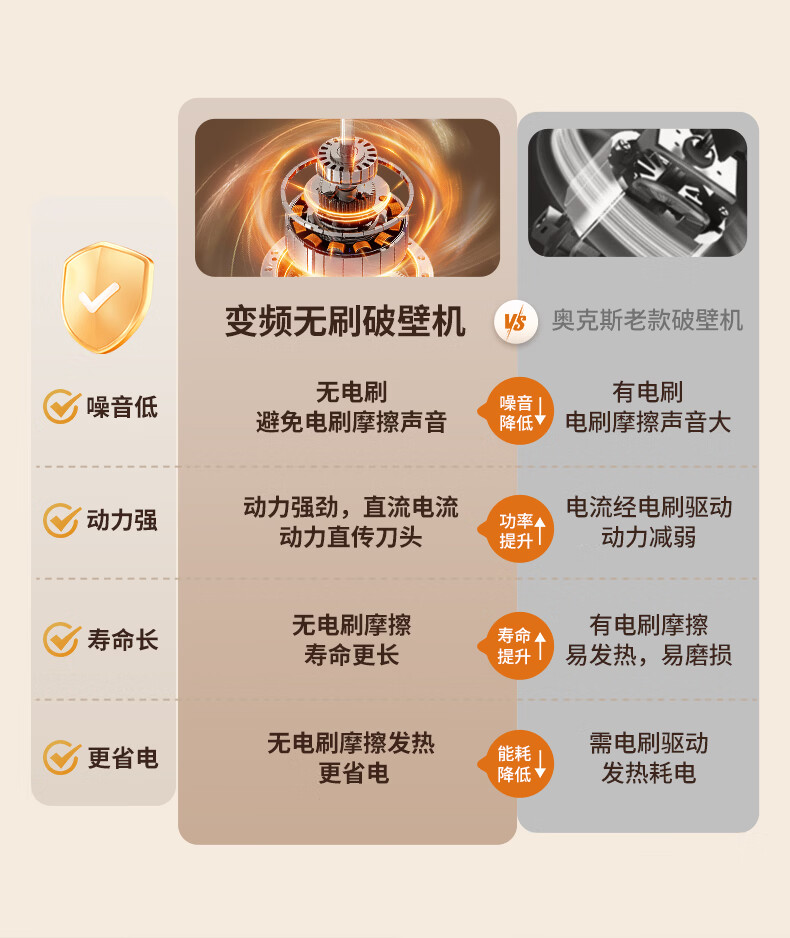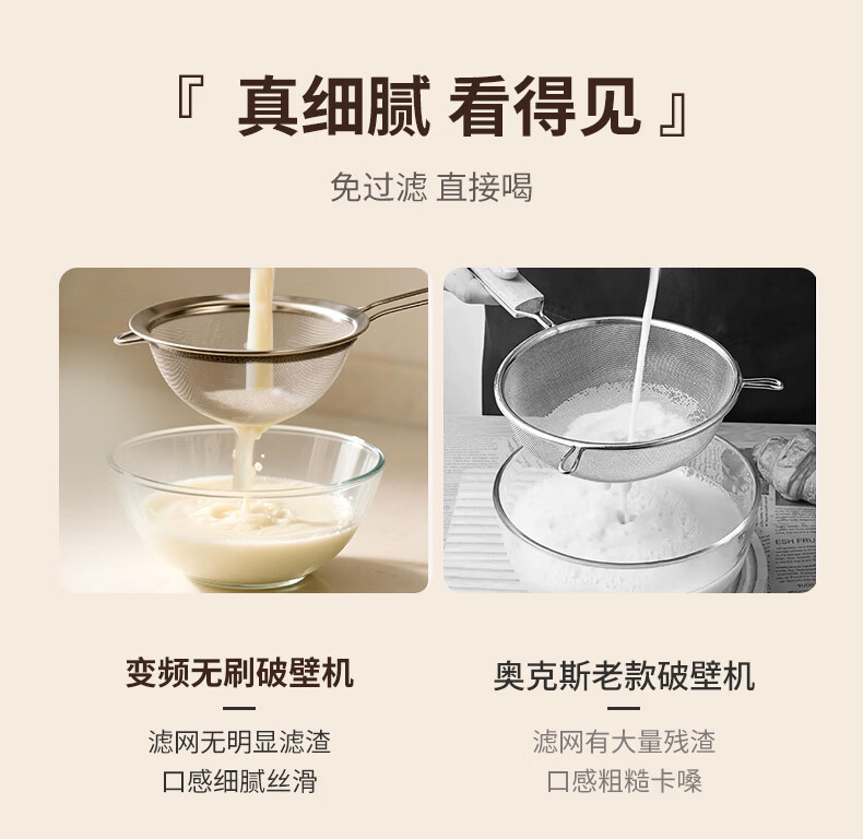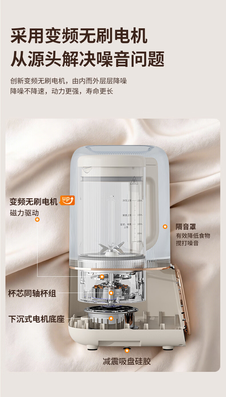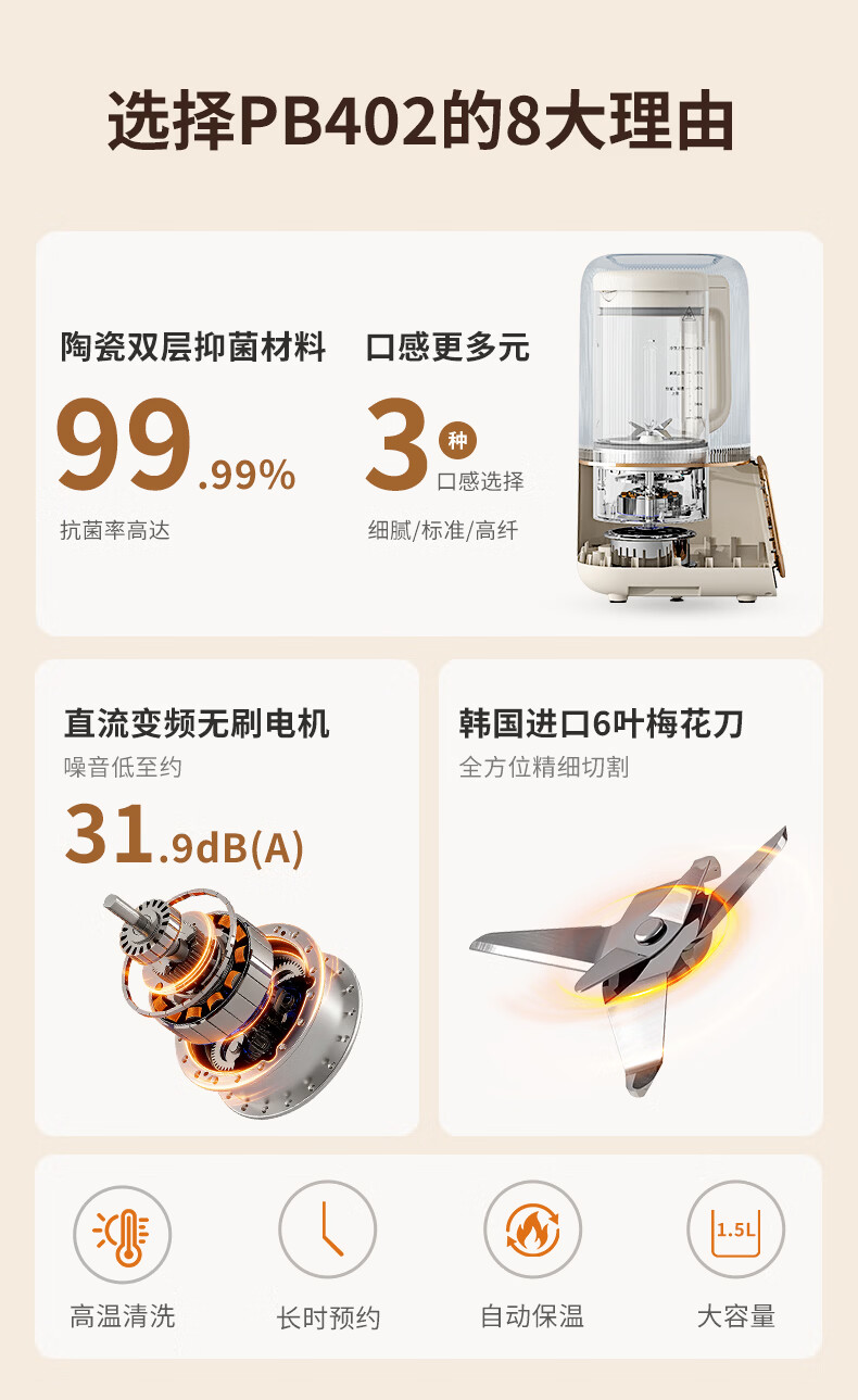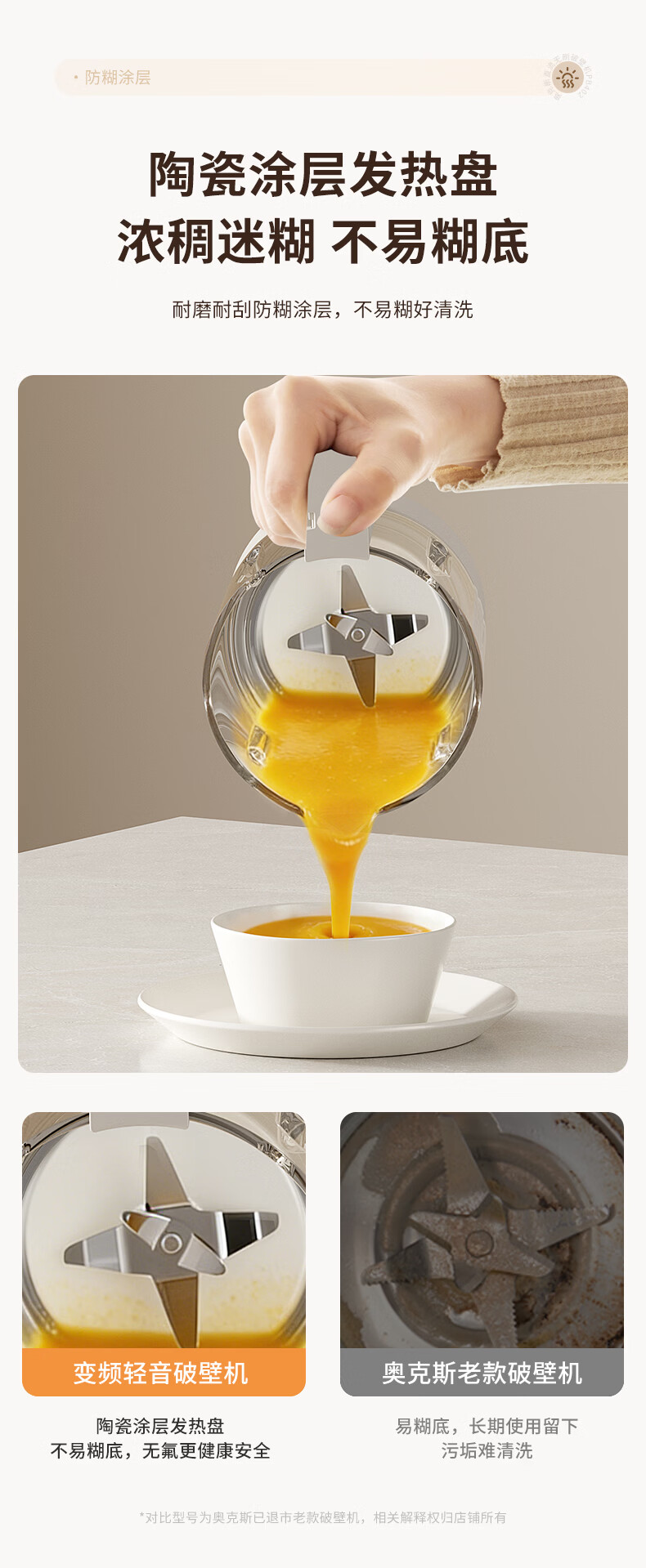 奥克斯(AUX)破壁机家用豆浆机全自动免煮免滤变频轻音无刷电机2-3-4-5人大容量榨汁机加热破壁料理机免手洗 1.5L