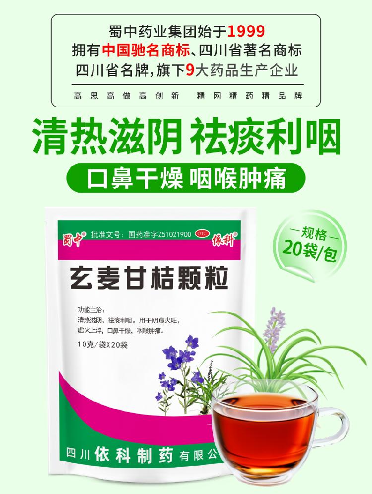 蜀中 玄麦甘桔颗粒 10克*20袋 清热滋阴 祛痰利咽 用于阴虚火旺 虚火上浮 口鼻干燥 咽喉肿痛