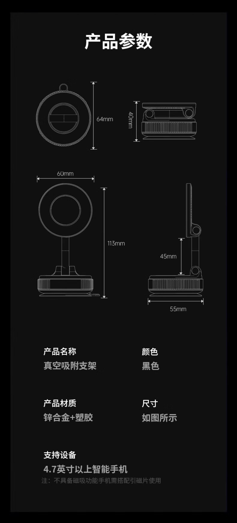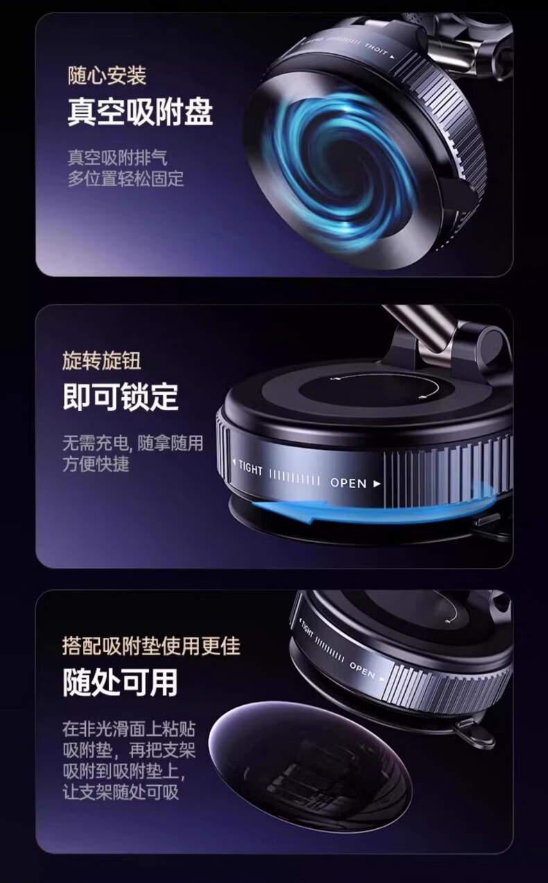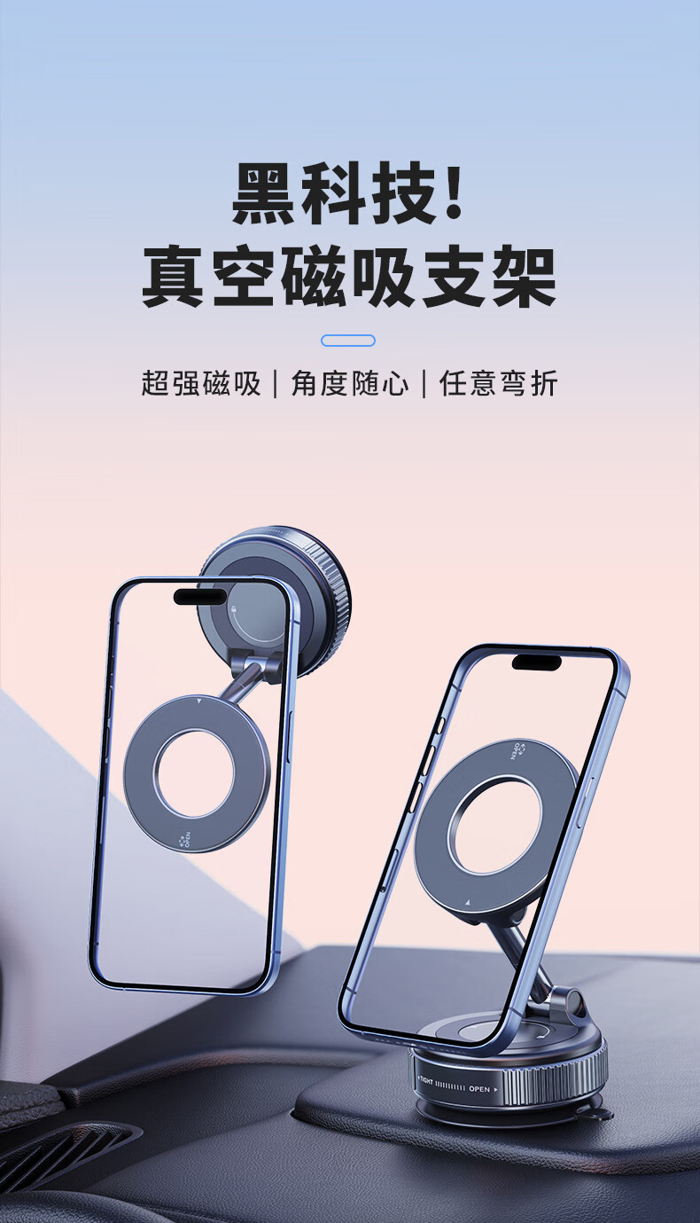 斯泰克真空吸附磁吸车载手机支架2026款吸盘车内多功能汽车固定手机支架
