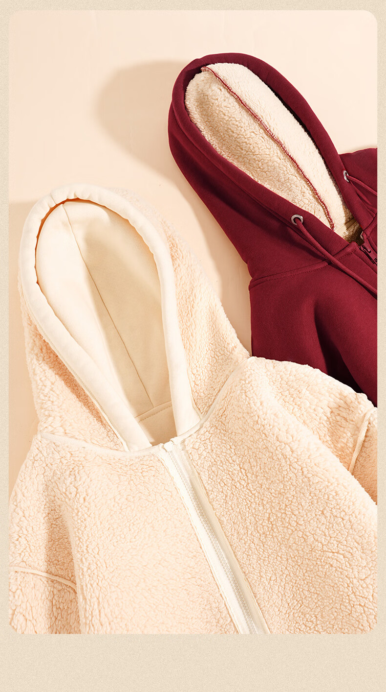 真维斯(Jeanswest)本命年酒红色套装女羊羔绒外套裤子两件装2026马年新年款加绒衣服 卫衣 酒红 万柿小马_K+长裤 酒红 纯色 XL