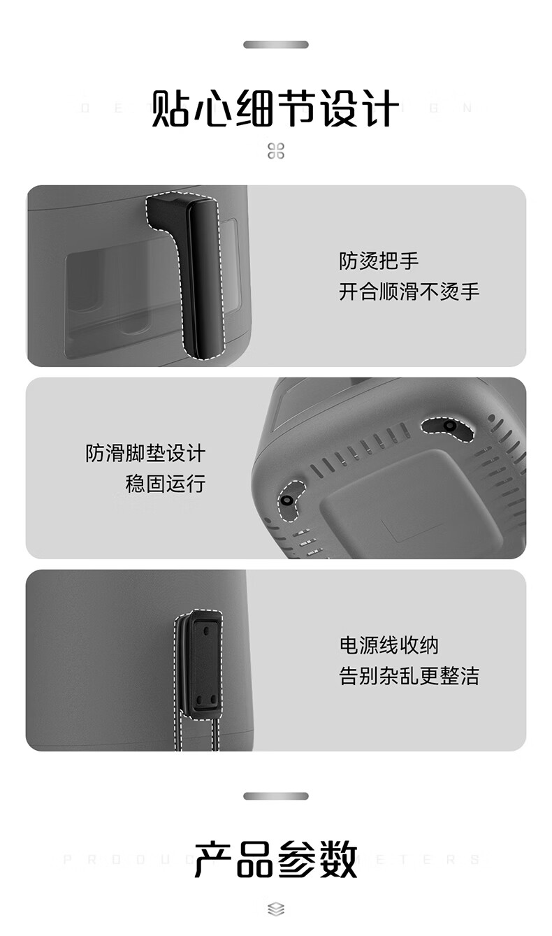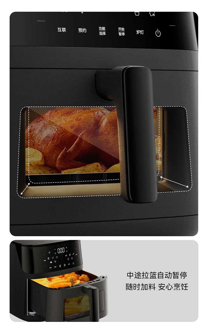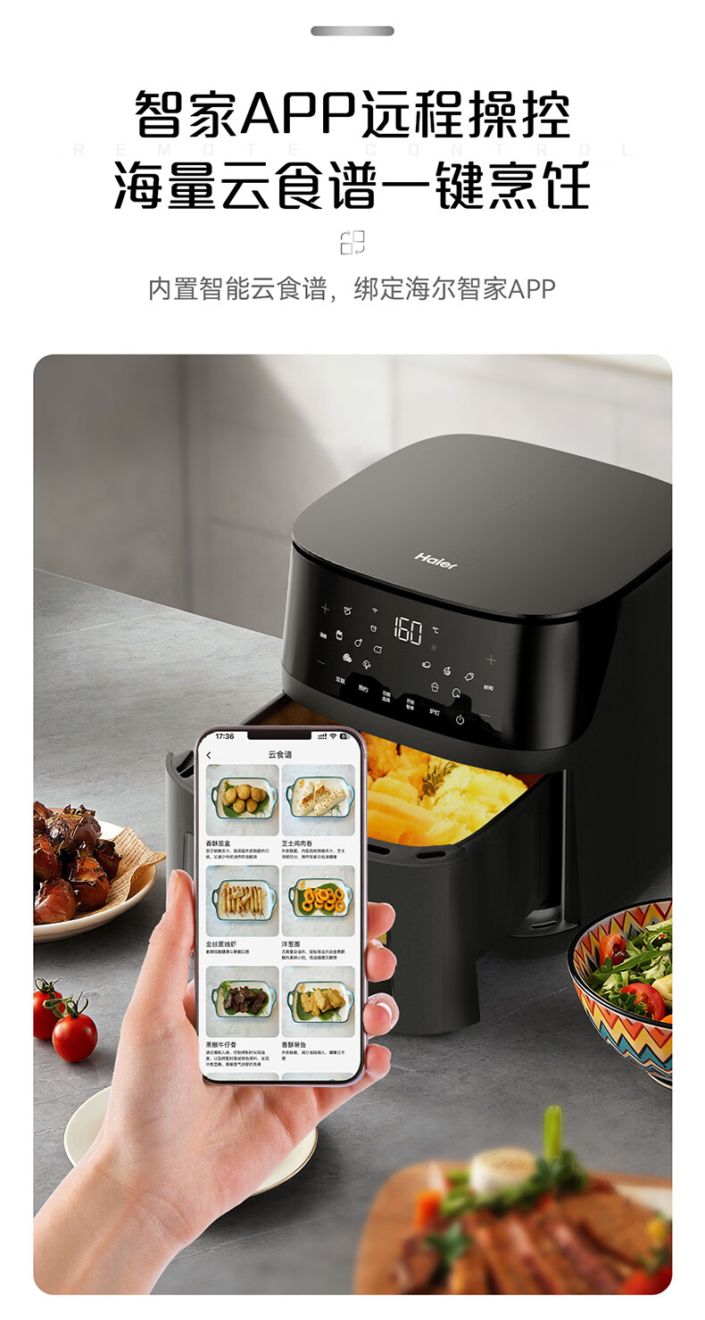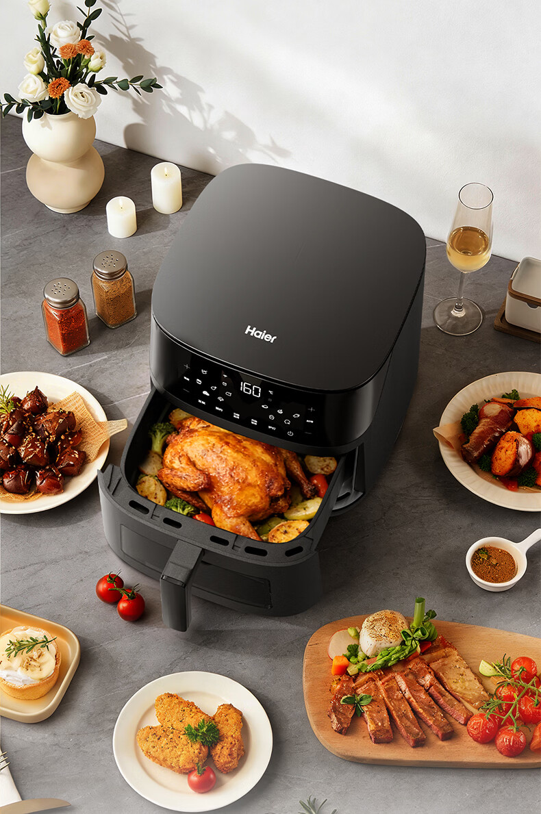 海尔空气炸锅家用多功能 双热源 可视电子触控 大容量全金属内腔 APP远程智控 7L 智家APP操控HSAF-EV703BU1