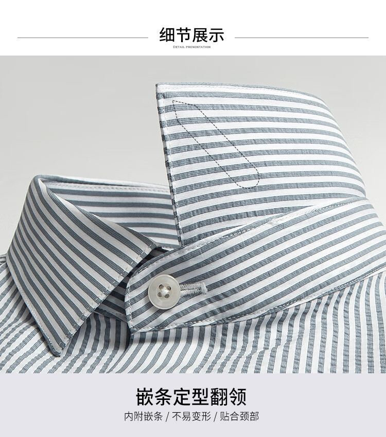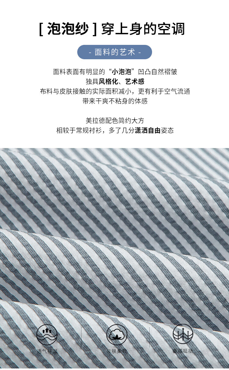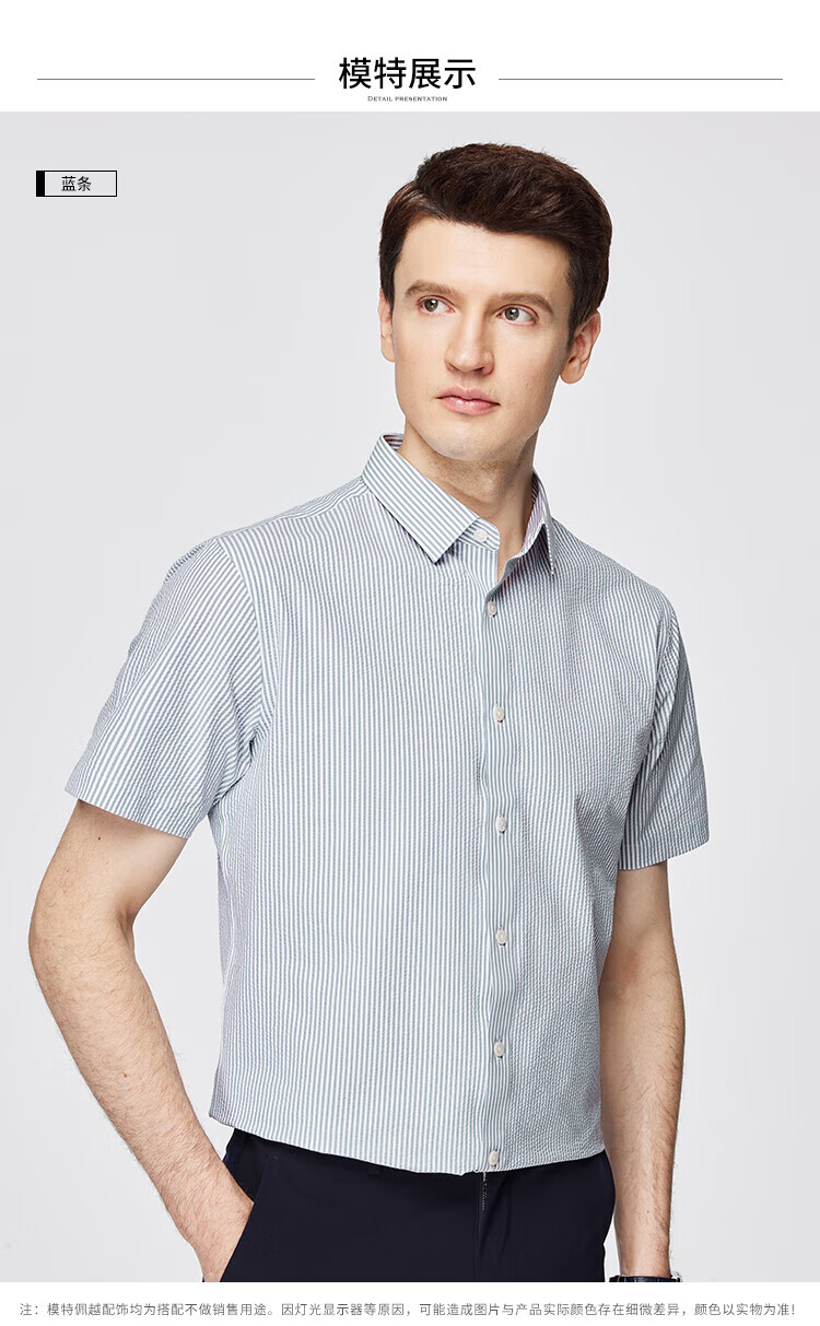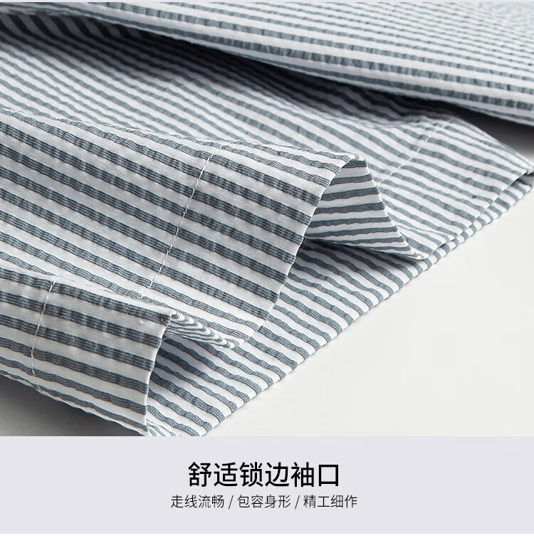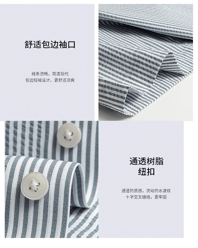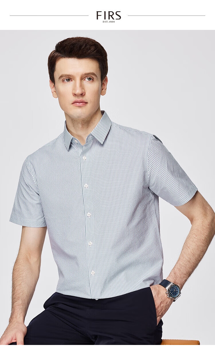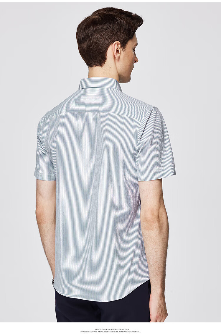 杉杉(FIRS)【防紫外线】短袖衬衫男夏季新款休闲条纹上衣凉感透气衬衣男装 蓝条 39 (170) 170/88A