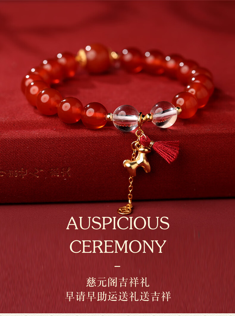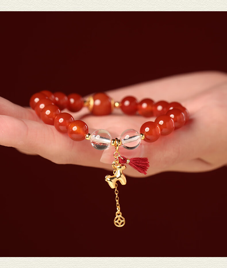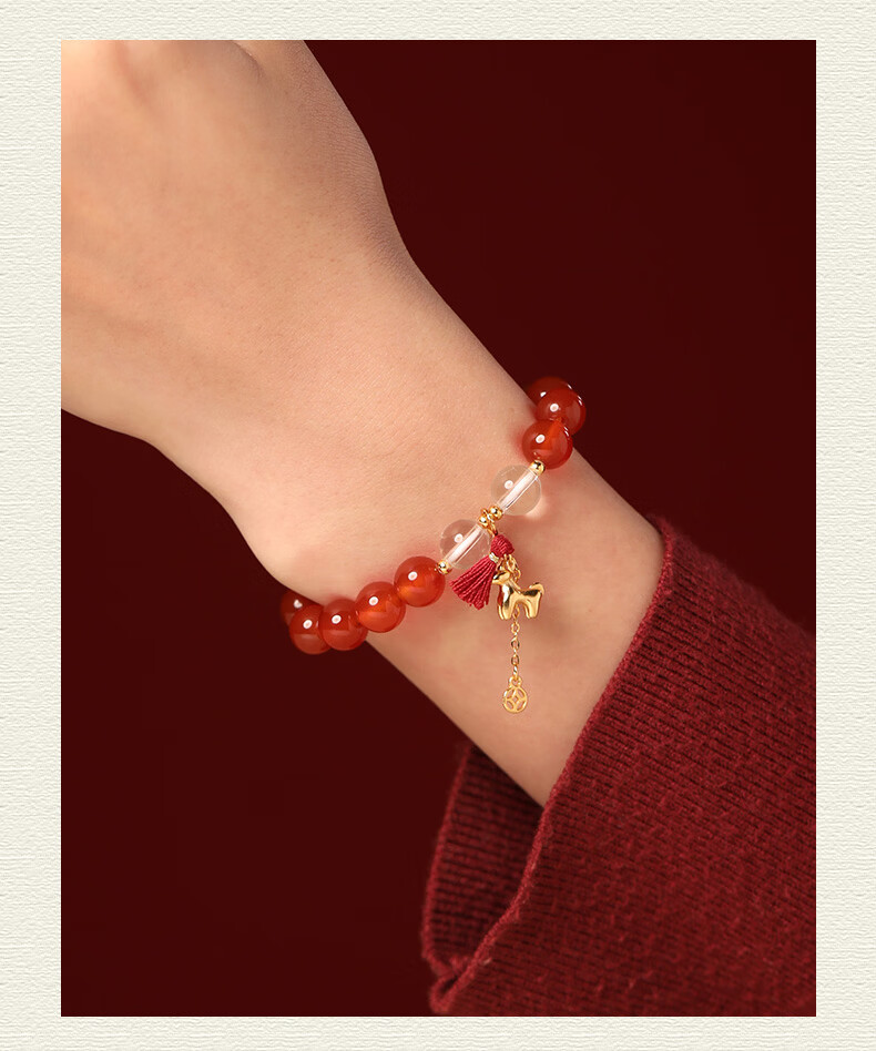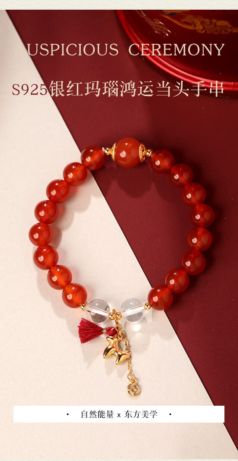慈元阁马年s925银红玛瑙鸿运当头手串本命年男女情侣款水晶手链生日礼物 珠径8mm