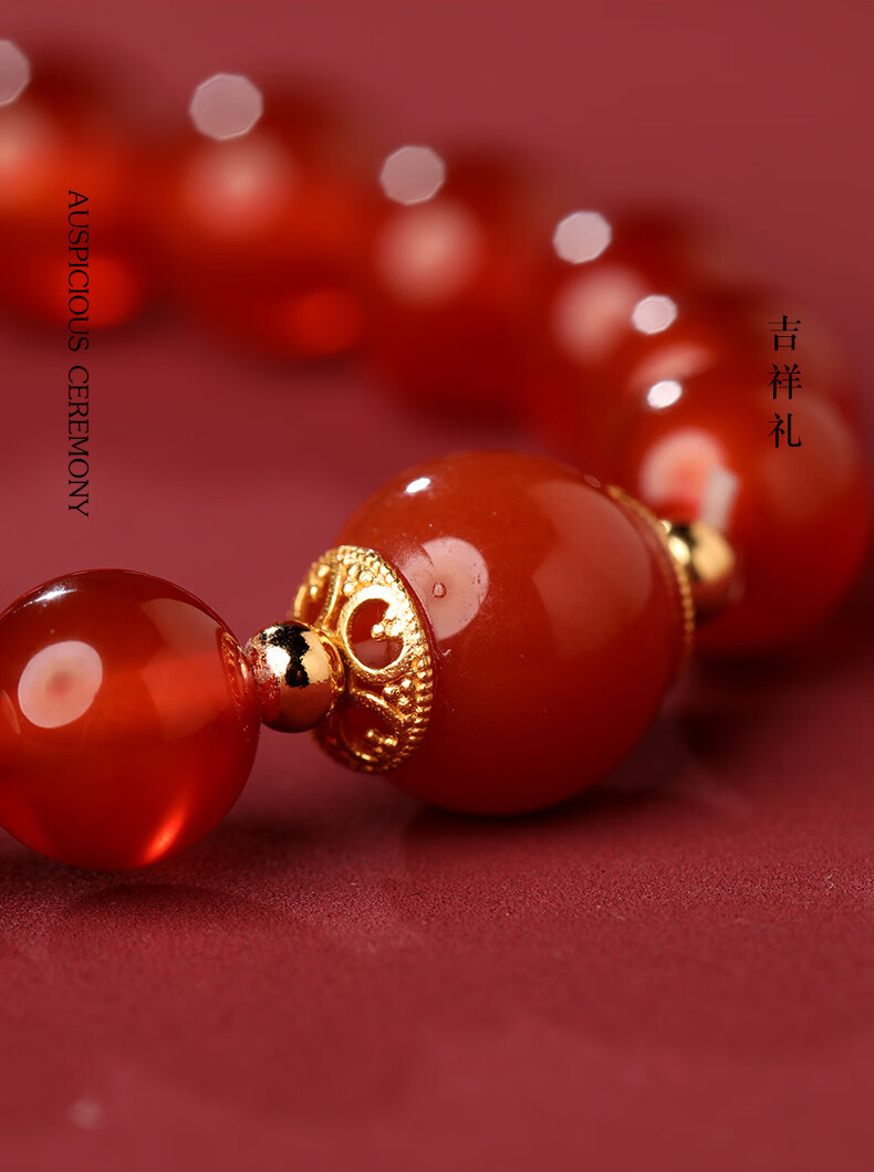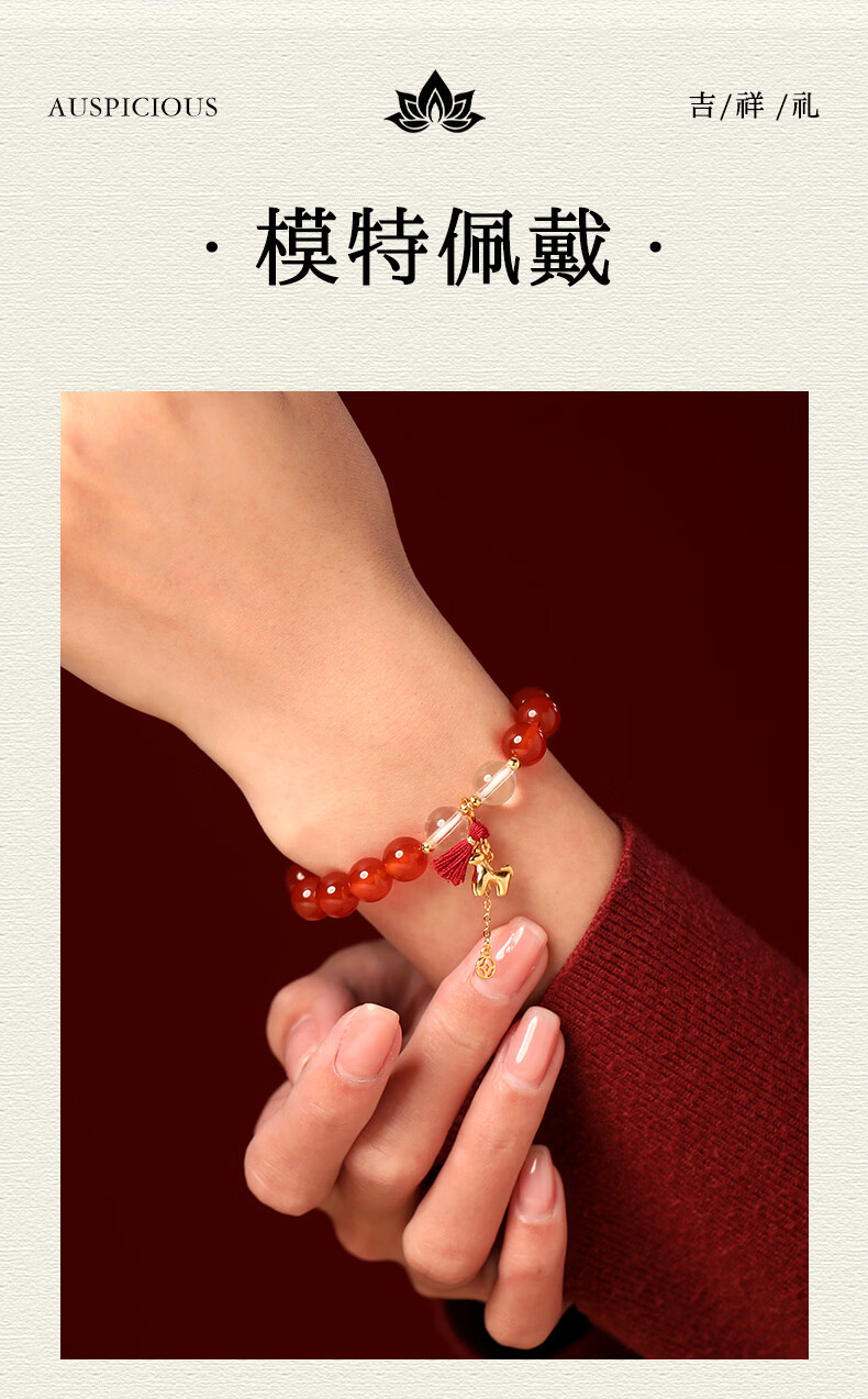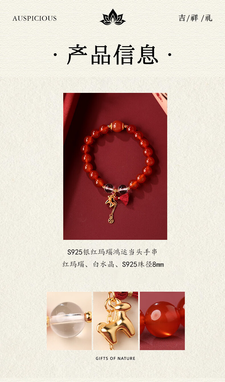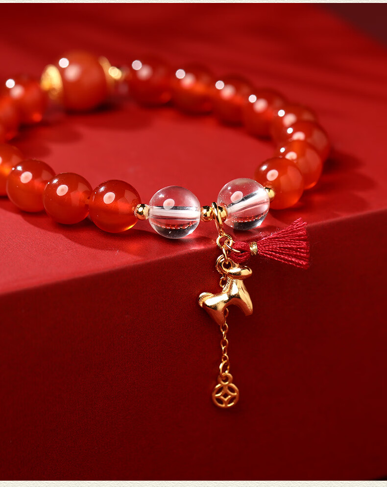 慈元阁马年s925银红玛瑙鸿运当头手串本命年男女情侣款水晶手链生日礼物 珠径8mm