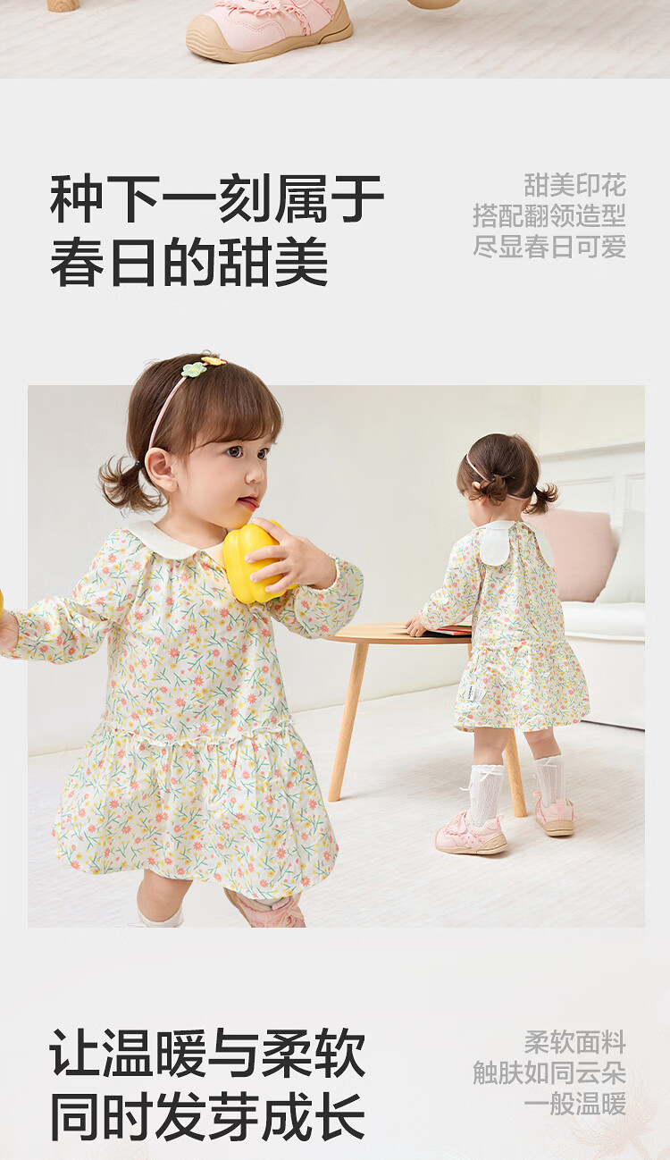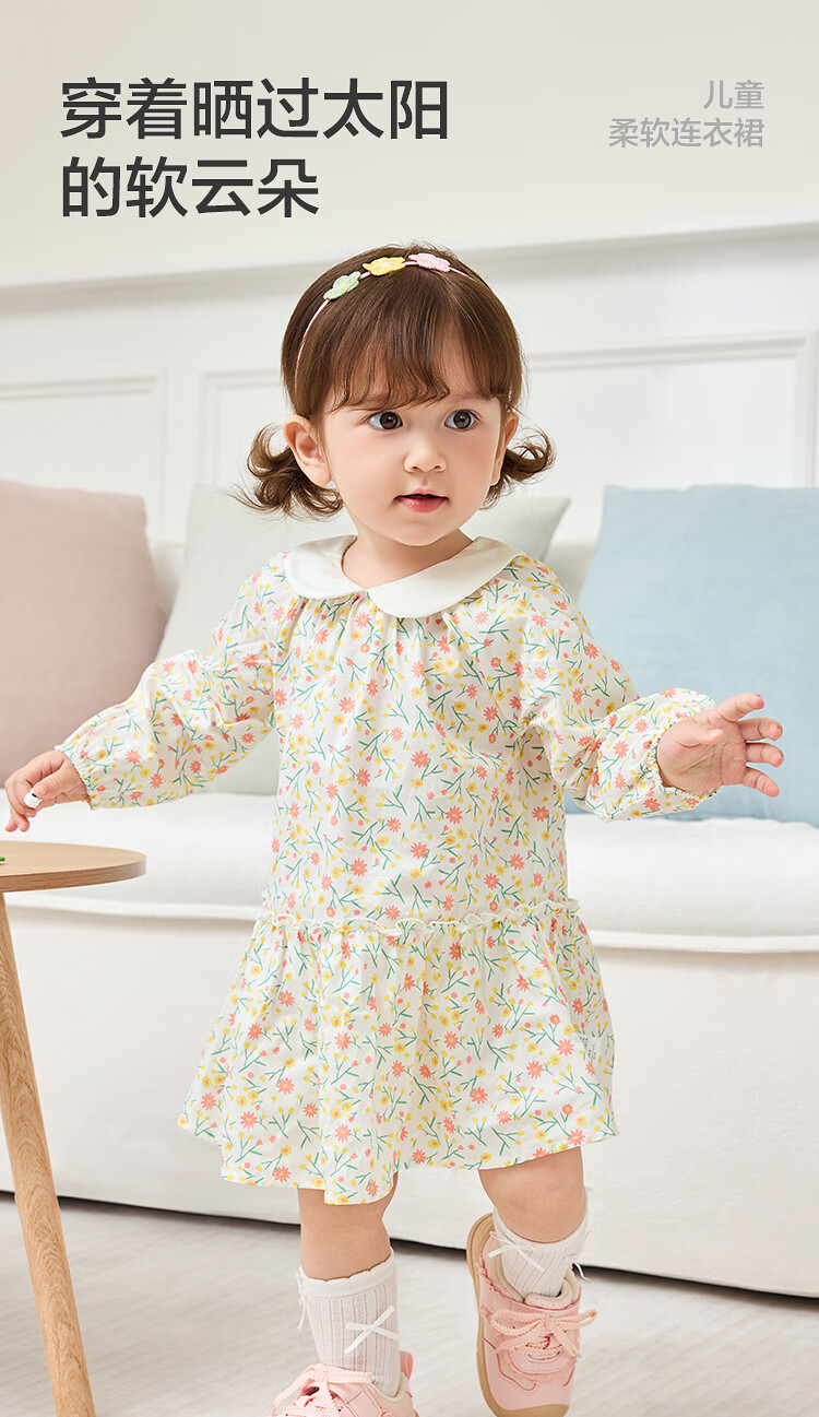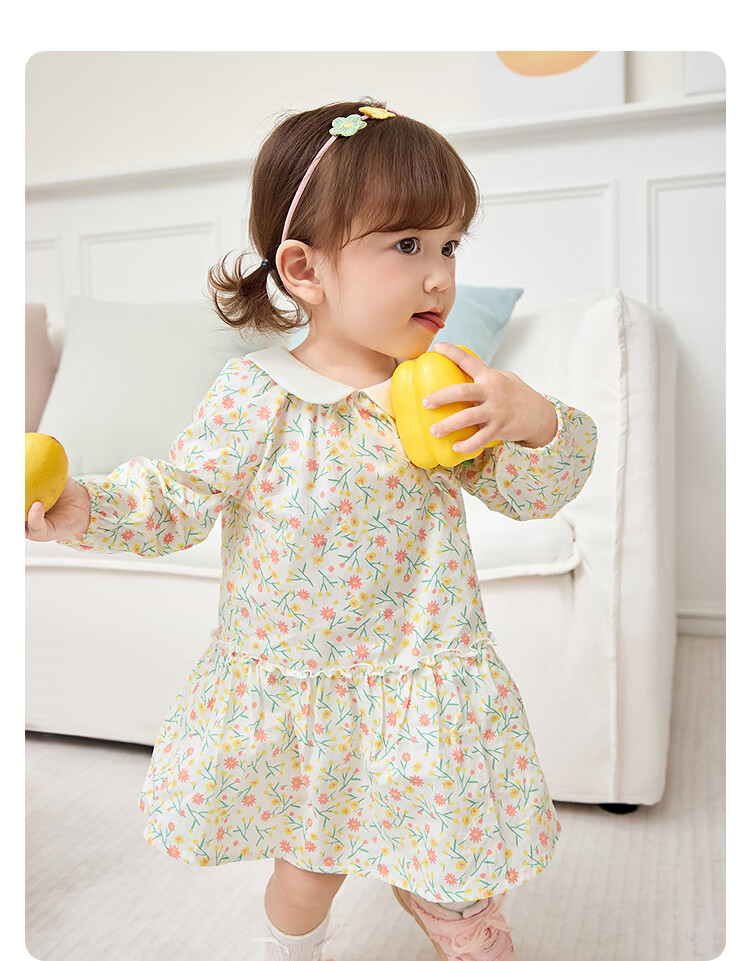 巴拉巴拉【balaOne】巴拉巴拉童装儿童连衣裙女童2026新款春装满印短裙子 橘调碎花00366 90