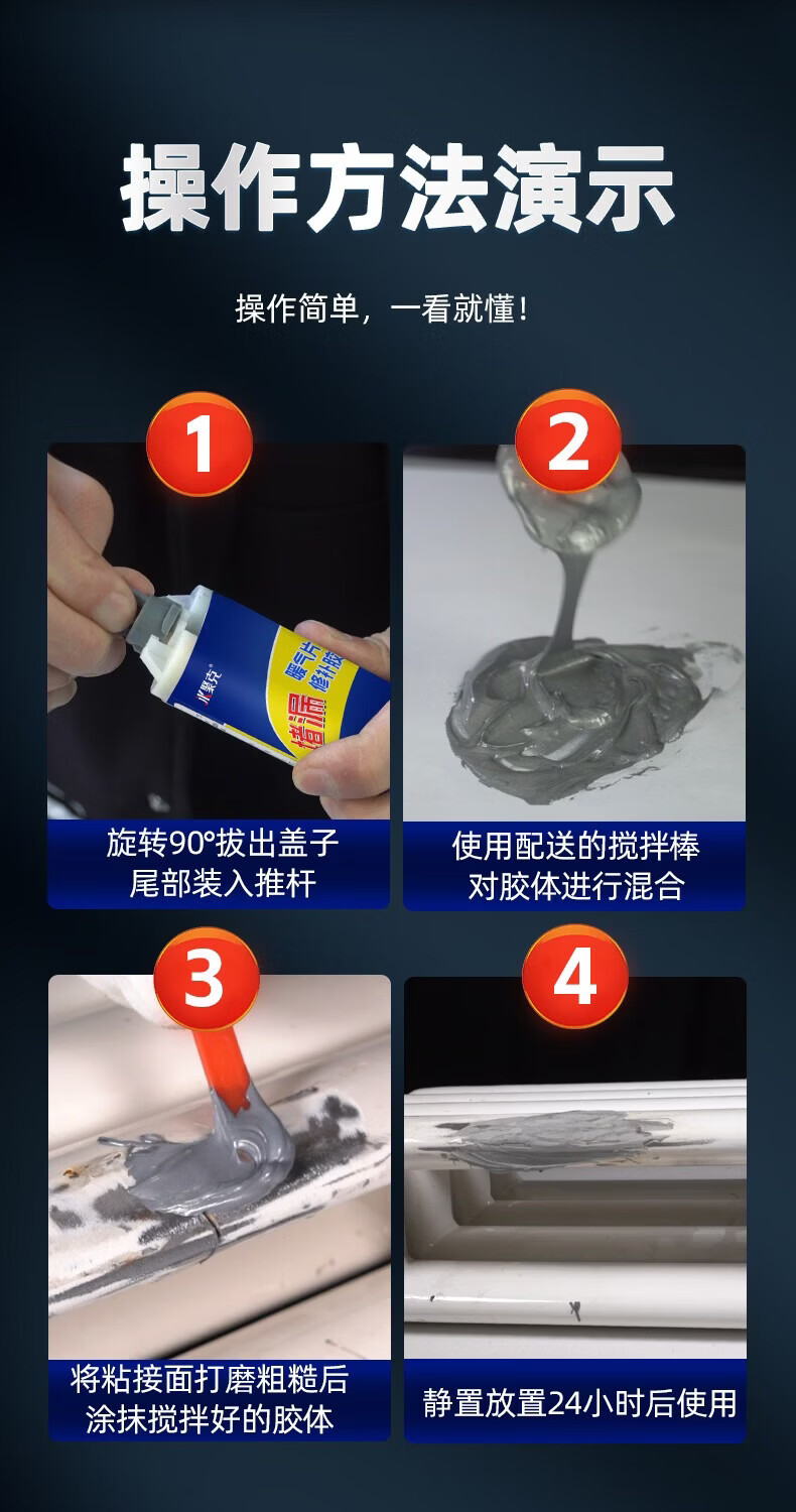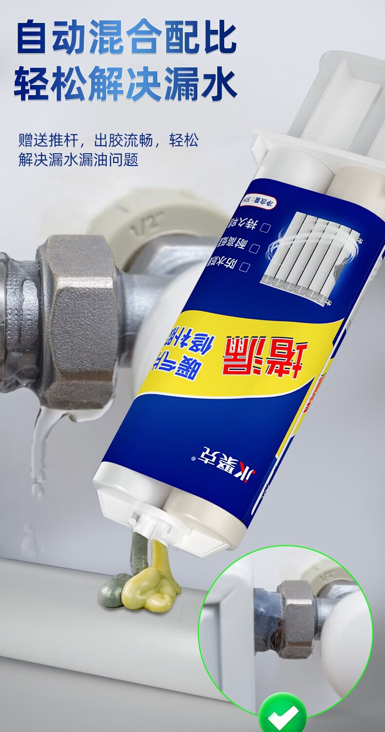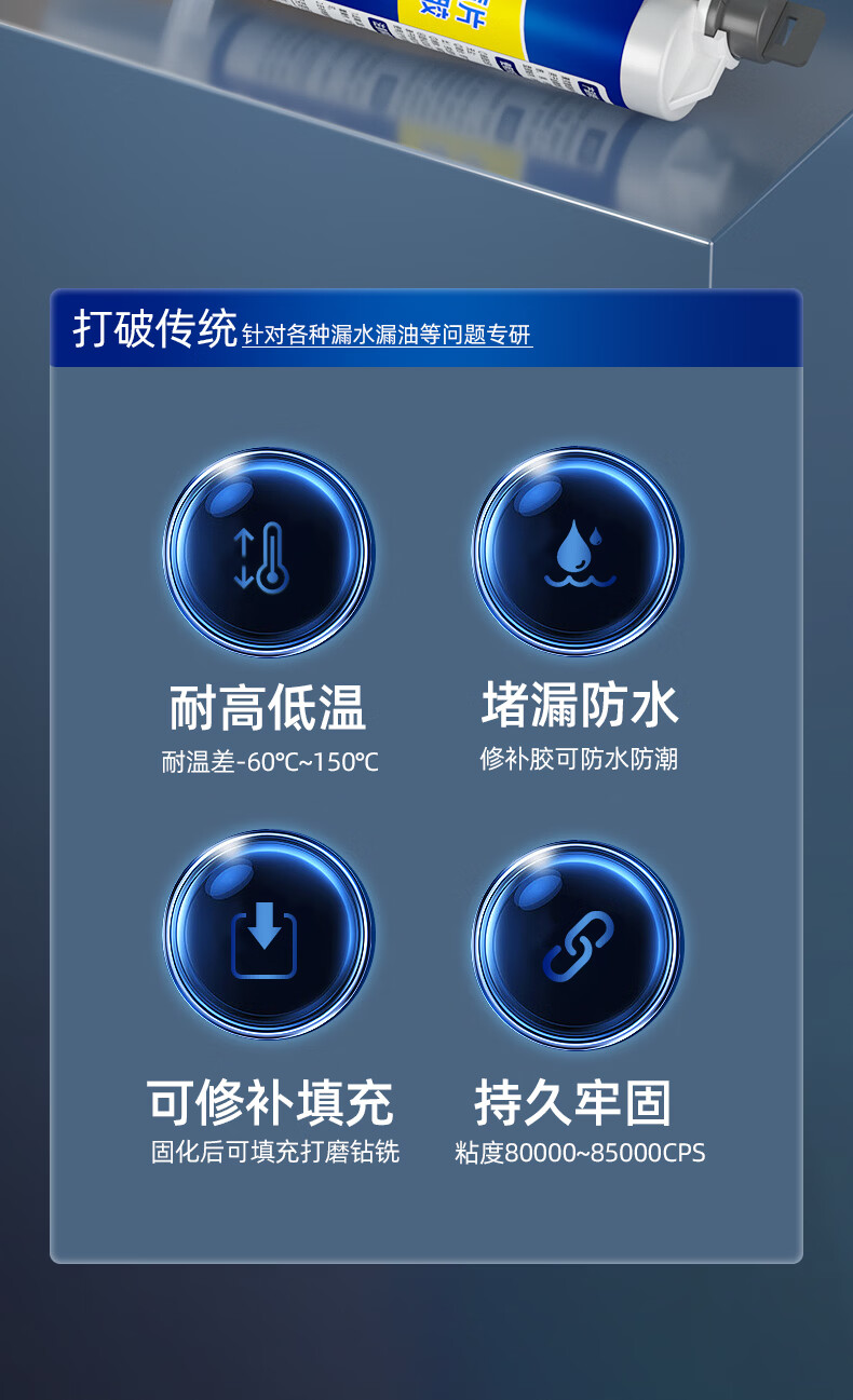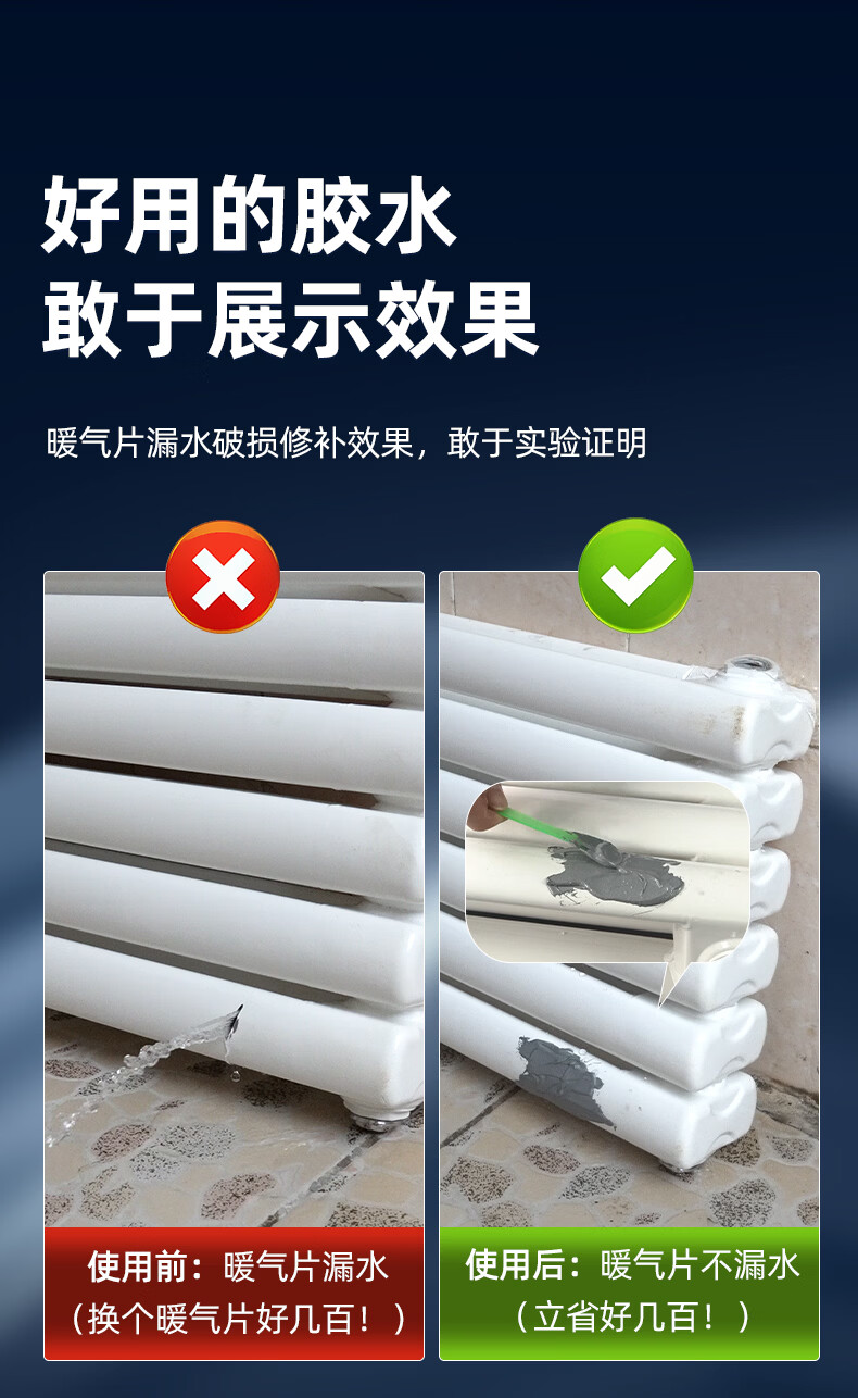 伟吉森暖气片漏水修补专用胶裂缝砂眼补漏胶防水耐高温堵漏铸工胶 灰色