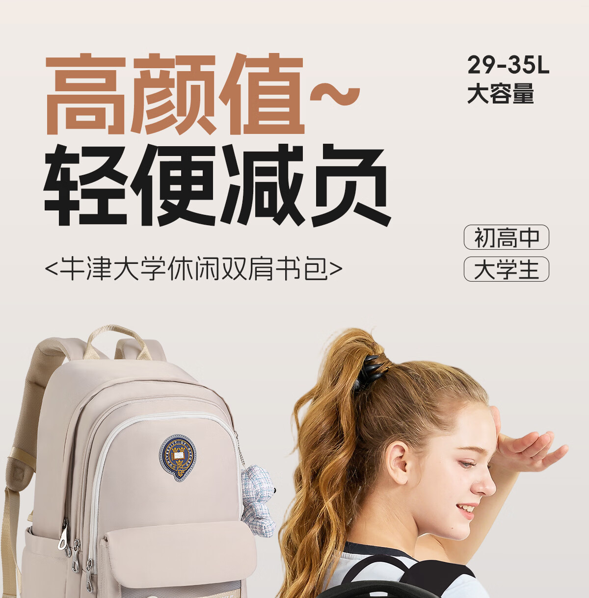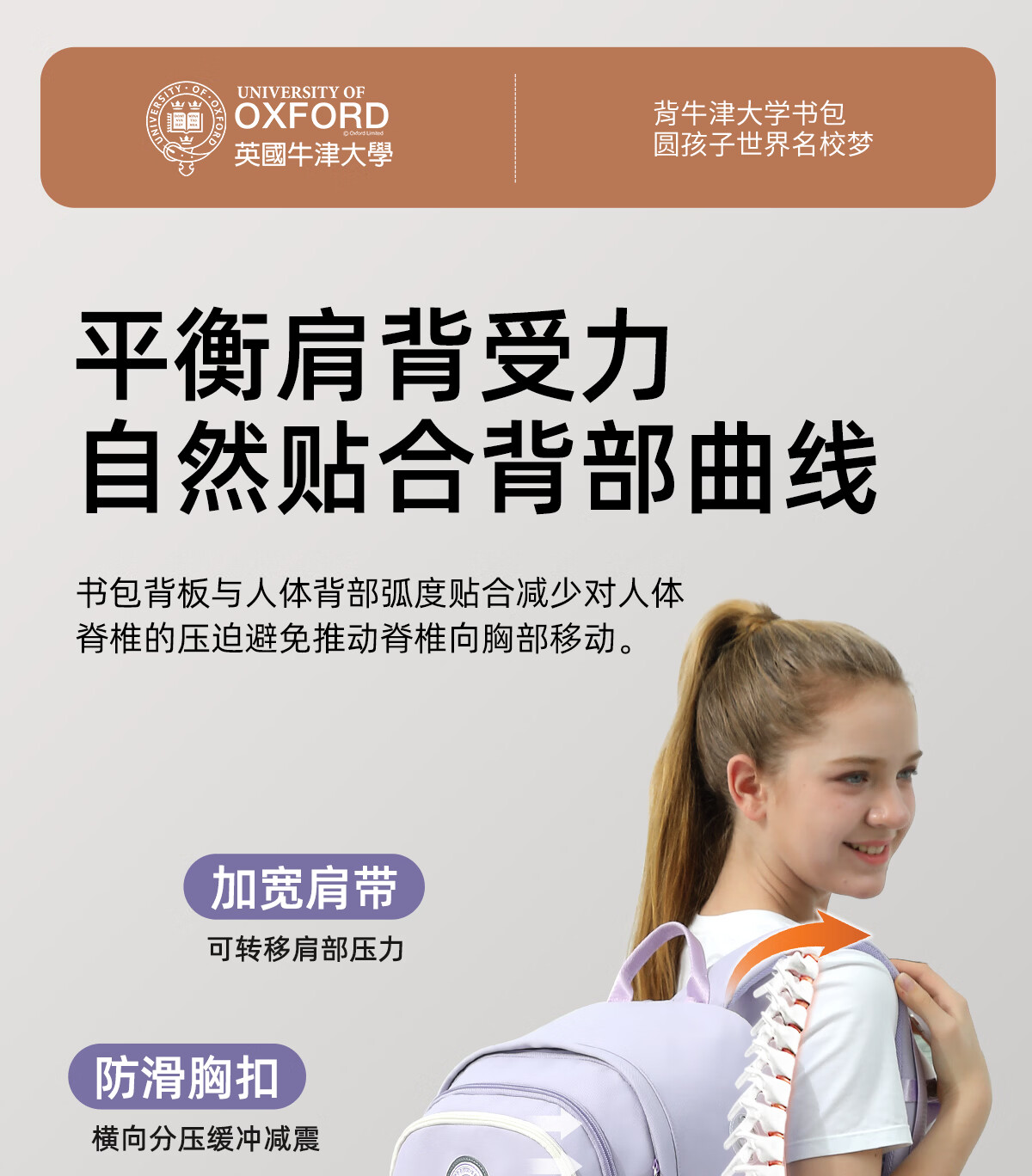 UNIVERSITY OF OXFORD牛津大学初中生书包女生2026年新款轻便减负大容量双肩包高颜值 #虹握彩匣#x1208紫芋#大号150-185
