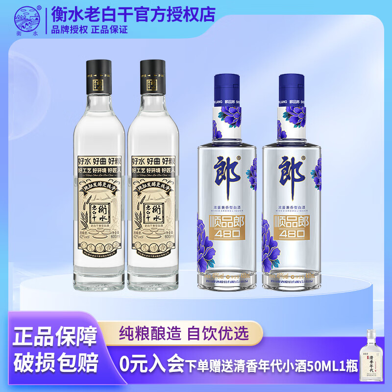 郎酒顺品郎/衡水老白干组合装 纯粮酒 白酒 45度 480mL 2瓶 (45度金顺2瓶+42衡水老白干2瓶)
