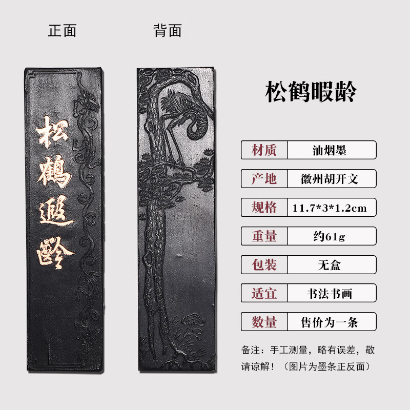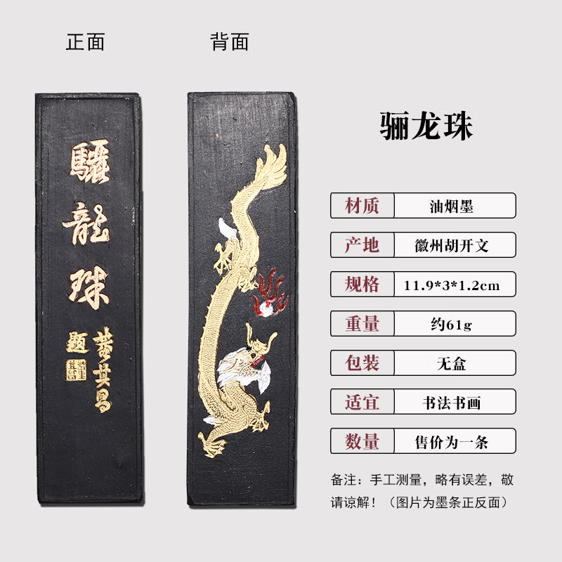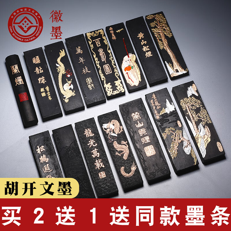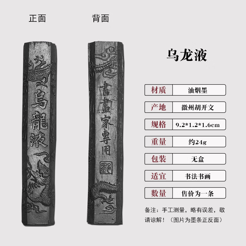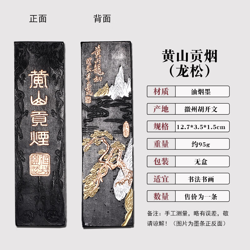 维新非遗徽墨国画书法专用墨条古法胡开文松烟桐油烟墨块老墨条墨锭文房四宝手工研墨砚台研磨一两二两 贡烟龙松-油烟墨(约95g)