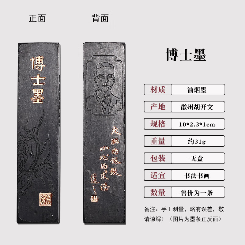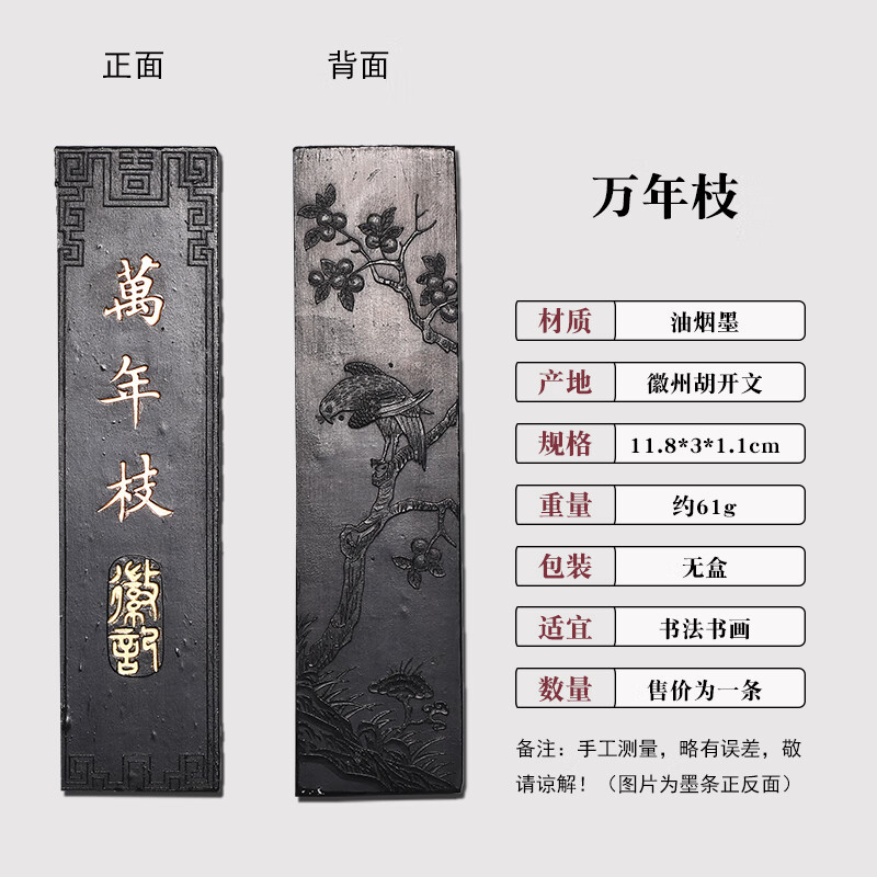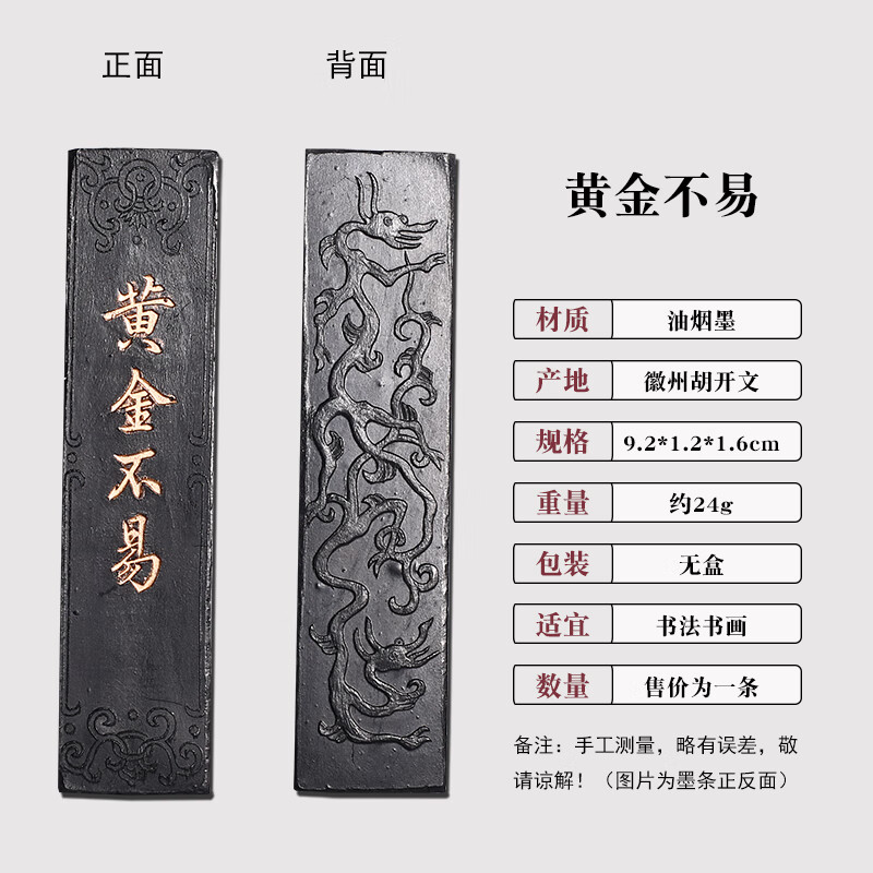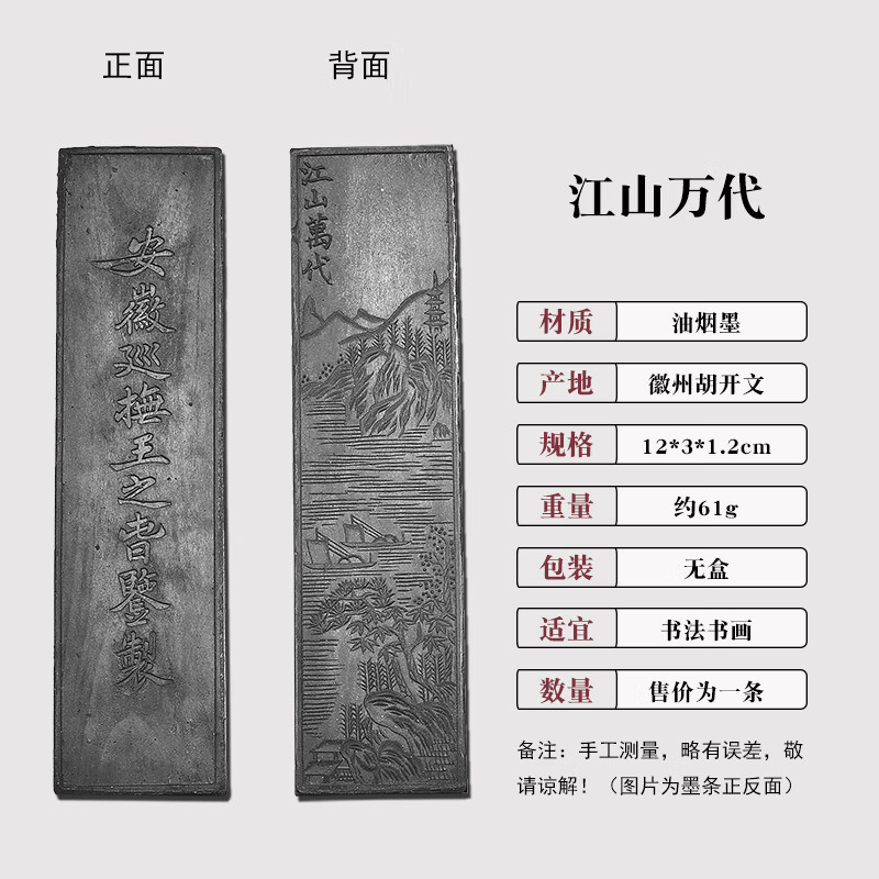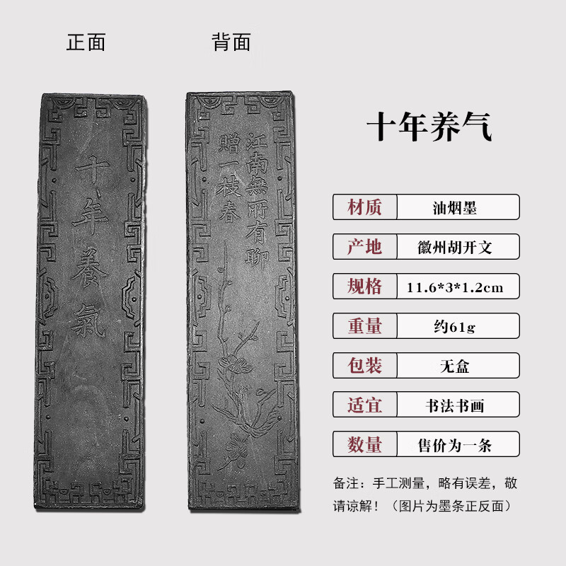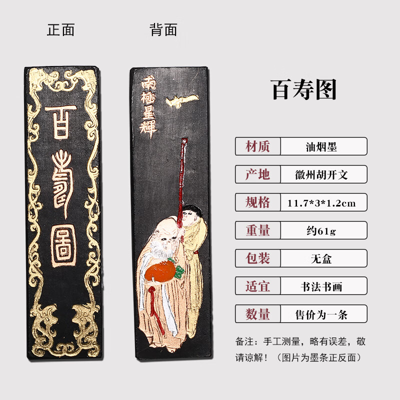 维新非遗徽墨国画书法专用墨条古法胡开文松烟桐油烟墨块老墨条墨锭文房四宝手工研墨砚台研磨一两二两 贡烟龙松-油烟墨(约95g)