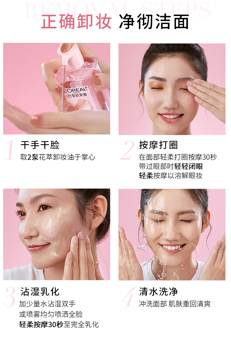 欧莱雅(LOREAL)花萃净透卸妆油 250ML套装卸妆清洁洁面卸妆水