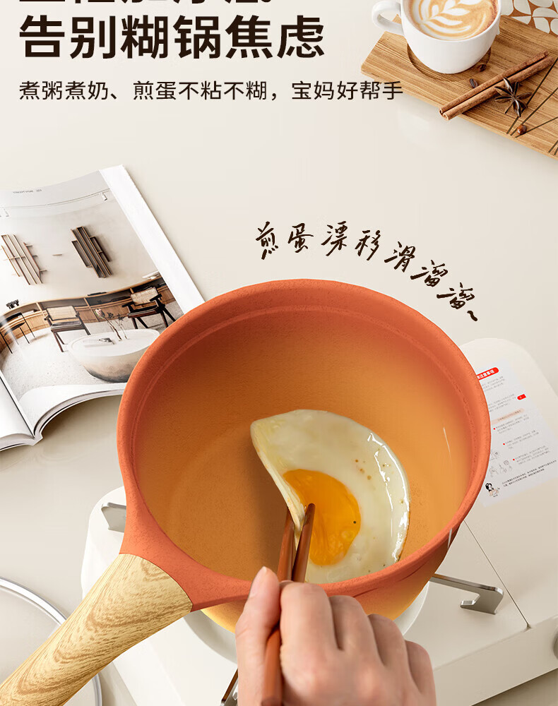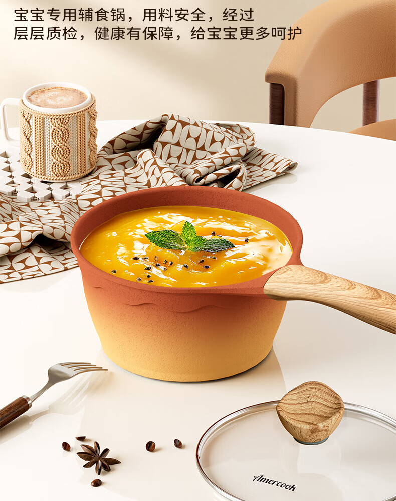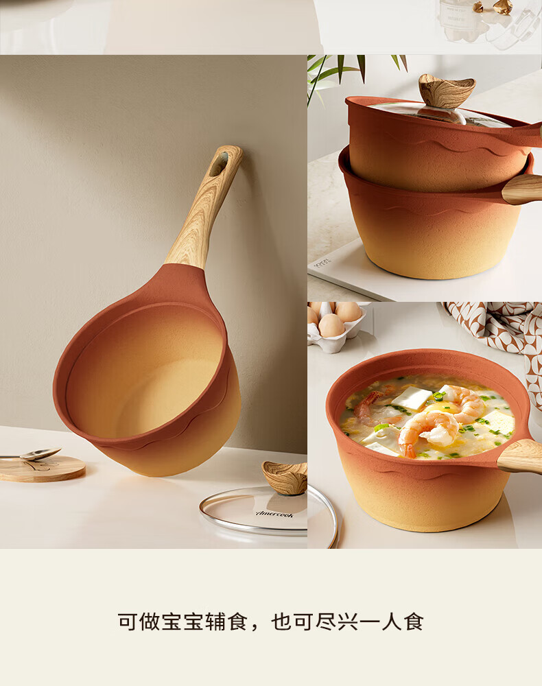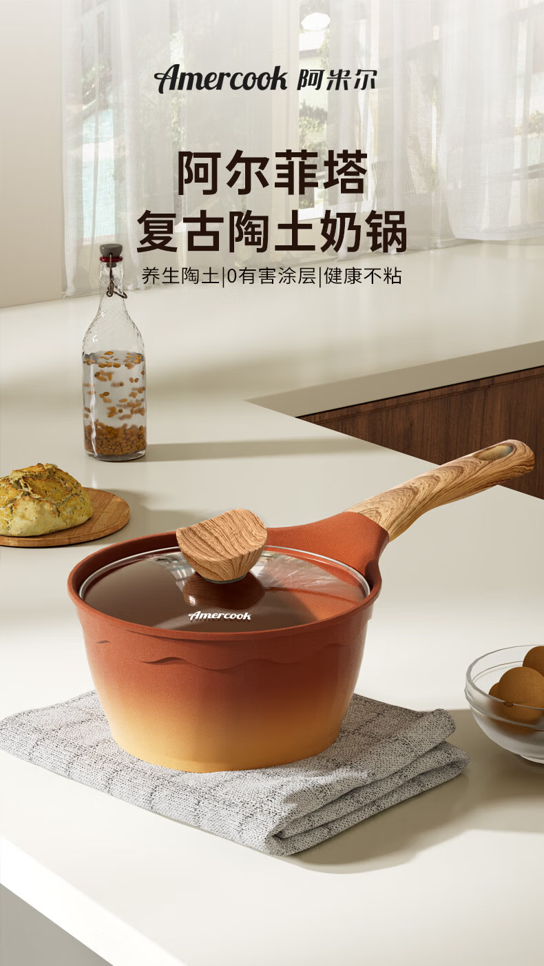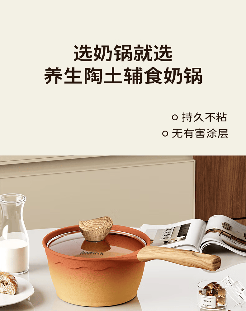 Amercook陶土奶锅宝宝辅食锅不粘锅泡面煮粥锅阿米尔锅家用电磁炉燃气灶用
