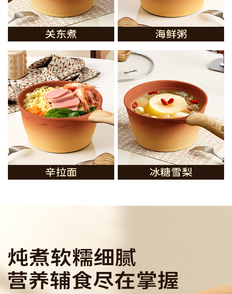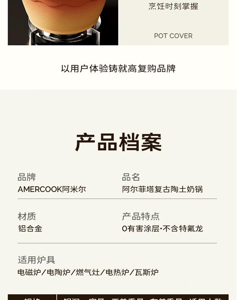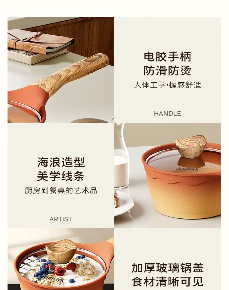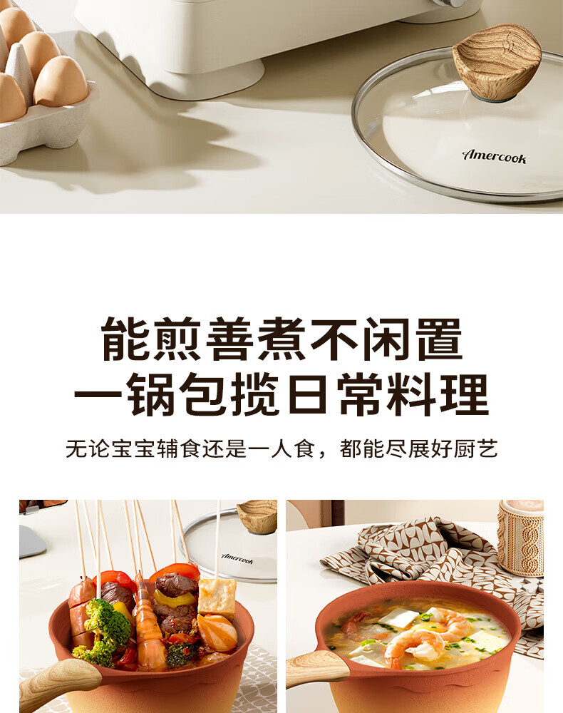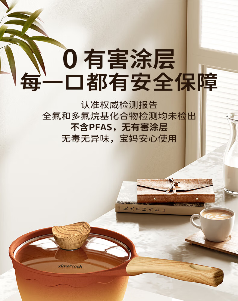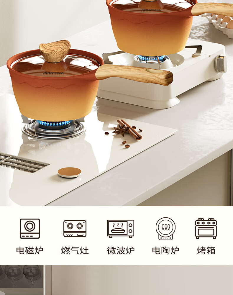 Amercook陶土奶锅宝宝辅食锅不粘锅泡面煮粥锅阿米尔锅家用电磁炉燃气灶用
