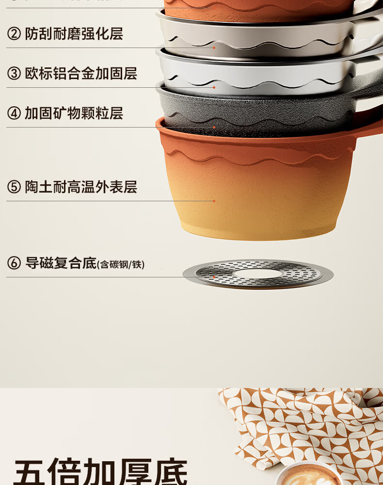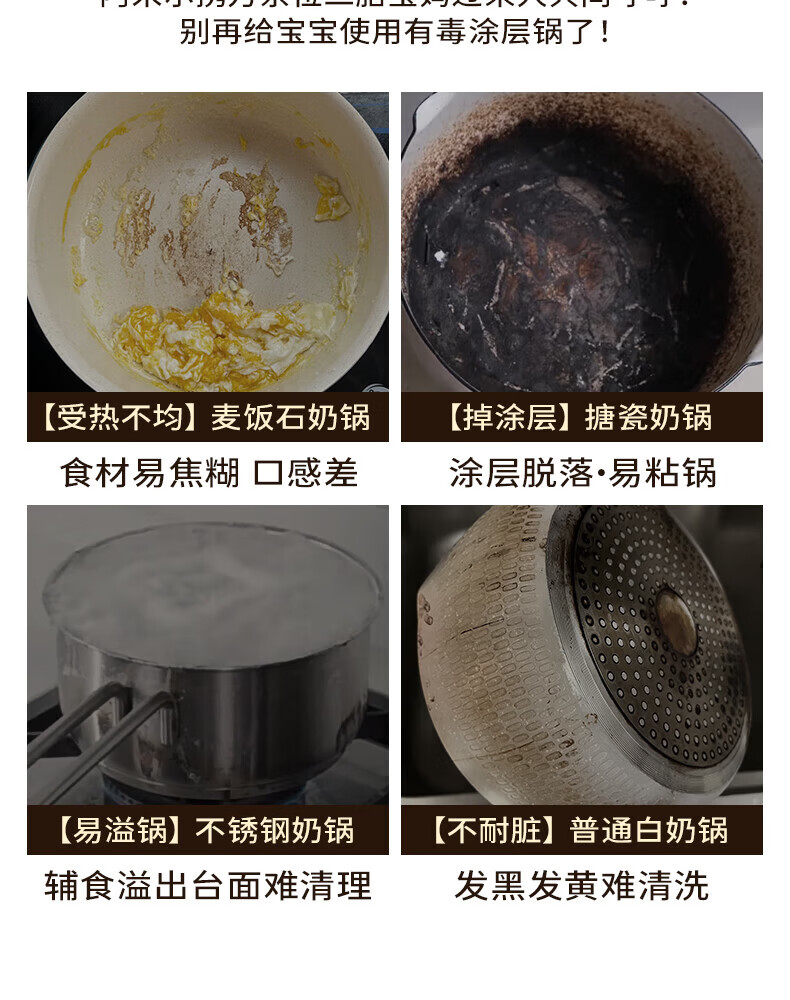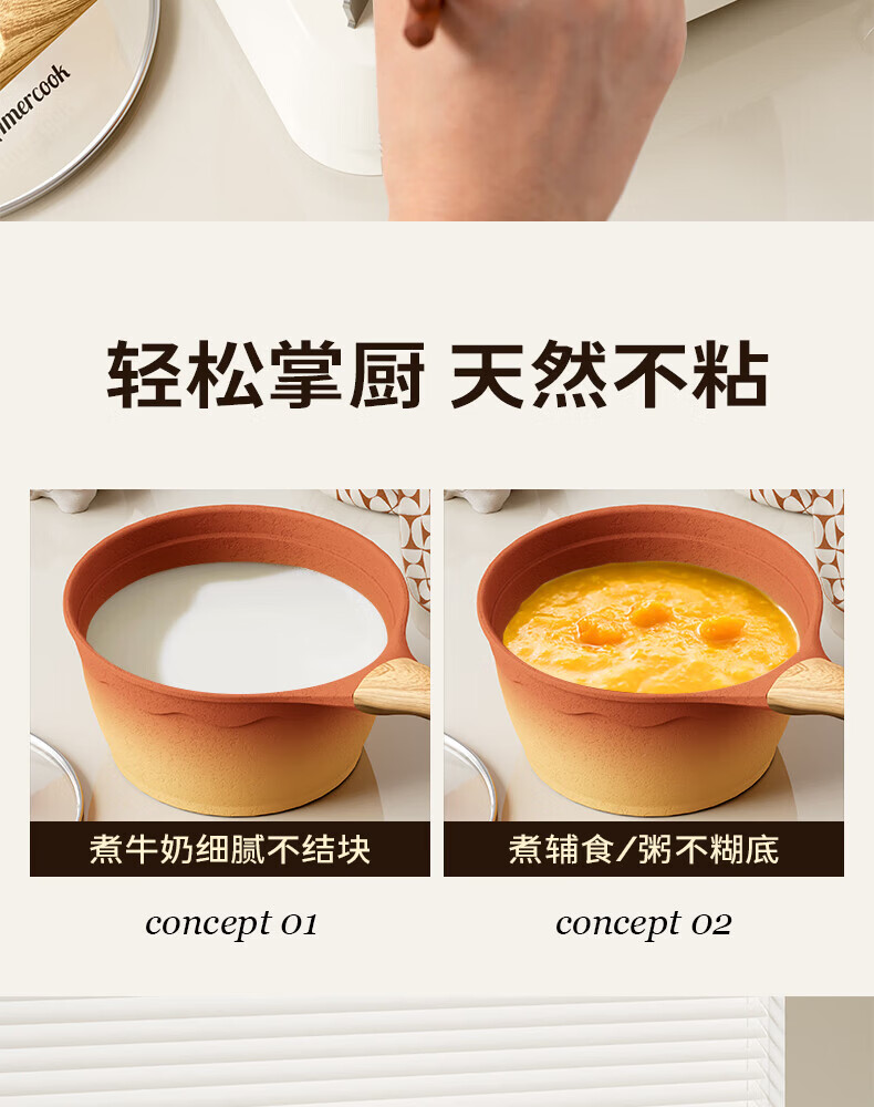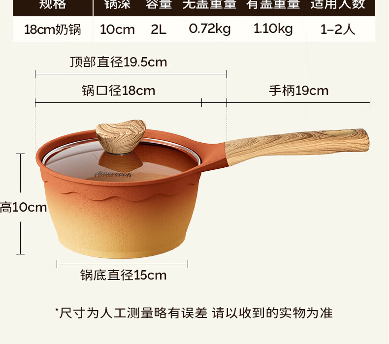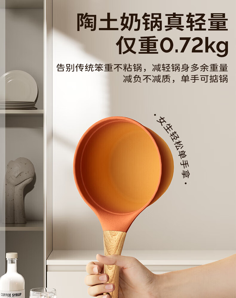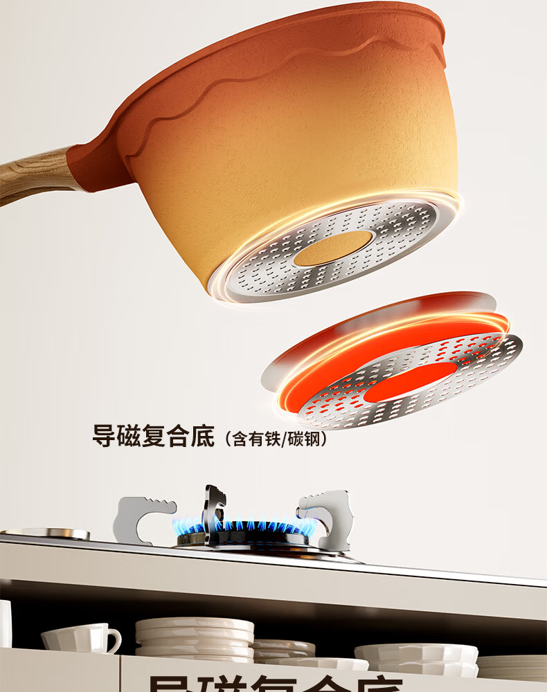 Amercook陶土奶锅宝宝辅食锅不粘锅泡面煮粥锅阿米尔锅家用电磁炉燃气灶用