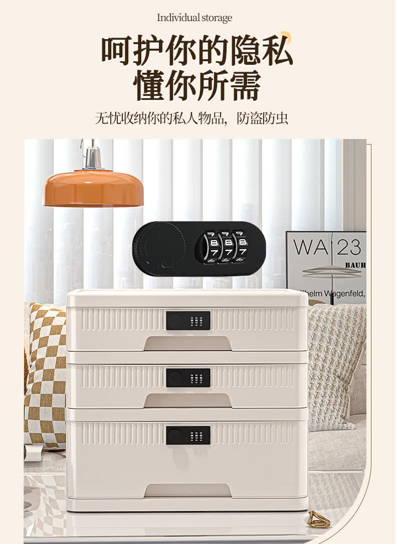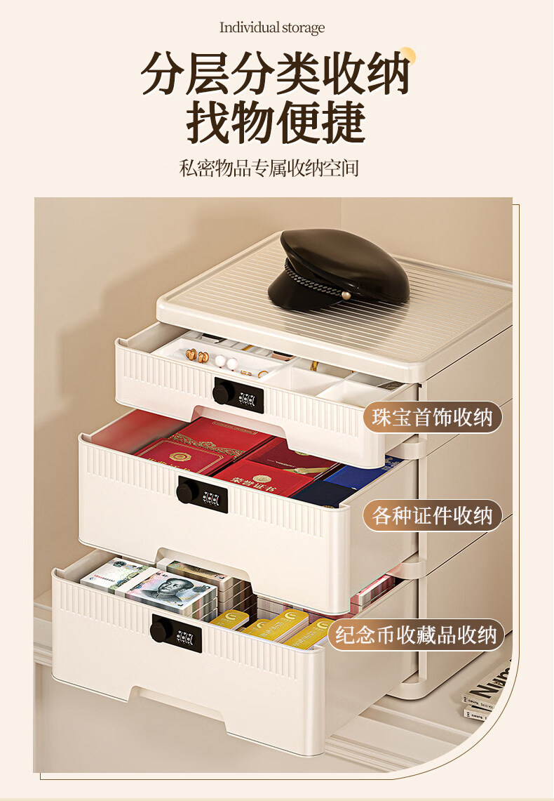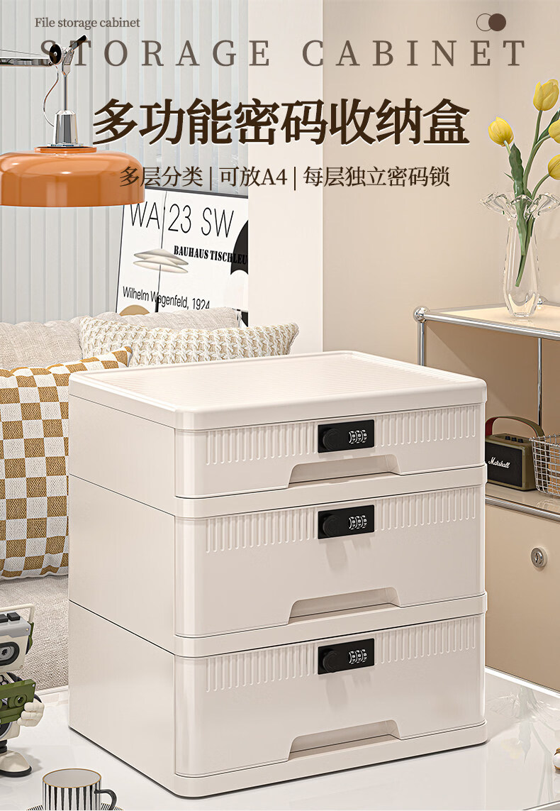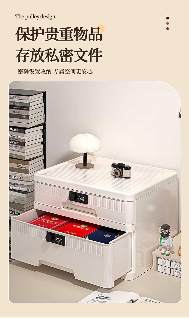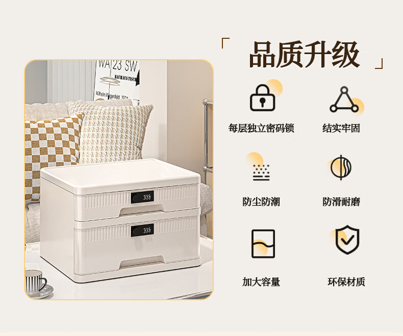 艾仕可(ASCOR)密码收纳箱隐私文件带锁收纳盒抽屉式家庭证件贵重物品收纳神器 1层/矮款/桌面款无轮