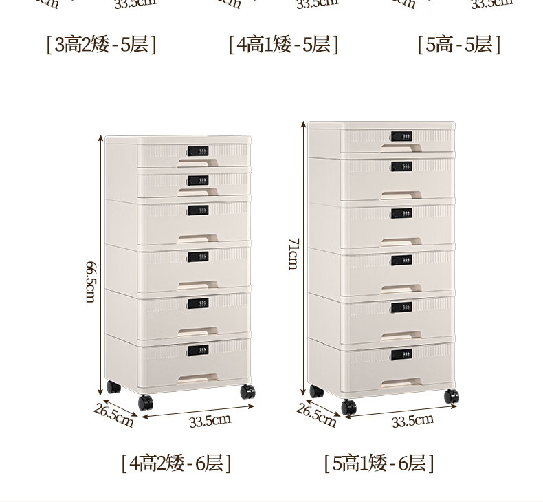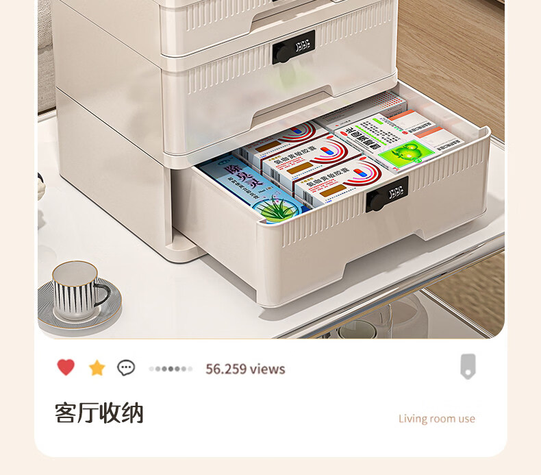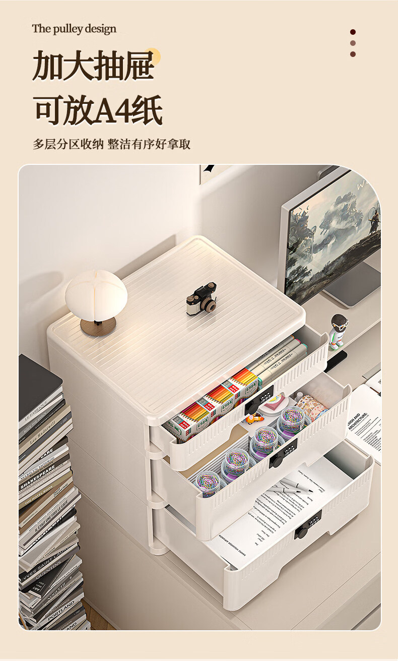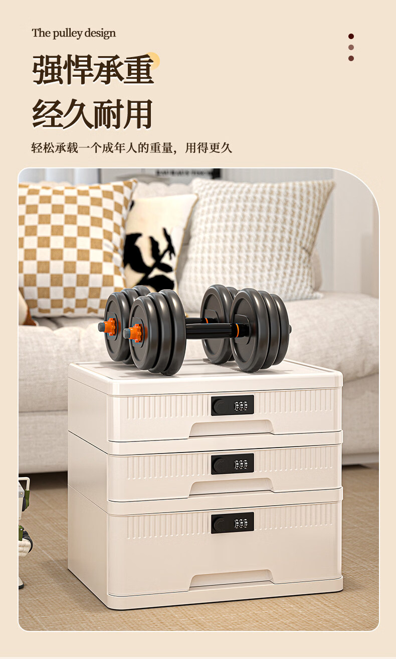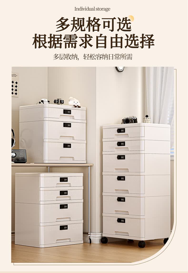 艾仕可(ASCOR)密码收纳箱隐私文件带锁收纳盒抽屉式家庭证件贵重物品收纳神器 1层/矮款/桌面款无轮
