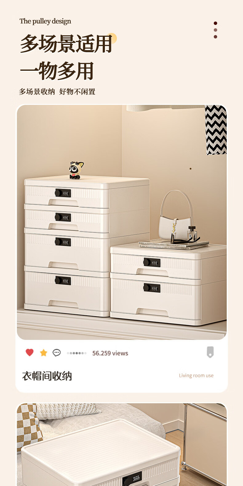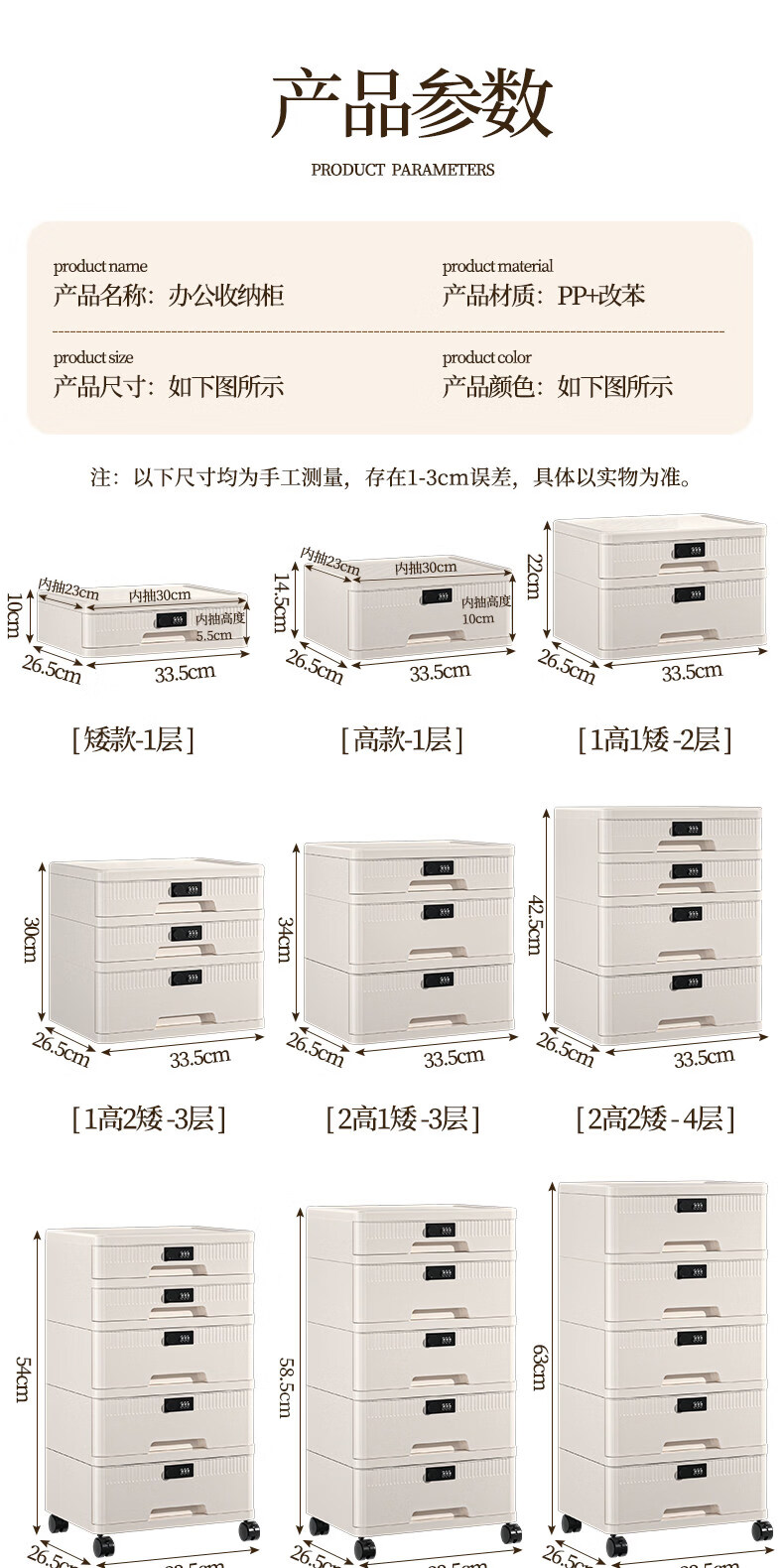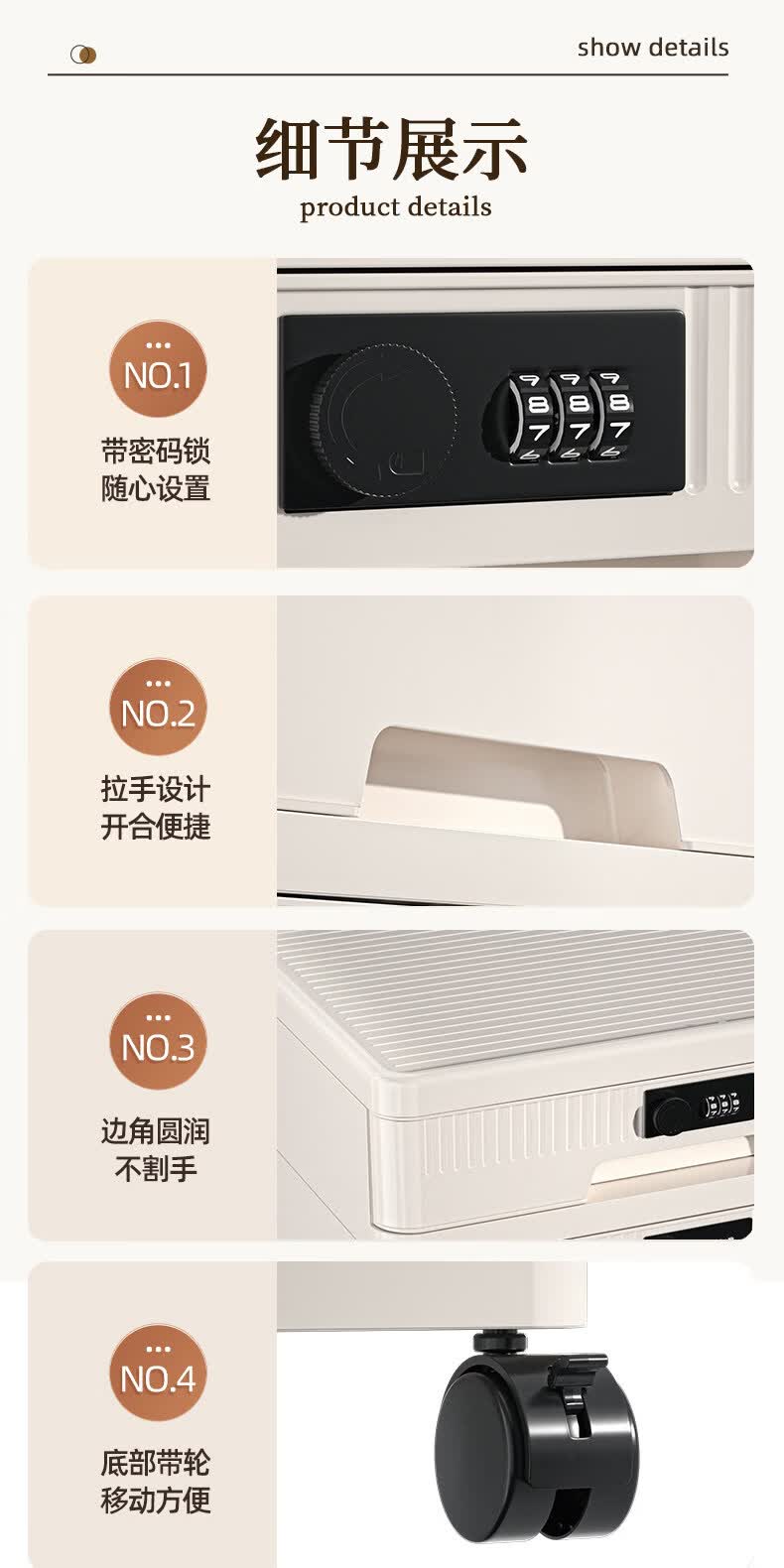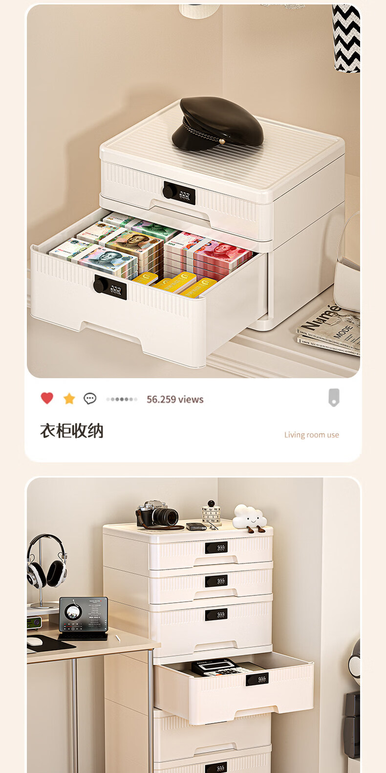 艾仕可(ASCOR)密码收纳箱隐私文件带锁收纳盒抽屉式家庭证件贵重物品收纳神器 1层/矮款/桌面款无轮