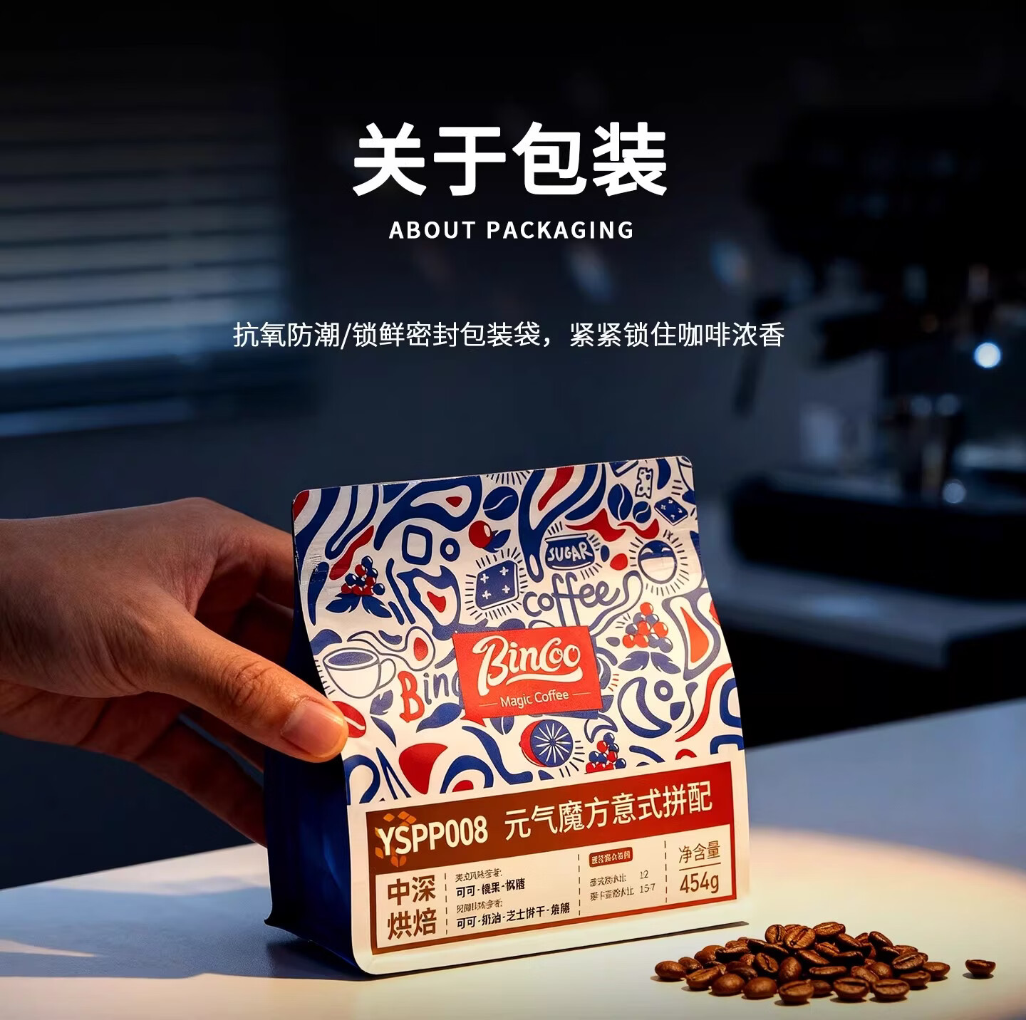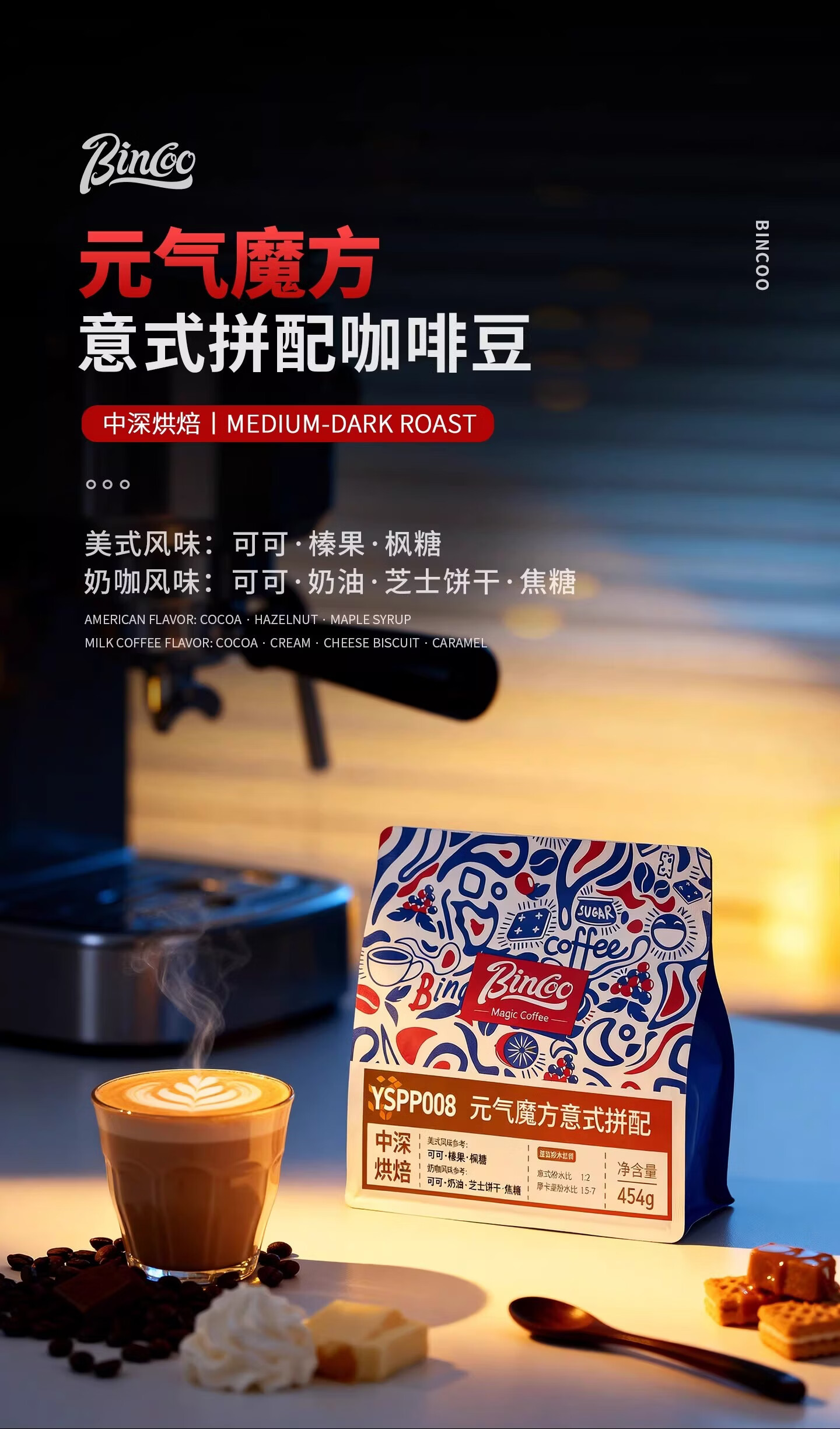 Bincoo果丁丁意式拼配咖啡豆中深烘焙咖啡机摩卡壶萃取冰美式拿铁 227g袋装