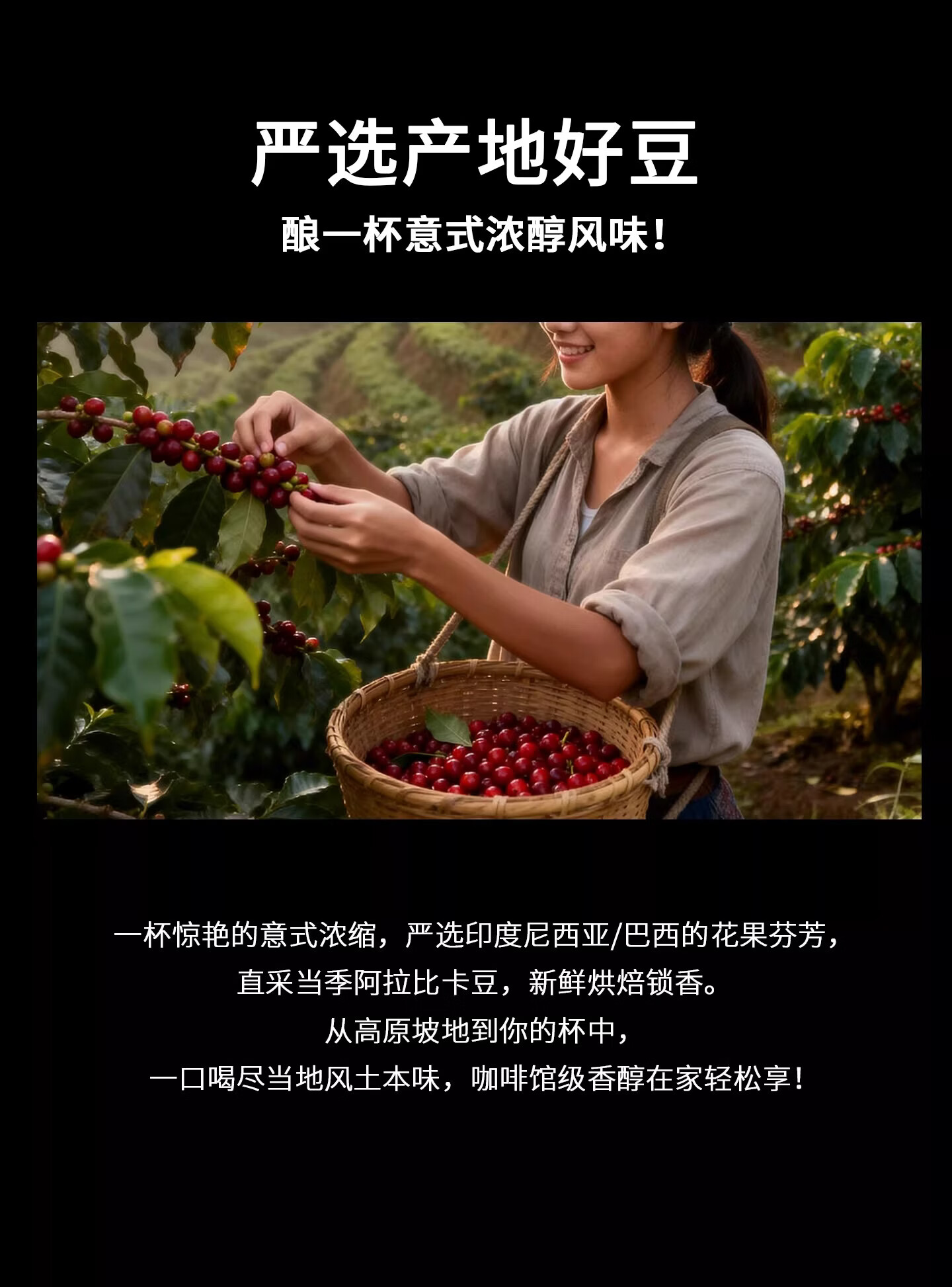 Bincoo蜜果甜醺拼配意式咖啡豆中深烘焙咖啡机摩卡壶萃取美式拿铁 227g袋装